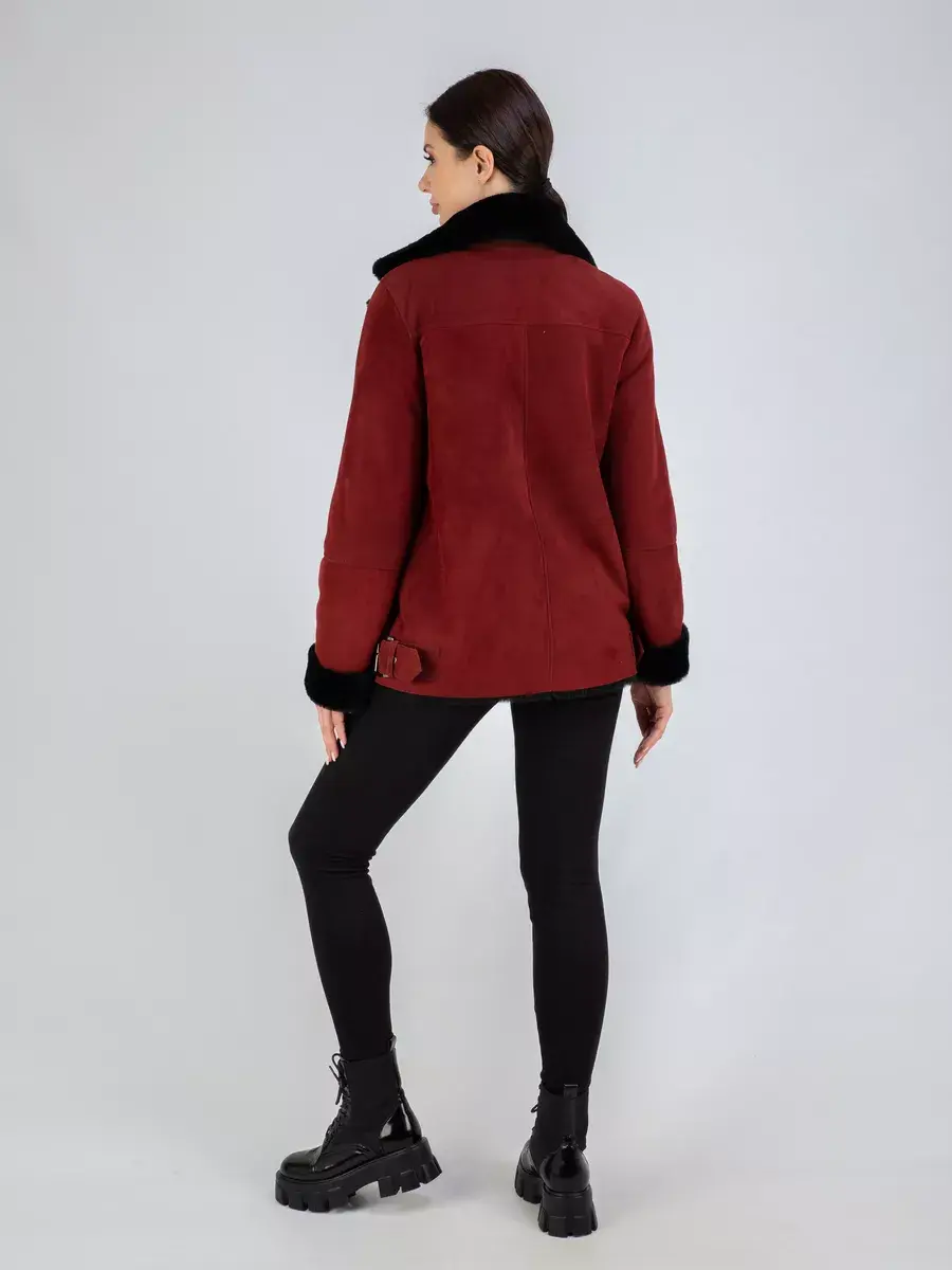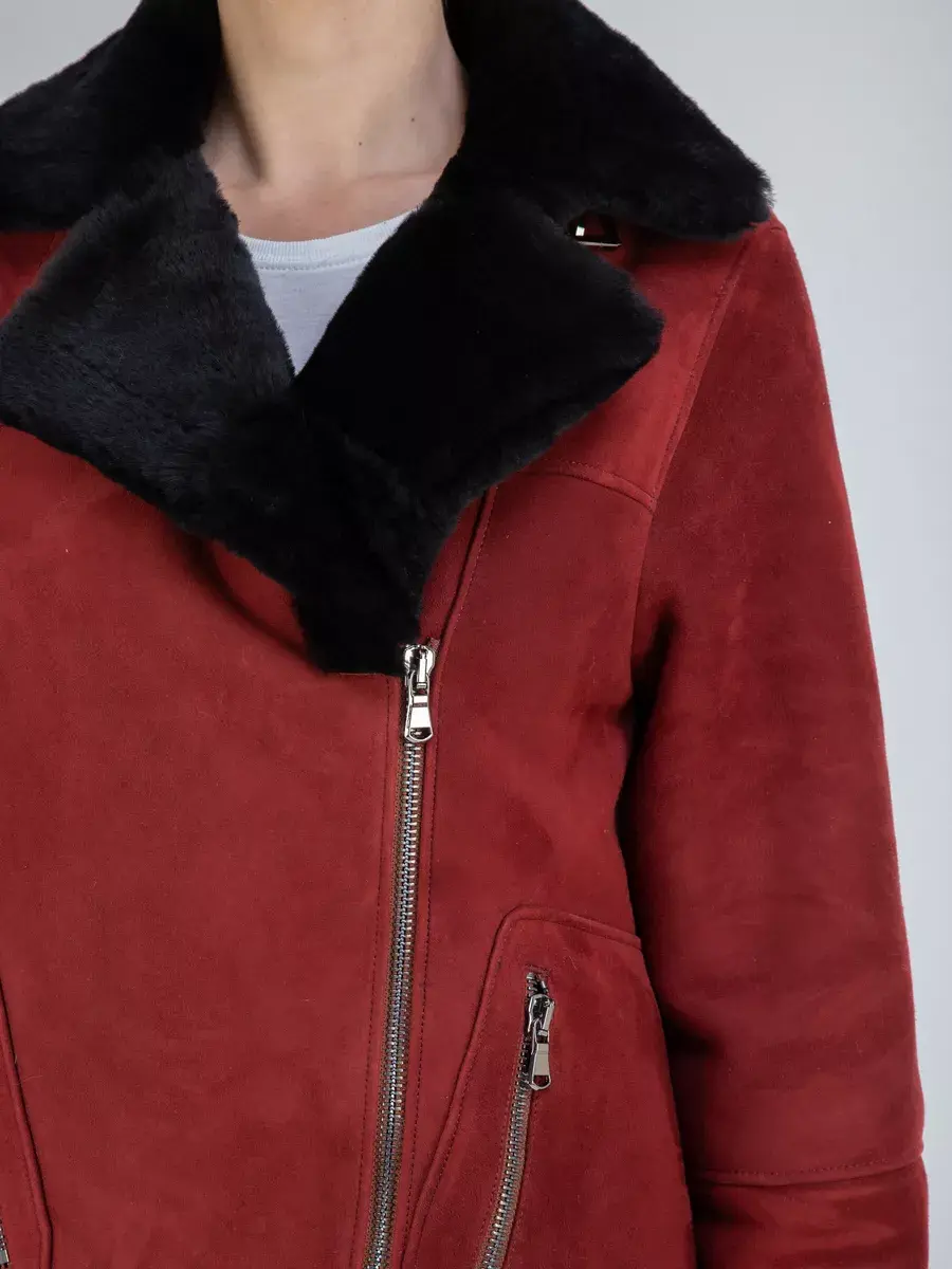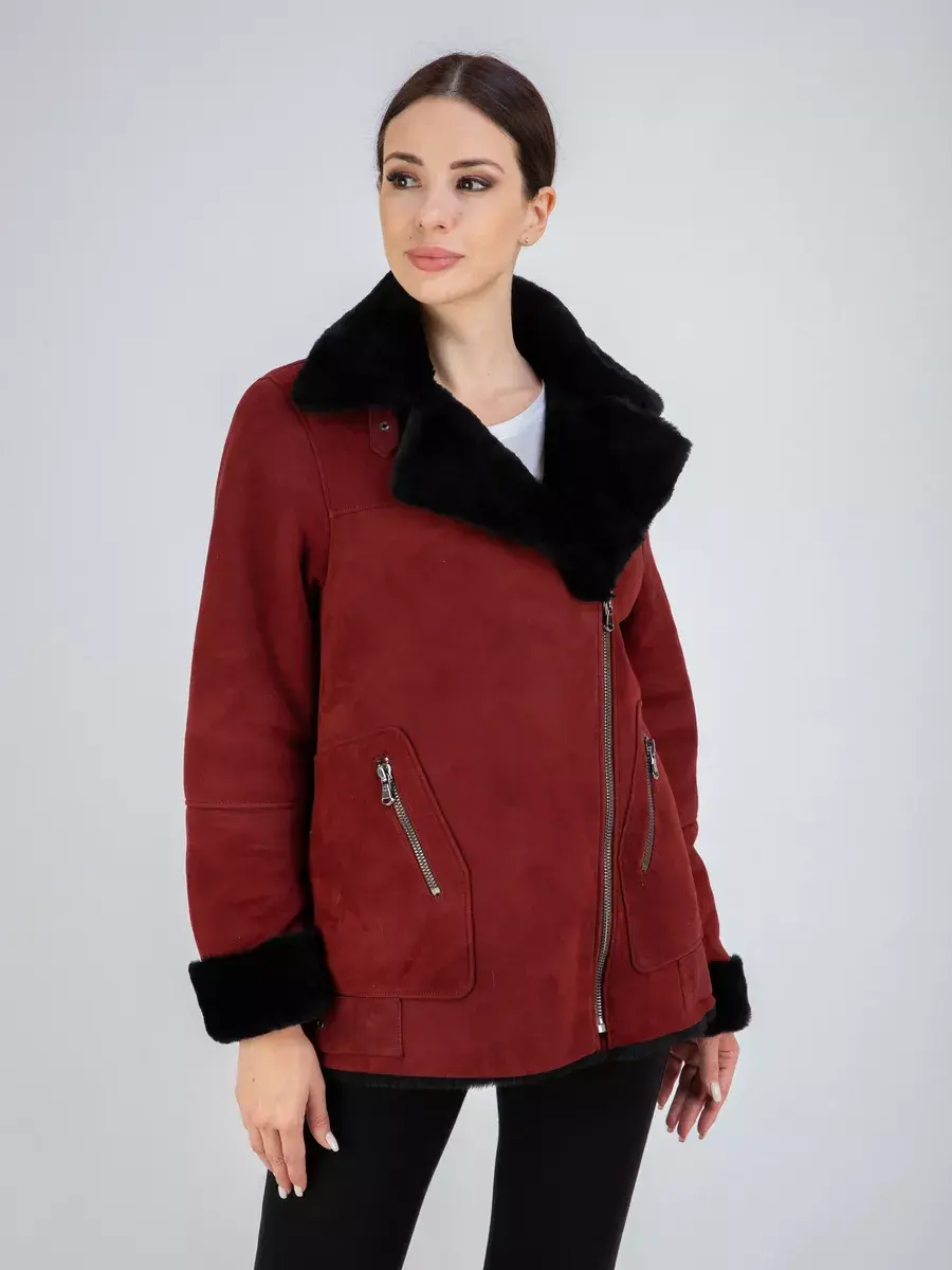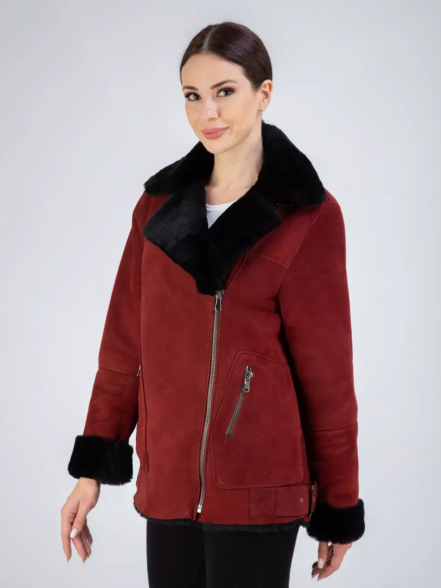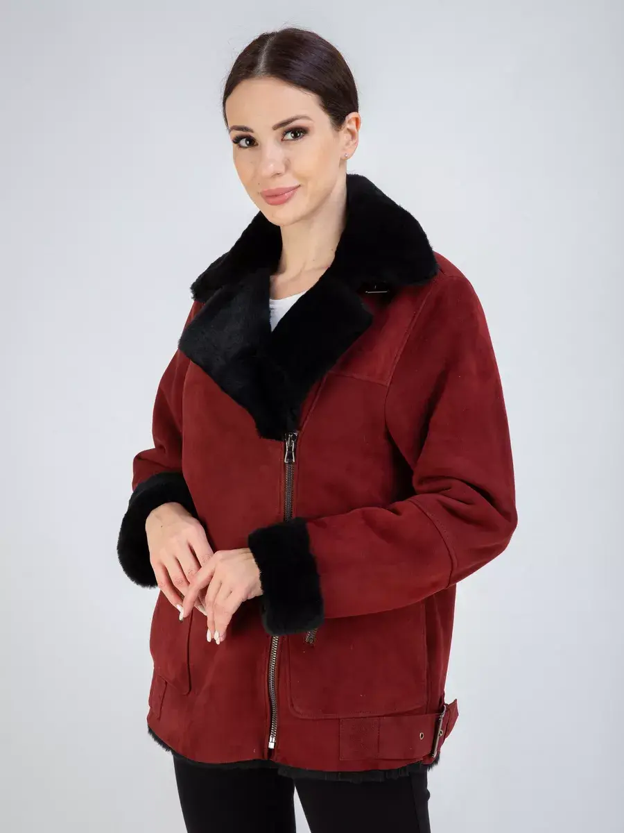 Дубленка авиатор натуральная - стильная и модная дубленка женская зимняя, которая прекрасно подойдет для любого холодного сезона. Сочетание свободного, оверсайз кроя делает ее удобной и повседневной одеждой. Дубленка женская натуральная, авиатор дубленка обладает средней длиной.Дубленка выполнена из натуральной овчины, что делает ее не только стильной, но и долговечной. Натуральный мех овчина создает эффект комфорта и тепла, сохраняя при этом модный и актуальный вид. К тому же, дубленка женская короткая имеет замшевое покрытие, которая придает ей дополнительную изюминку и оригинальность.Женская дубленка, дубленка женская авиатор имеет ассиметричную застежку на молнии. Накладные карманы позволяют хранить необходимые мелочи. Воротник с хлястиком придает дополнительную защиту от холода и придает дубленке дополнительный шарм. Паты по бокам на линии пояса подчеркивают фигуру и делают дубленку еще более привлекательной. Тепло, комфорт и модный вид - вот что вам дарит эта зимняя дубленка.Длина по спинке составляет 65см, что делает эту дубленку идеальной для носки как с брюками, так и с платьями. С ней вы будете выглядеть элегантно и привлекательно, согреваясь в холодные зимние дни. Она подходит для любого случая и под любой стиль. Дубленка авиатор женская зимняя бренда MONDIAL произведена в Турции из высококачественного натурального меха. Мы гарантируем вам долговечность и надежность каждой детали дубленки. Важно отметить, что натуральная женская дубленка значительно превосходит искусственные аналоги по многим параметрам. Она более теплая, прочная и комфортная при носке. Поэтому, выбирая между натуральной и искусственной дубленкой, остановитесь на первом варианте и наслаждайтесь его преимуществами. В наличии широкая размерная сетка включающая большие размеры, чтобы каждая женщина могла найти свой идеальный вариант. Предлагаем широкий выбор моделей зимней верхней одежды, больших размеров, оверсайз или приталенного кроя со скидкой на странице бренда