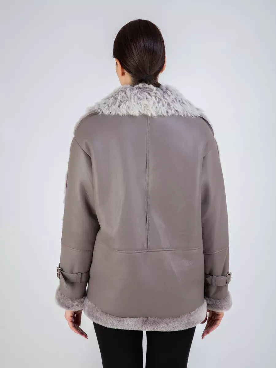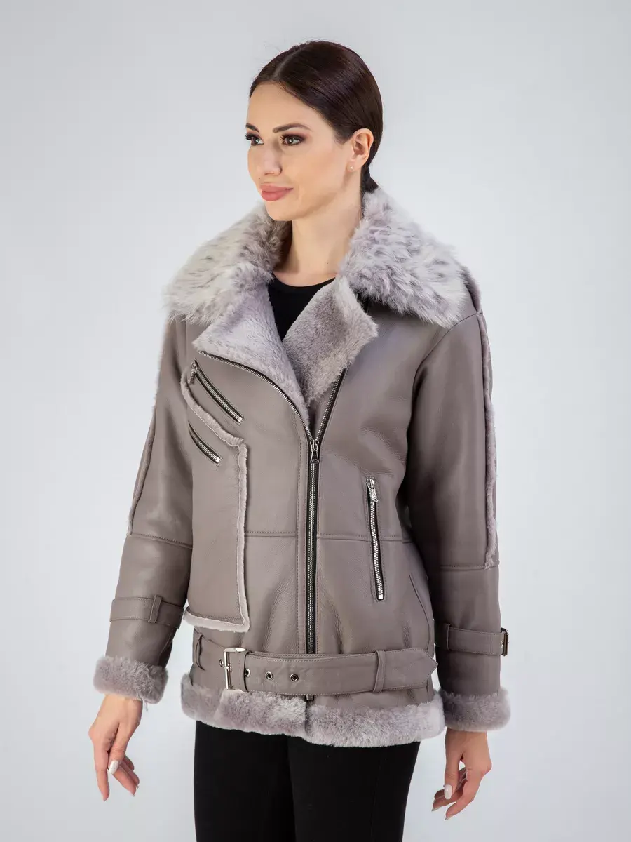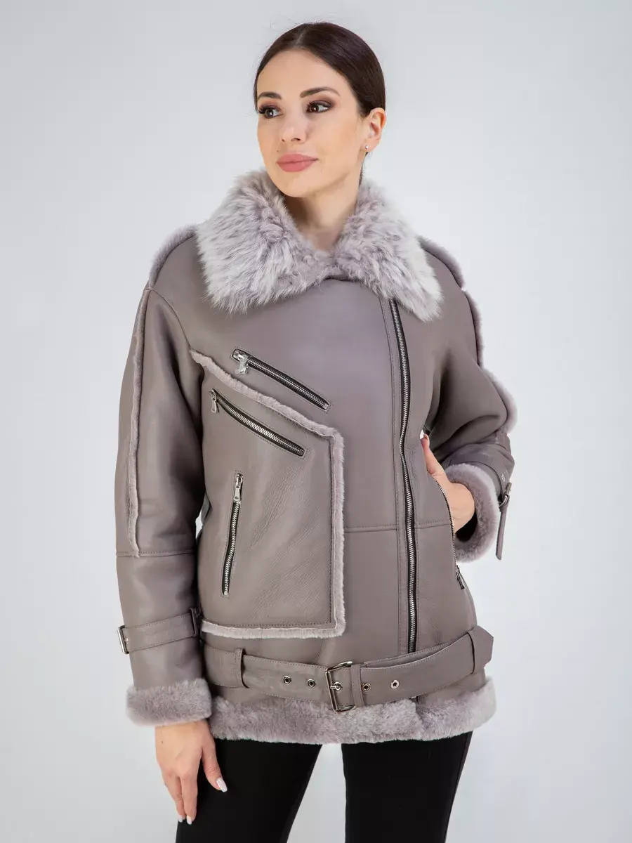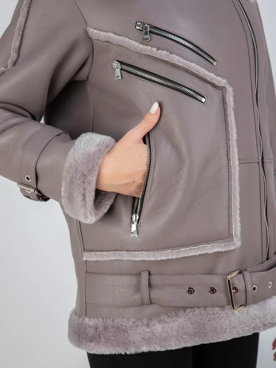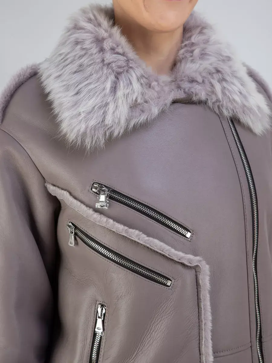 Классический воротник с длинным мехом придает дубленке изысканности и шарма. Ассиметричная застежка на молнии придает дополнительную оригинальность. Паты на рукавах и декоративная молнии на груди добавляют дизайнерского акцента. Декоративная строчка на меху делает эту дубленку еще более привлекательной и эксклюзивной. На рукавах дубленки авиатор предусмотрены меховые манжеты, что обеспечивает защиту от холода. Прорезные карманы на молнии позволяют хранить необходимые мелочи всегда под рукой. Спущенная линия плеча создает эффектные контрасты и придает дубленке динамичность. Свободный прямой крой дубленки позволяет подчеркнуть вашу индивидуальность и оригинальность. Длина по спинке 68см. Эта короткая женская дубленка идеально подходит для активных женщин, которые ценят комфорт и стиль. Дубленка женская короткая - идеальный выбор для тех, кто хочет быть модным и стильным в холодное время года. Ее натуральный мех овчины обеспечит вам тепло и комфорт, а ее стильный дизайн добавит шарма и элегантности вашему образу. Преимущества этой дубленки делают ее неповторимой и востребованной.
