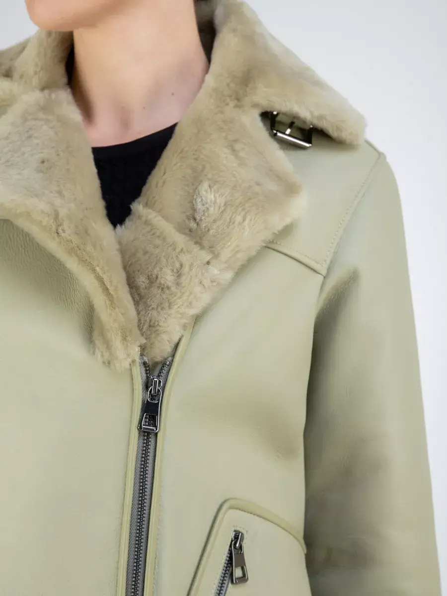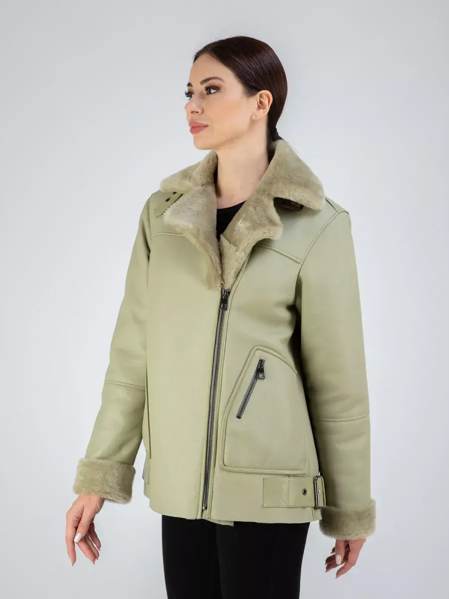 Стильная дубленка авиатор женская из натурального меха. Эта женская дубленка сочетает в себе комфорт, тепло и стиль. Дубленка женская зимняя изготовлена из натурального меха овчины, что обеспечивает тепло и комфорт в холодные зимние дни. Мех не только сохраняет тепло, но и позволяет коже дышать, что обеспечивает комфорт даже при длительных прогулках на морозе. Дубленка женская натуральная зимняя авиатор оверсайз с свободным кроем подчеркнет индивидуальность и стиль каждой женщины. Этот трендовый фасон придает образу утонченность и элегантность, а также позволяет создать разнообразные стильные образы. Ассиметричная застежка на молнии добавляет оригинальности этой дубленке. Накладные карманы, паты по бокам на линии талия придают модный и изысканный вид. На воротнике дубленки авиатор присутствует хлястик, который при желании можно застегнуть. Длина по спинке составляет 70 сантиметров, что делает эту дубленку идеальной для повседневной носки при любой холодной погоде. Дубленка женская короткая подходит под любой стиль и позволяет создавать различные образы - от повседневных до вечерних. Она станет незаменимой вещью в вашем гардеробе и поможет создать безупречный образ, подчеркнув вашу индивидуальность и стиль. Дубленка авиатор женская зимняя бренда MONDIAL произведена в Турции из высококачественного натурального меха.