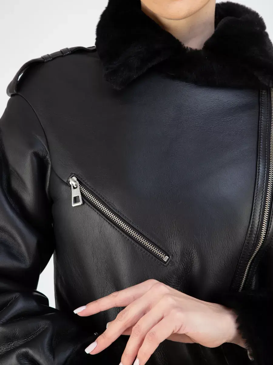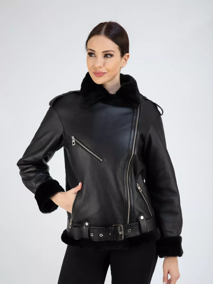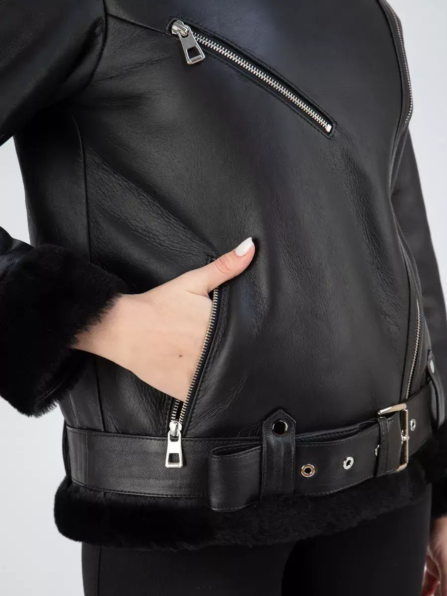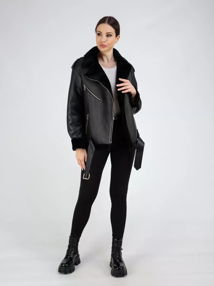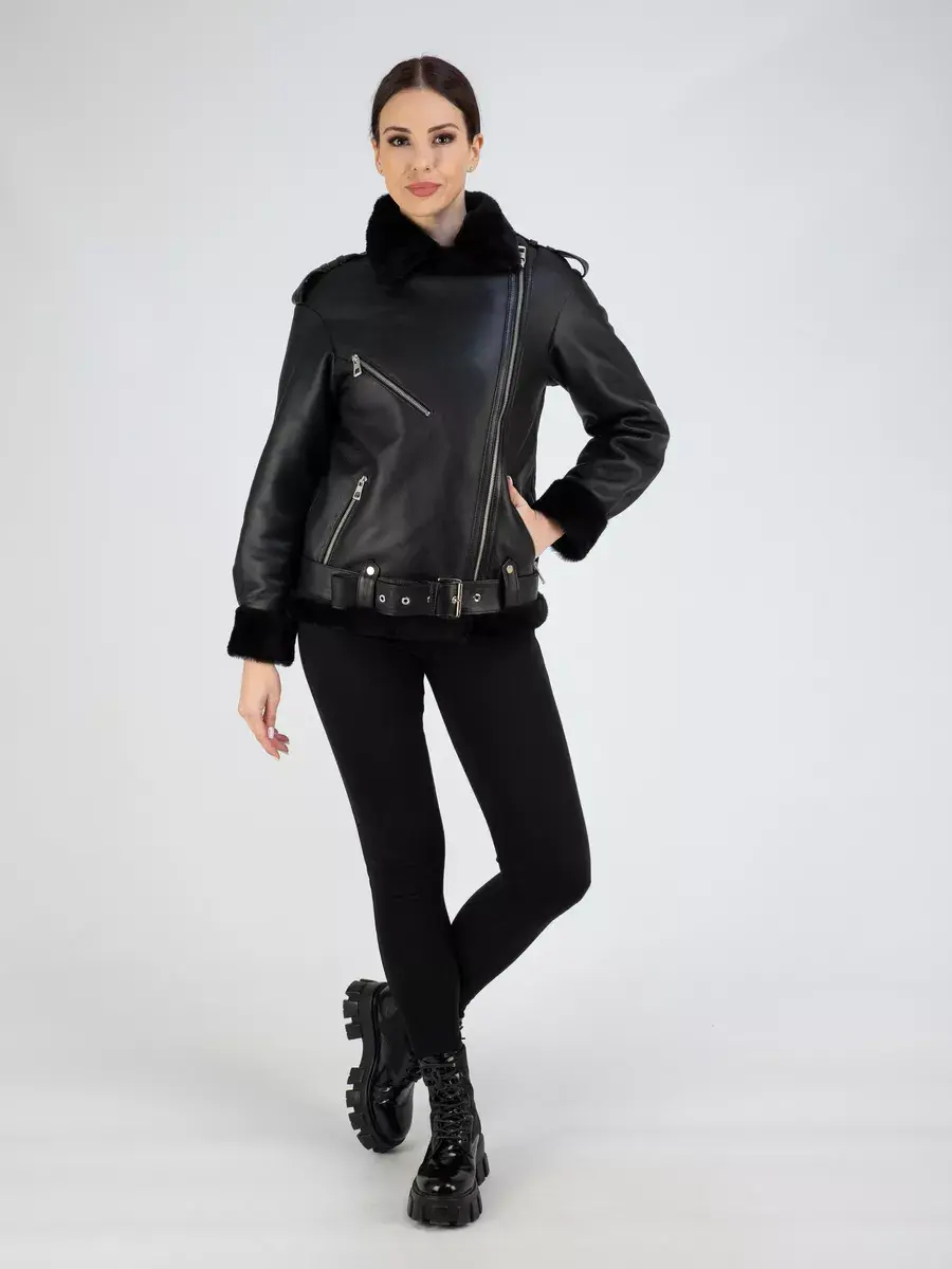 Классическая дубленка авиатор женская зимняя из натурального меха. Дубленка женская зимняя, авиатор обладает мягким и натуральным мехом овчины, что делает эту дубленку идеальной для комфортной зимней носки. Классический воротник и прямой крой придают ей элегантный вид, подчеркивающий вашу индивидуальность. Также обратите внимание на ассиметричную застежку на молнии, которая добавляет изюминку в образ. А прорезные карманы на молнии позволяют хранить необходимые мелочи в удобном и безопасном месте. Дубленка женская натуральная также имеет удобные меховые манжеты на рукавах, которые не только способствуют дополнительной защите от холода, но также обеспечивают стильный и модный образ. Спущенная линия плеча, декоративная молния на груди и эполеты дополняют общую атмосферу и придают дубленке более привлекательный и актуальный вид. Длина по спинке составляет 70 см, что делает ее универсальной и подходящей для любого роста. Дубленка женская короткая имеет стильный ремень, который подчеркнет вашу талию и дополнит общий образ.