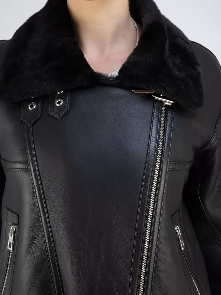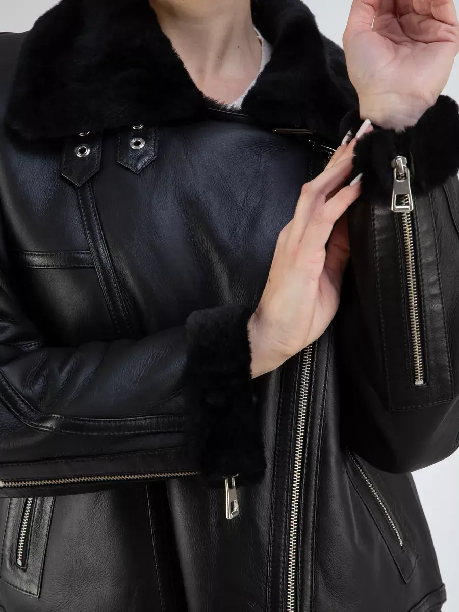Стильная дубленка авиатор женская из натурального меха и с вставками из натуральной кожи специально разработанная для зимнего и холодного весеннего и осеннего сезона. Дубленка женская зимняя имеет классический дизайн авиатора, что делает ее непременным элементом гардероба для модных дам.