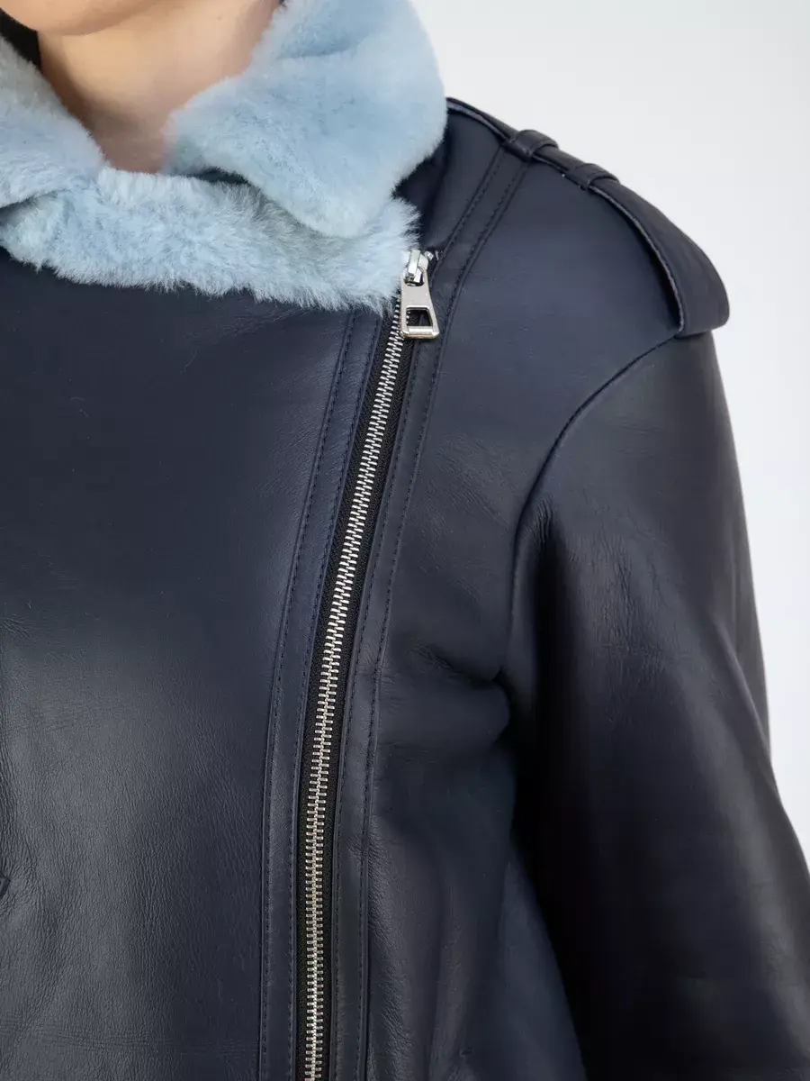 Классическая дубленка авиатор женская зимняя из натурального меха. Дубленка женская зимняя, авиатор обладает мягким и натуральным мехом овчины, что делает эту дубленку идеальной для комфортной зимней носки. Классический воротник и прямой крой придают ей элегантный вид, подчеркивающий вашу индивидуальность. Также обратите внимание на ассиметричную застежку на молнии, которая добавляет изюминку в образ. А прорезные карманы на молнии позволяют хранить необходимые мелочи в удобном и безопасном месте. Дубленка женская натуральная также имеет удобные меховые манжеты на рукавах, которые не только способствуют дополнительной защите от холода, но также обеспечивают стильный и модный образ. Спущенная линия плеча, декоративная молния на груди и эполеты дополняют общую атмосферу и придают дубленке более привлекательный и актуальный вид. Длина по спинке составляет 70 см, что делает ее универсальной и подходящей для любого роста. Дубленка женская короткая имеет стильный ремень, который подчеркнет вашу талию и дополнит общий образ.