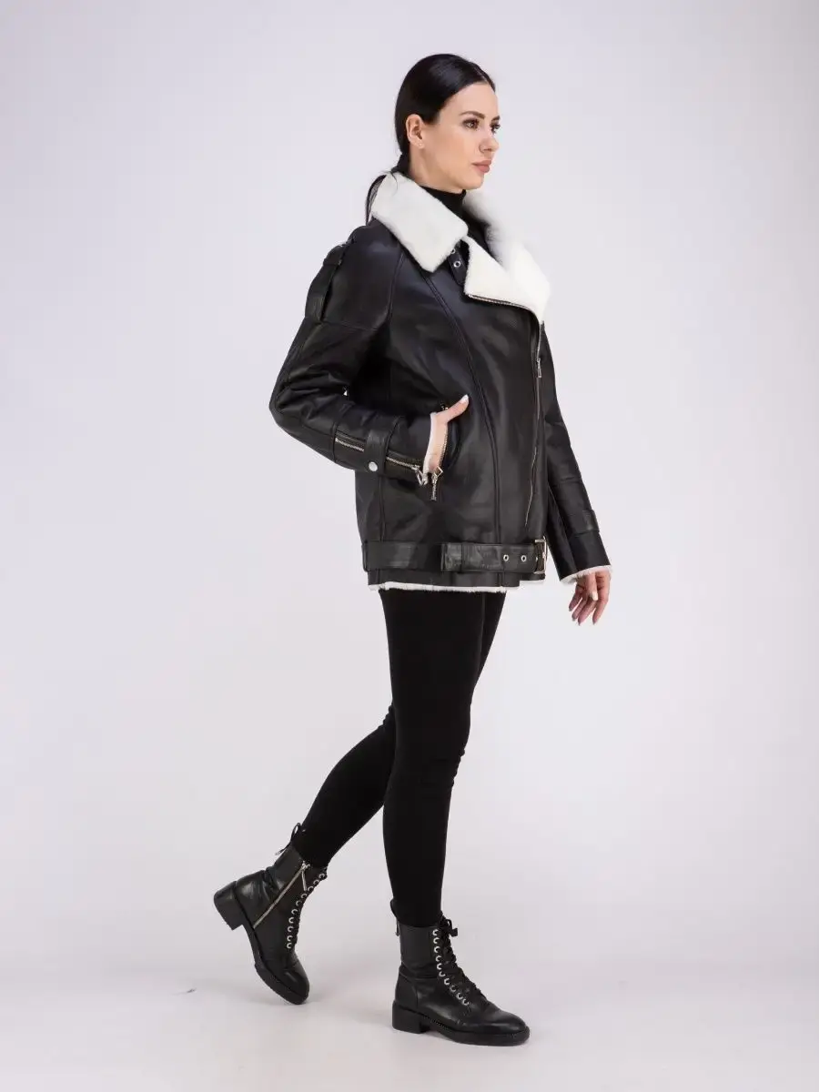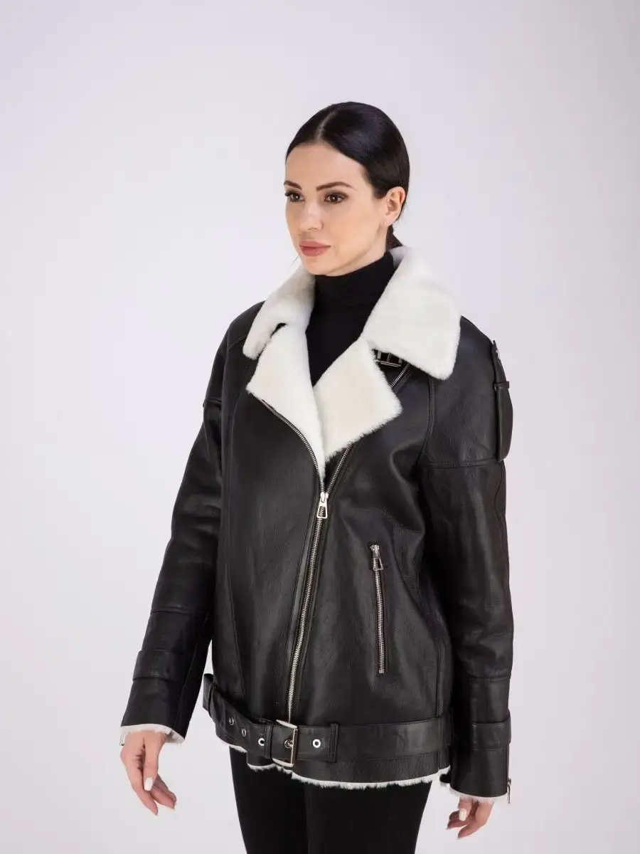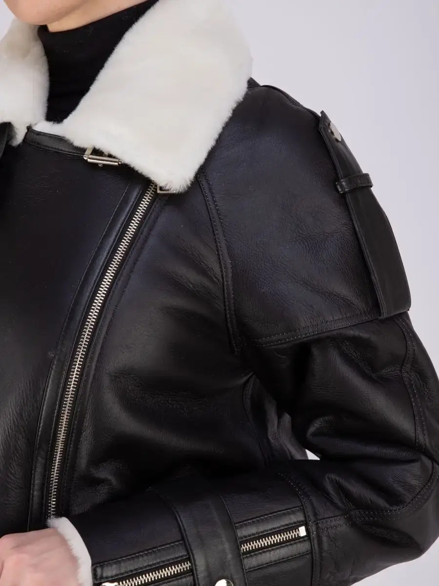 натуральный мех и кожа дубленка авиатор, спущенный рукав