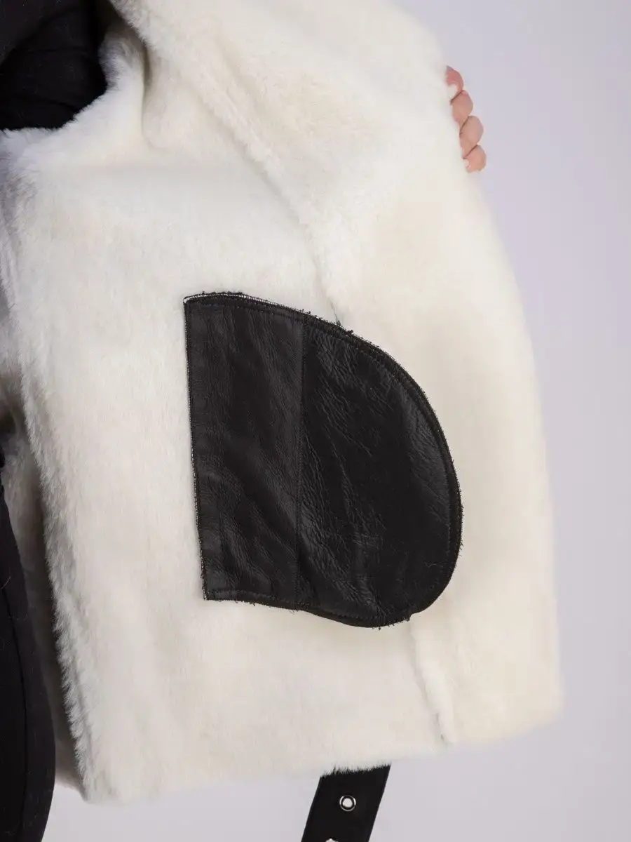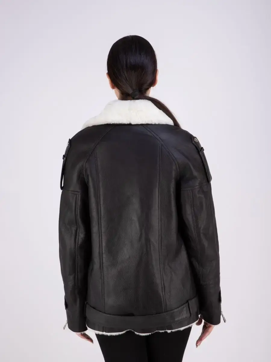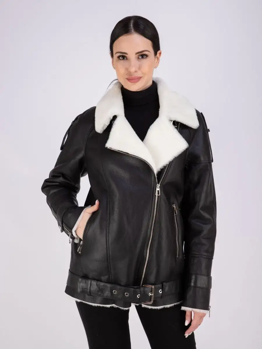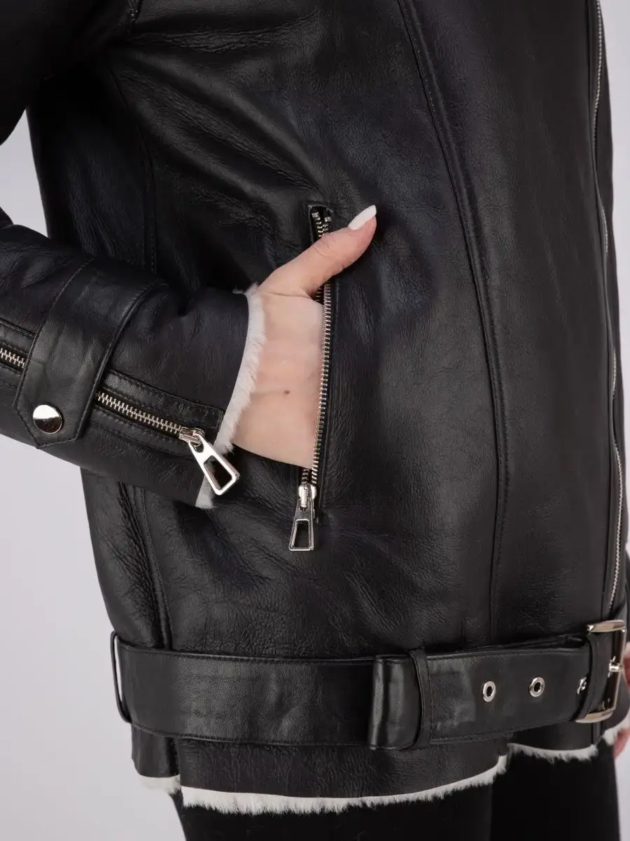 натуральный мех и кожа дубленка авиатор, спущенный рукав