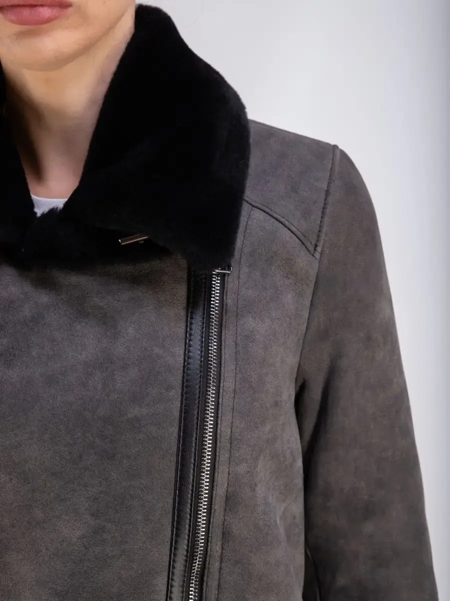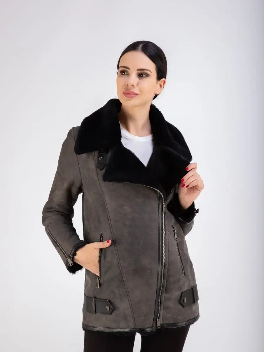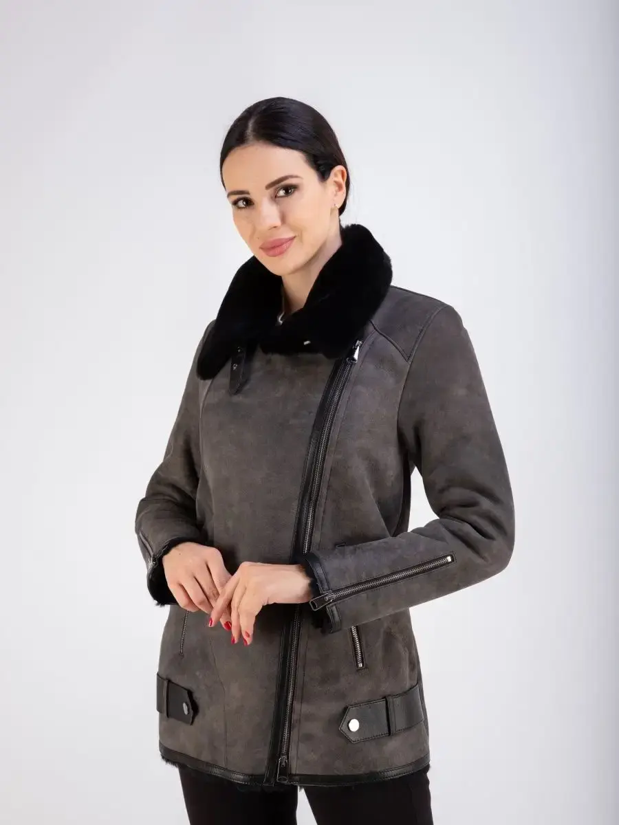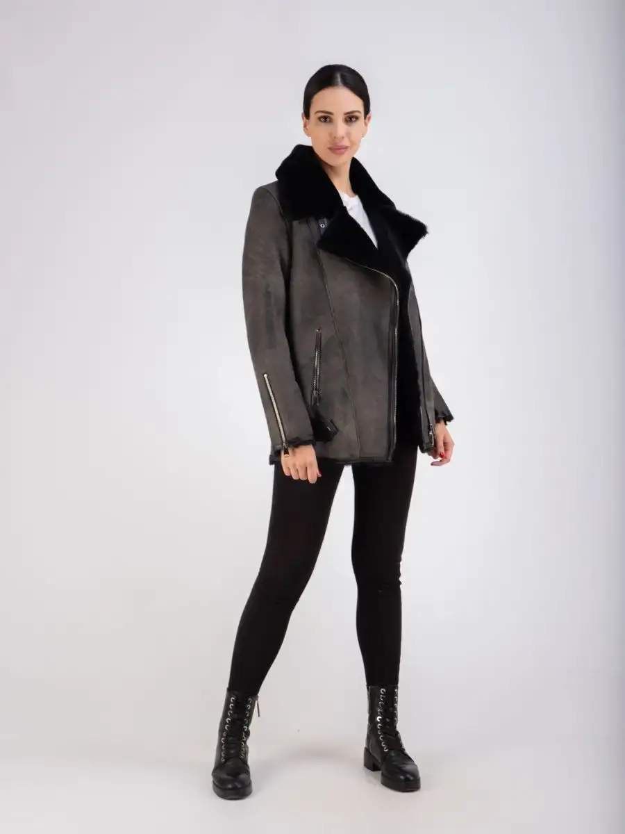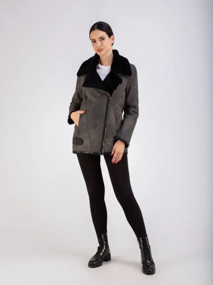 натуральный мех и кожа дубленка женская авиатор