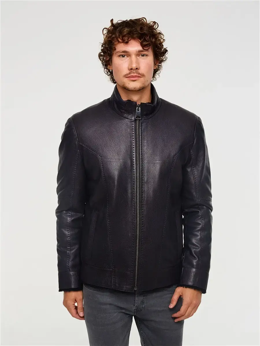 Мужская дубленка из 100% натуральной кожи ягненка с подкладкой из натурального меха - мутон. Производство Турция.