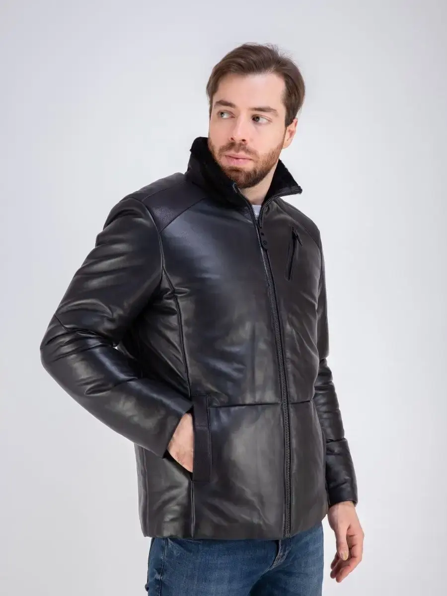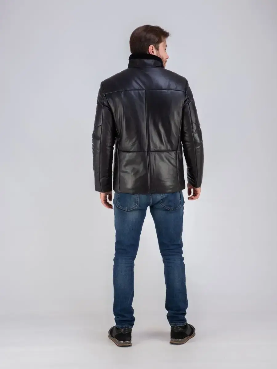 Дубленка мужская натуральная с мехом овчина на подкладке и утепленная синтепоном зимняя куртка. Длина по спинке 80 см. Производство Турция