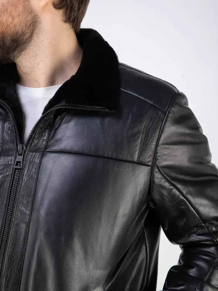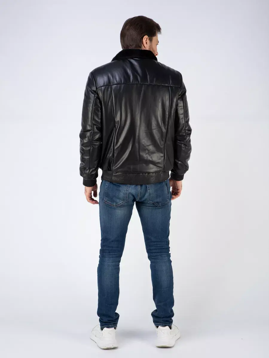 Стильный воротник стойка, гладкая кожа, прямой свободный крой, декоративные вставки из фактурной кожи и кожаные манжеты с модными узорома под плетения придают куртке - дубленке уникальность и изысканность, идеально впишется в деловой стиль и дополнит солидный образ мужчины или парня подростка, независимо от возраста. Застежка на молнии обеспечивает легкость и удобство в использовании, а прорезные карманы по бокам дополнительно увеличивают функциональность и практичность зимней мужской куртки.