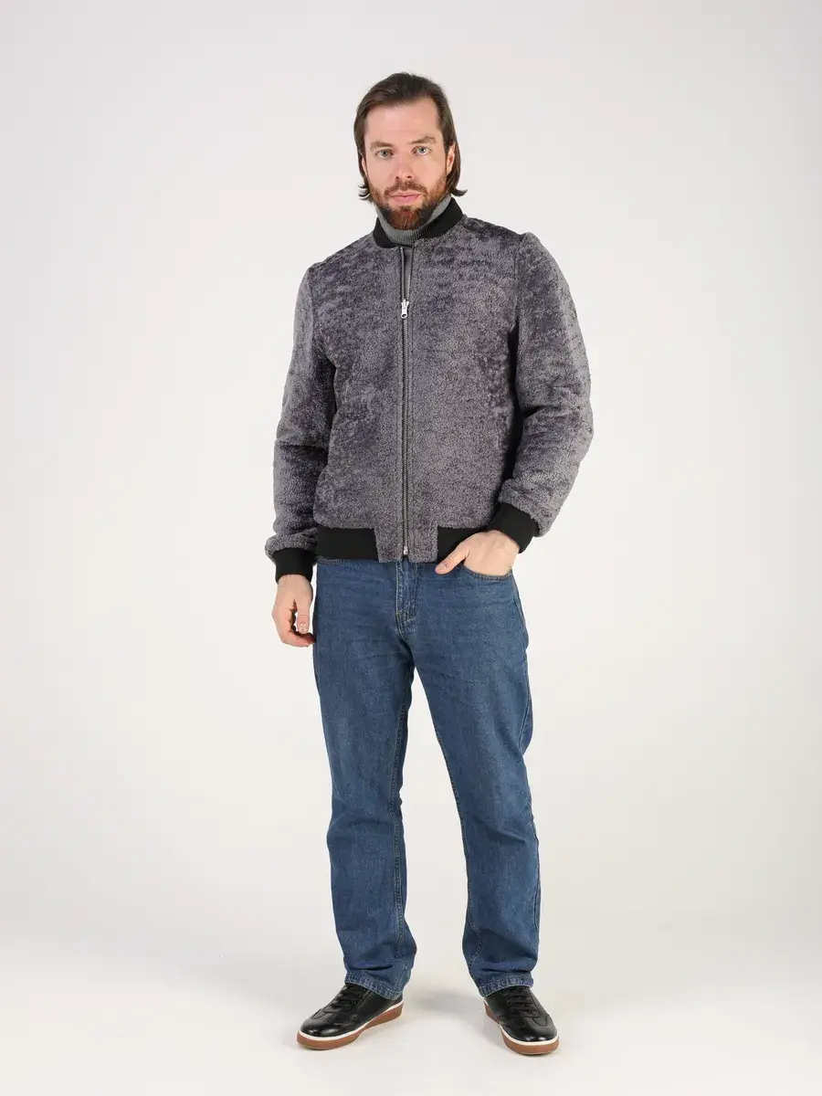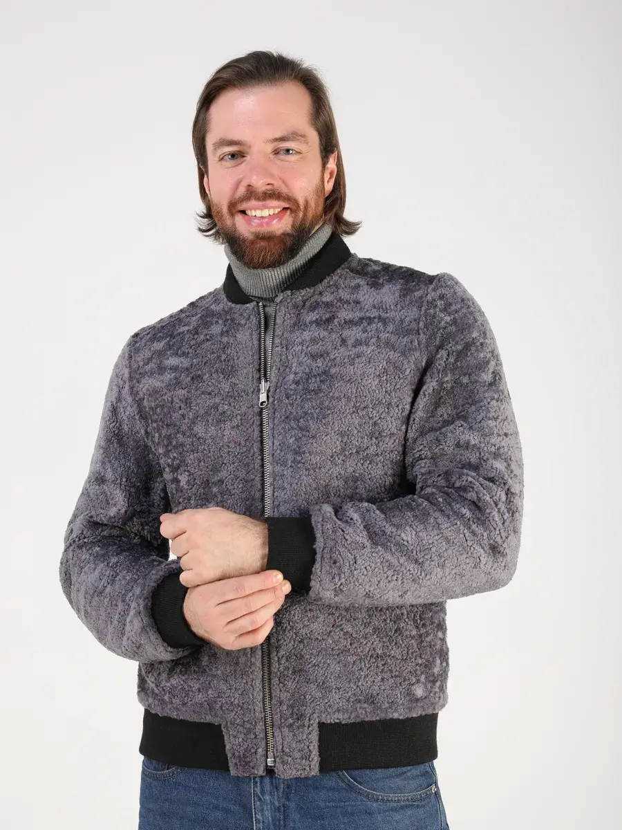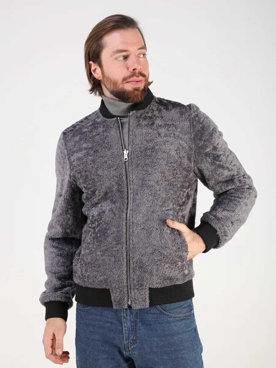 Куртка зимняя мужская с капюшоном натуральная овчина астраган