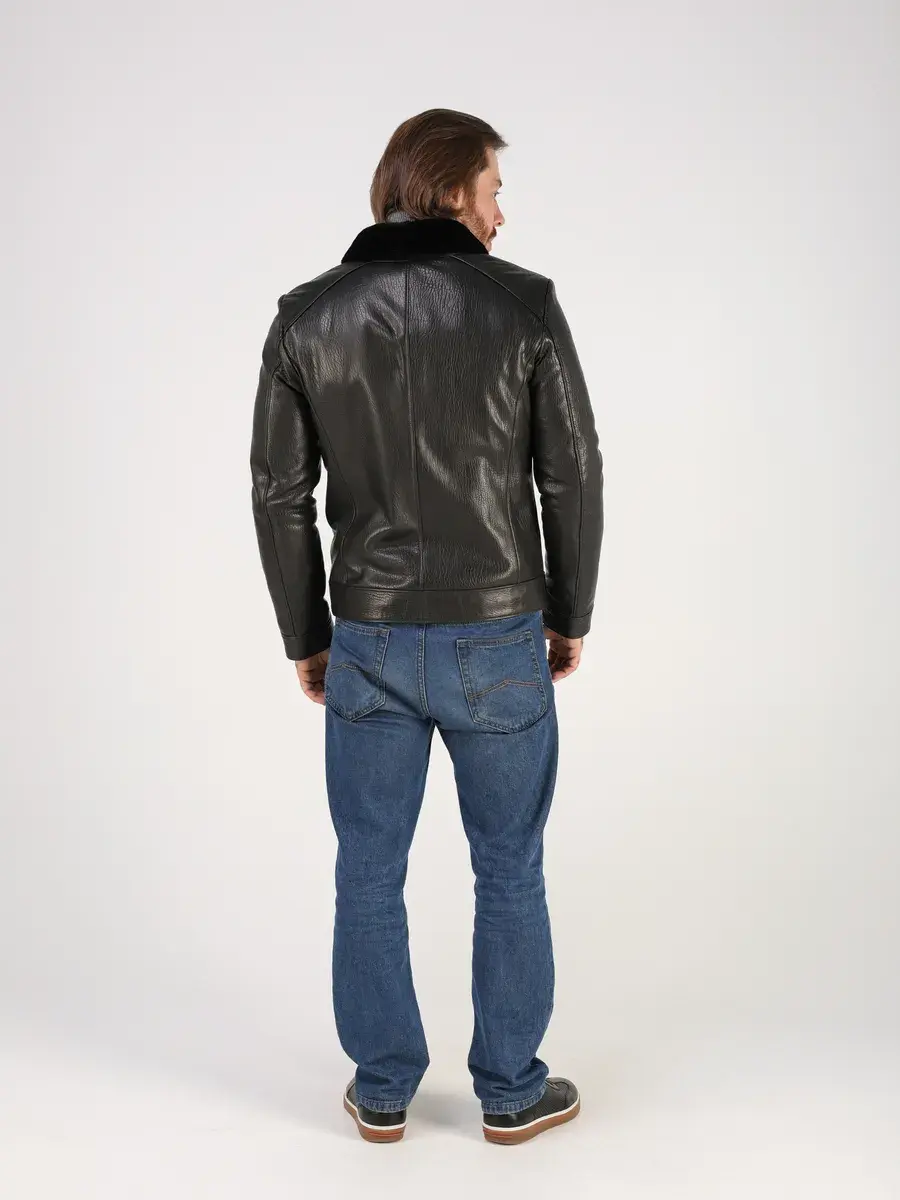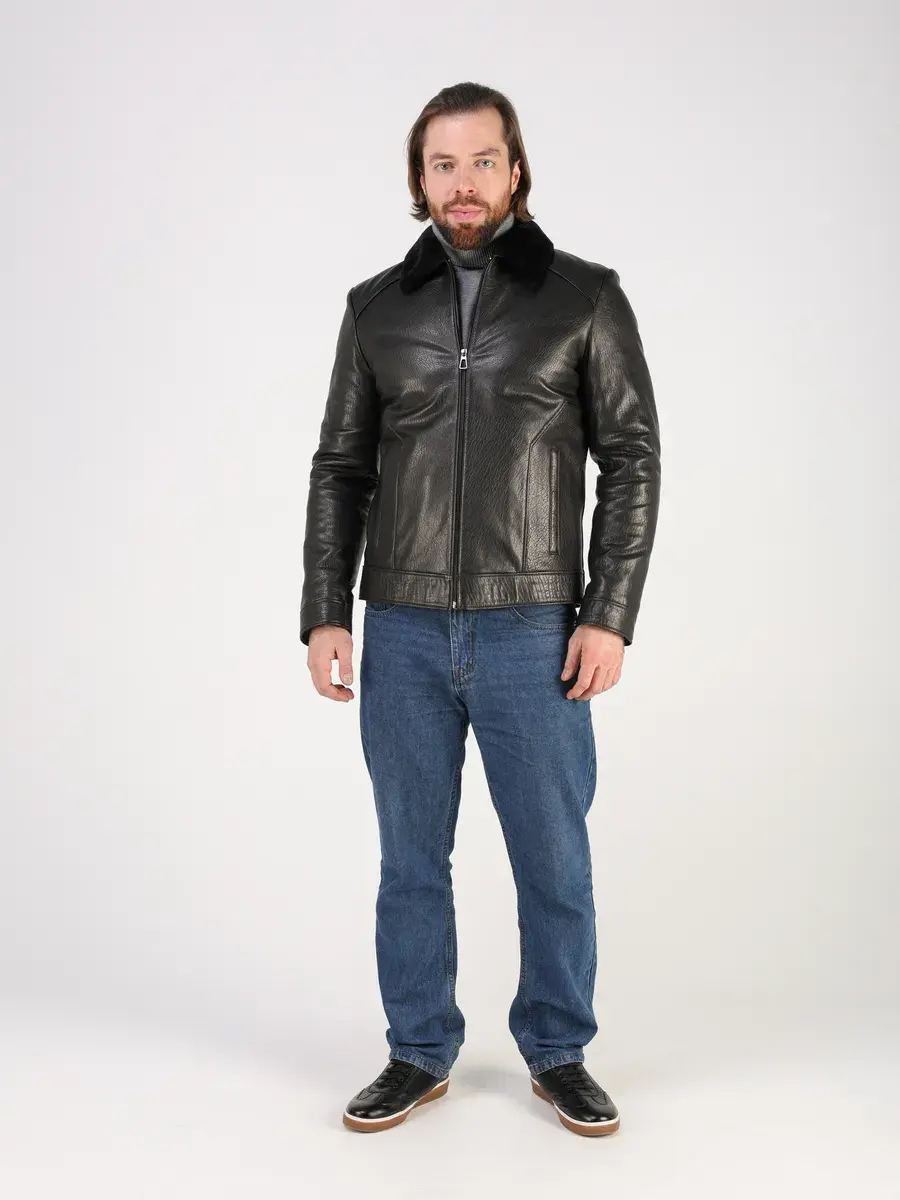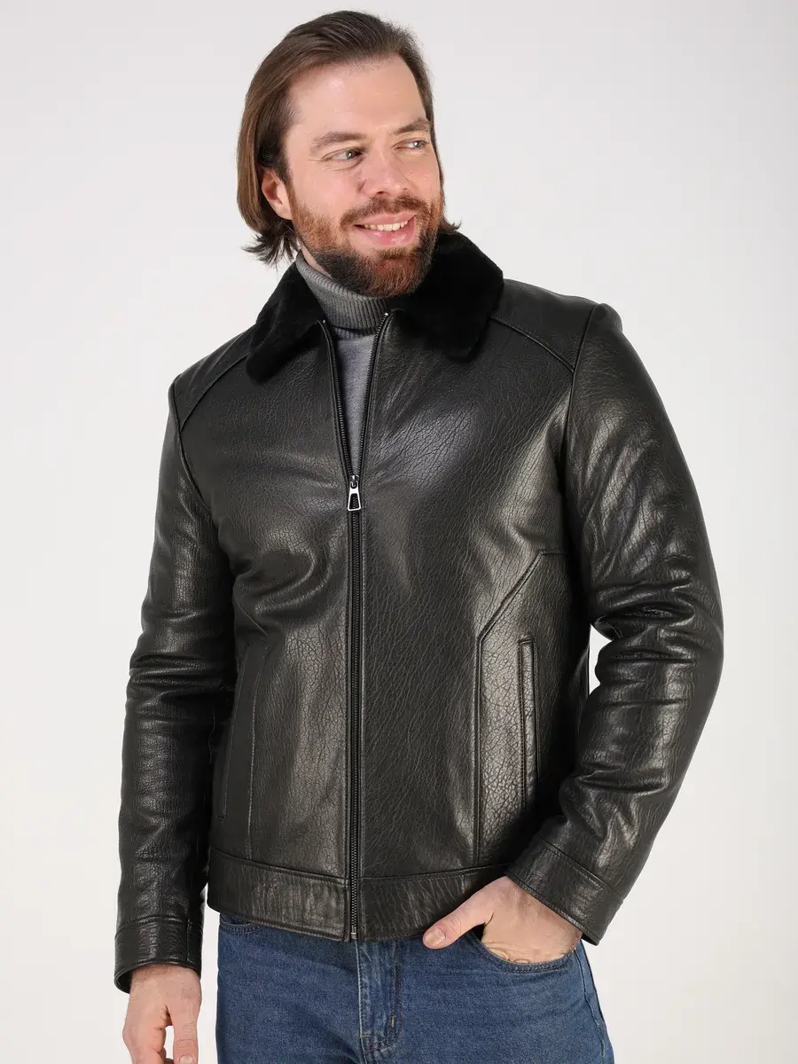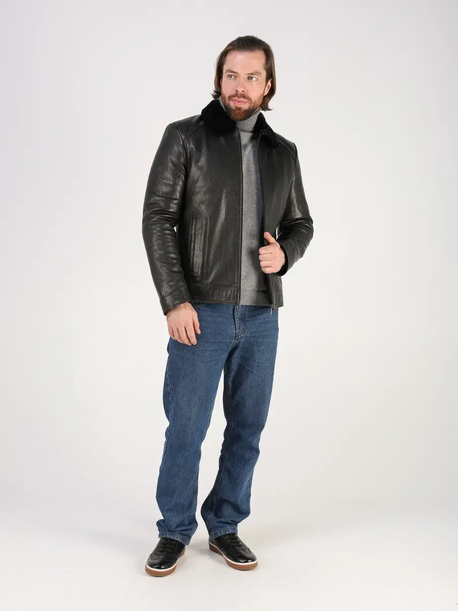 Стильный отложной - меховой воротник, прямой крой, дорогая фактурная кожа придают куртке - дубленке уникальность и изысканность, идеально впишется в деловой стиль и дополнит солидный образ мужчины или парня подростка, независимо от возраста. Дубленка мужская натуральная зимняя имеет застежку на молнии и прорезные карманы которые дополнительно увеличивают функциональность и практичность куртки средней длины. Рукава куртки утеплены синтепоном, на манжетах рукав меховой подклад.