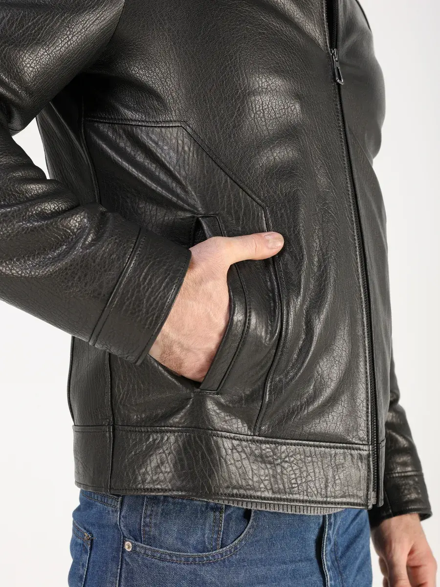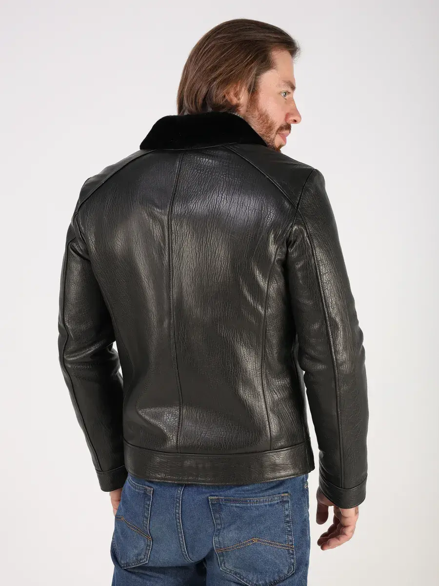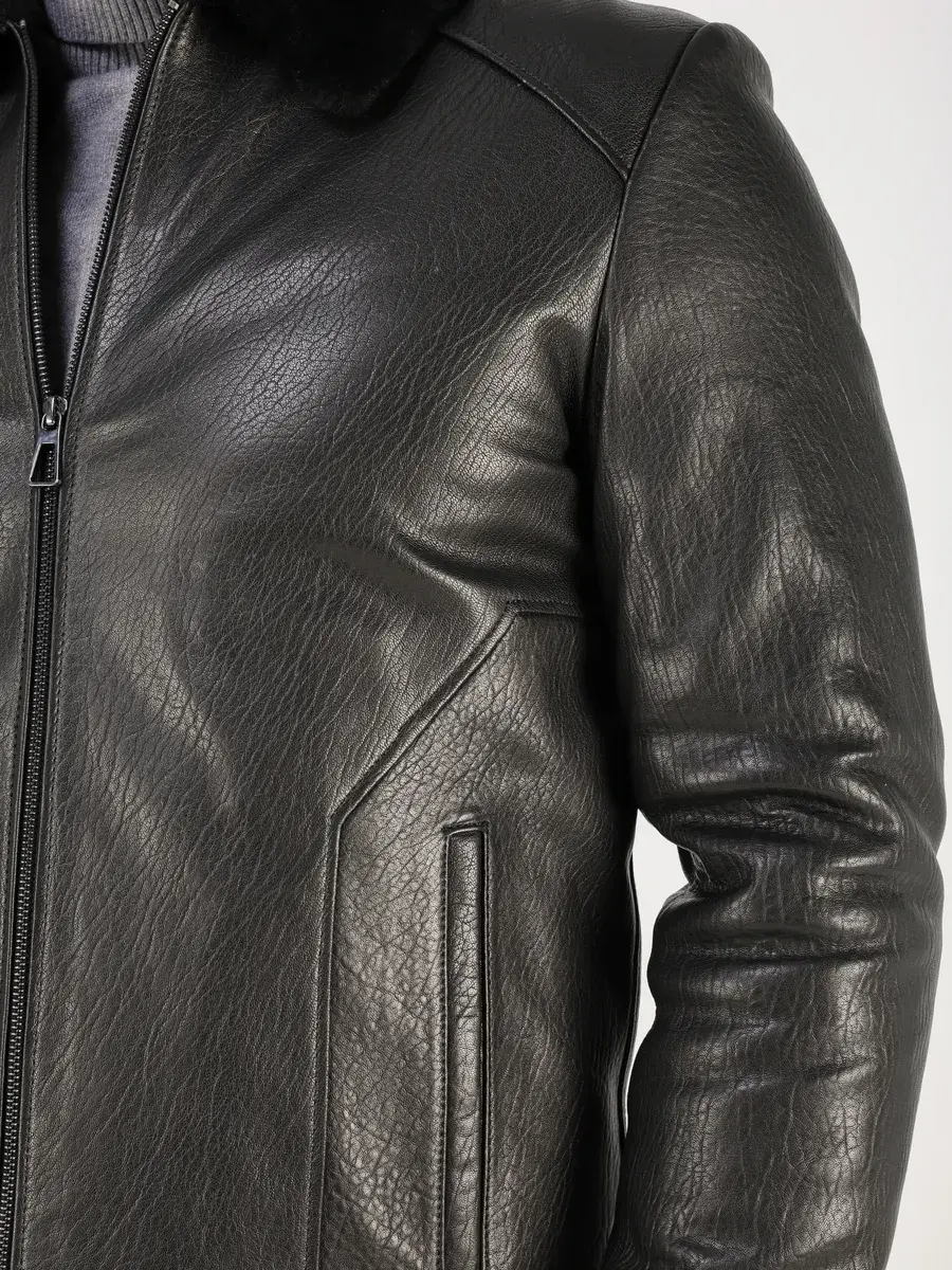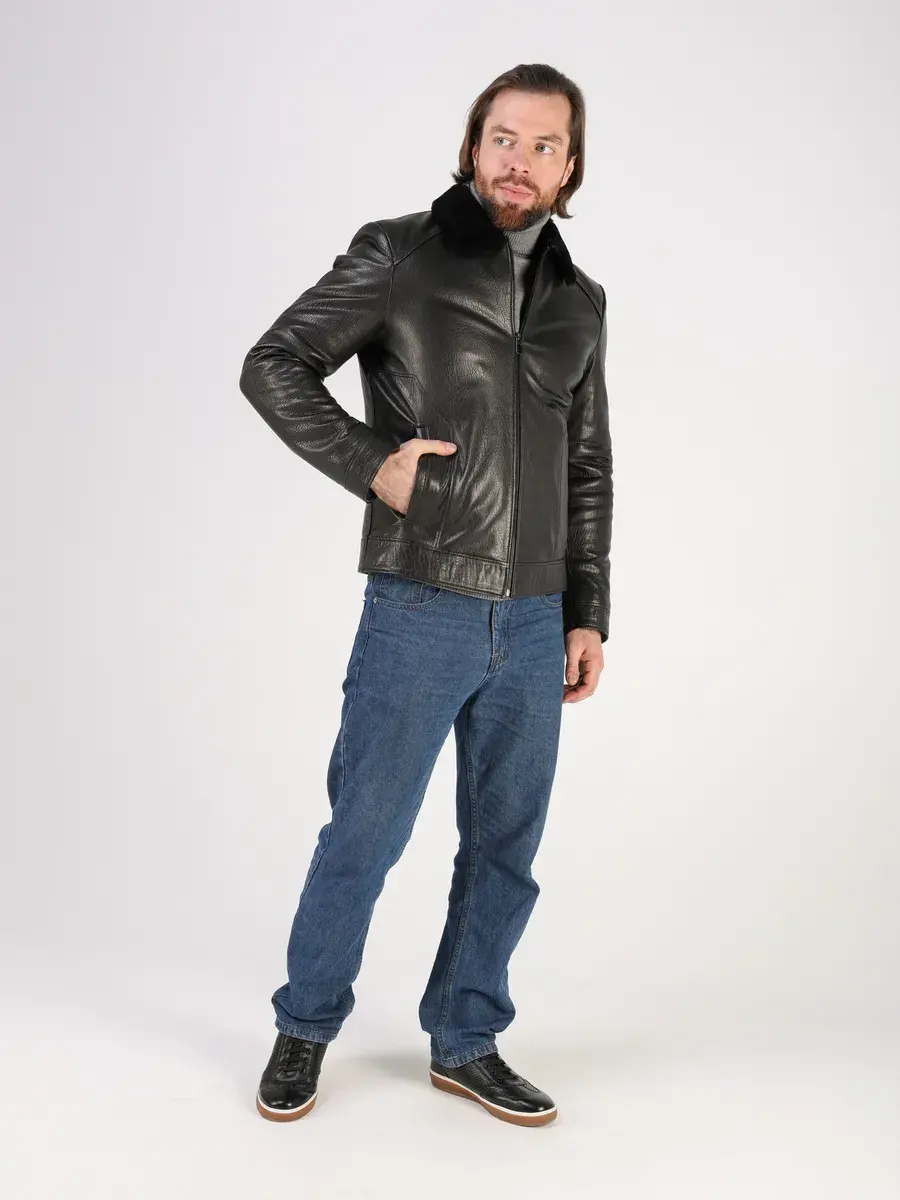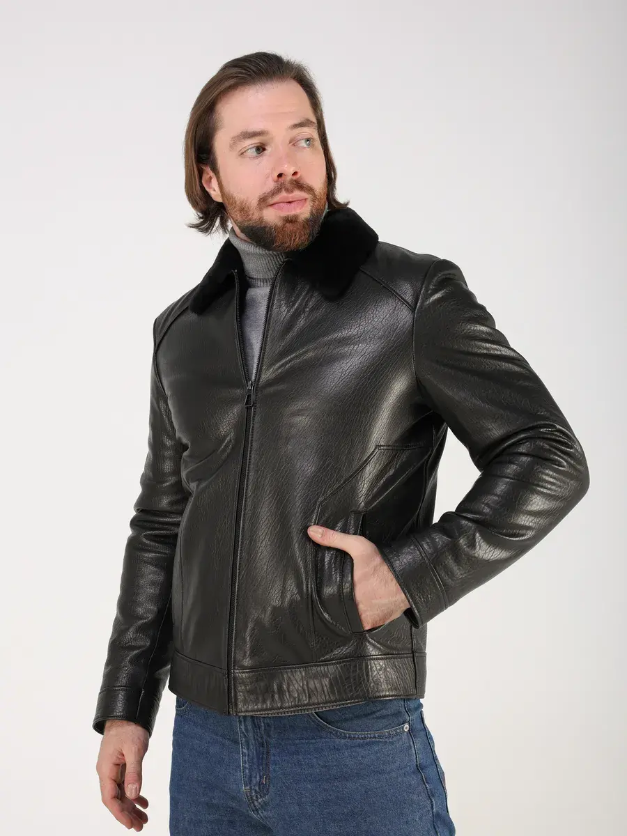 Стильный отложной - меховой воротник, прямой крой, дорогая фактурная кожа придают куртке - дубленке уникальность и изысканность, идеально впишется в деловой стиль и дополнит солидный образ мужчины или парня подростка, независимо от возраста. Дубленка мужская натуральная зимняя имеет застежку на молнии и прорезные карманы которые дополнительно увеличивают функциональность и практичность куртки средней длины. Рукава куртки утеплены синтепоном, на манжетах рукав меховой подклад.