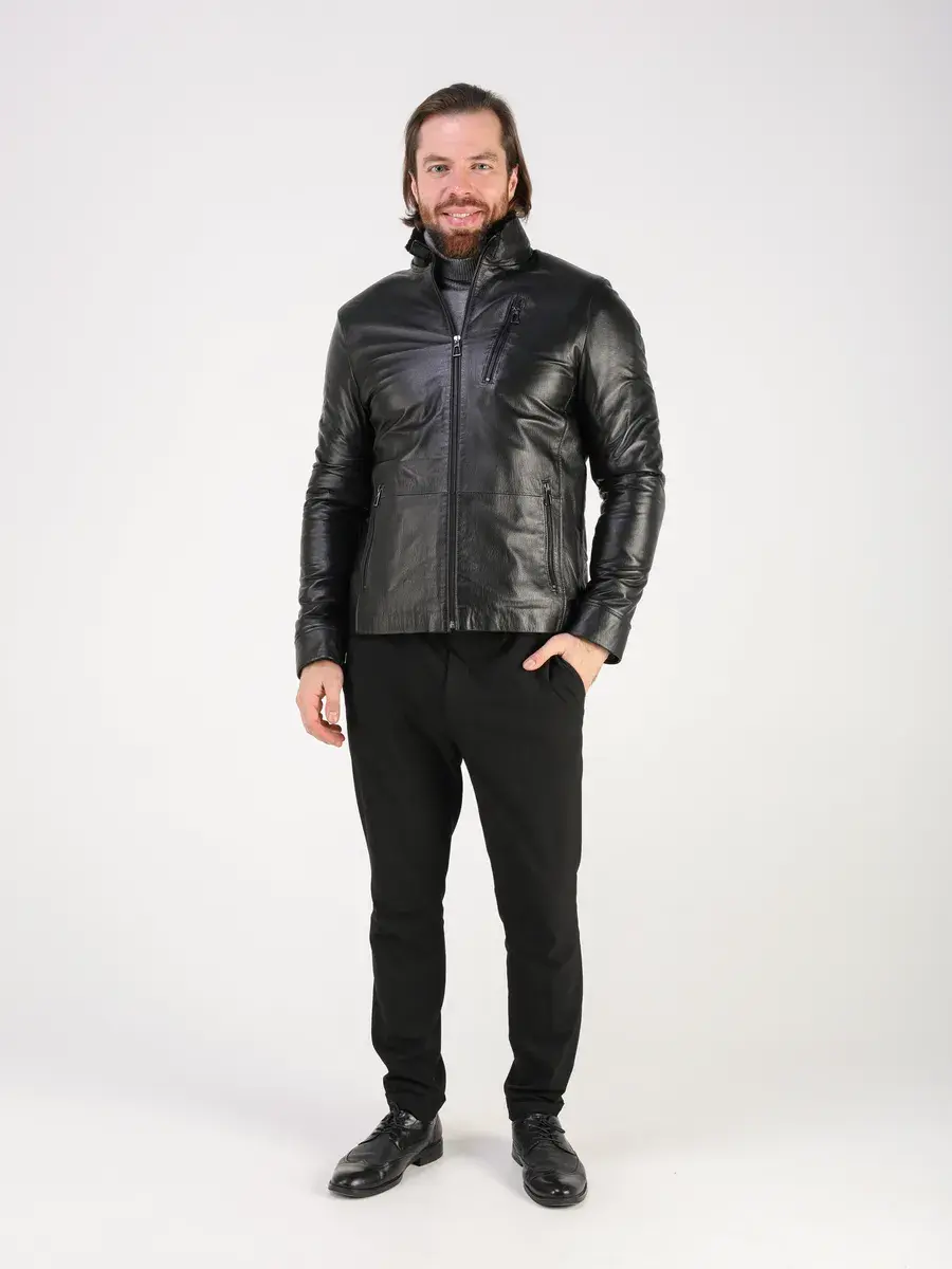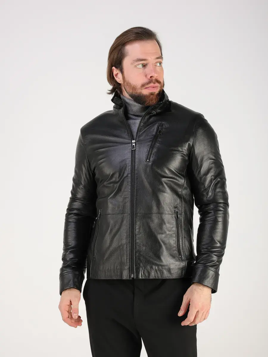Мужская дубленка, куртка осенняя мужская классического цвета, обладающее оптимальной длиной, лаконичным дизайном без лишних декоративных элементов, выполненное из материалов, имеющих высокое качество, доступно в больших размерах - от маленьких до плюс - сайз.