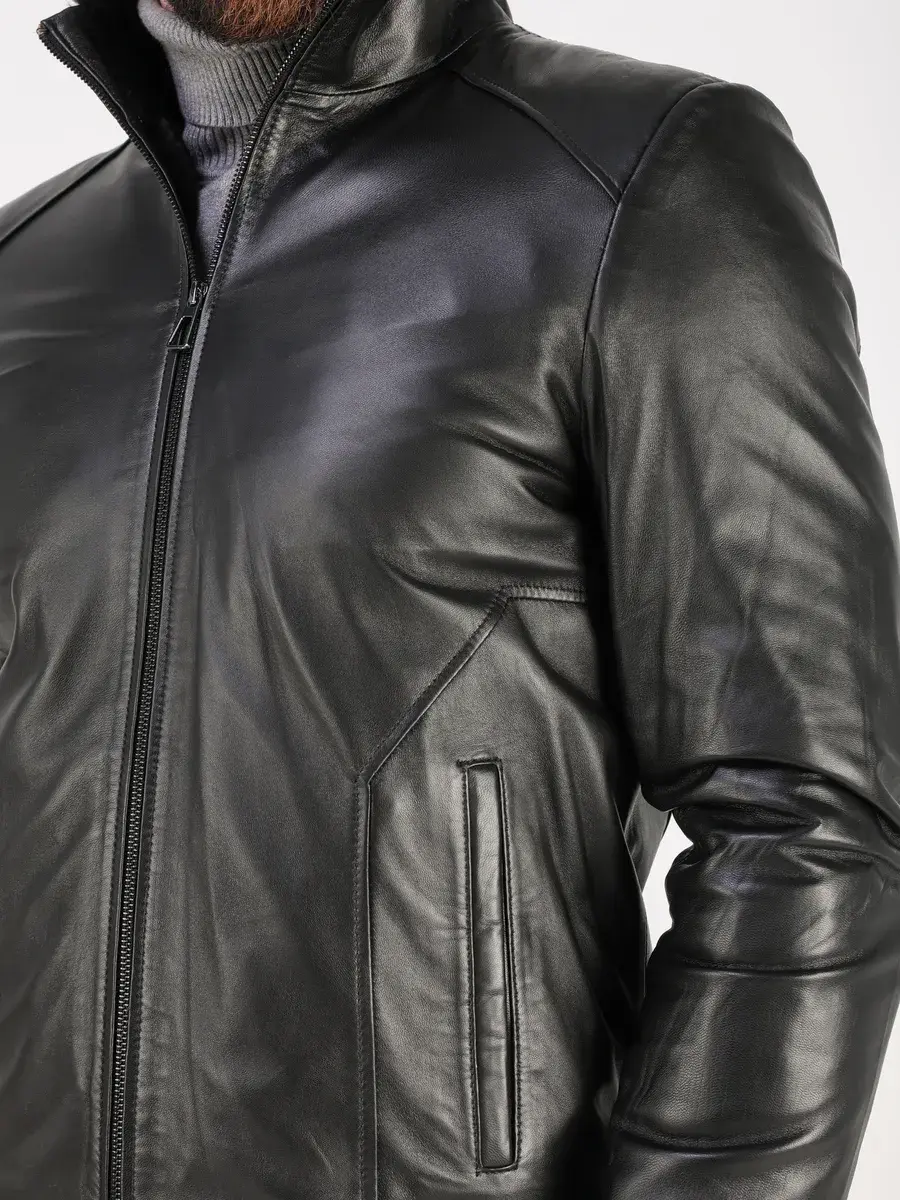 Стильный воротник стойка, прямой крой, дорогая гладкая кожа - плонже, декоротивные строчки придают куртке - дубленке уникальность и изысканность, идеально впишется в деловой стиль и дополнит солидный образ мужчины или подростка, независимо от возраста. Дубленка мужская натуральная зимняя имеет застежку на молнии и прорезные карманы которые дополнительно увеличивают функциональность и практичность куртки средней длины. Рукава куртки утеплены синтепоном, на манжетах рукав меховой подклад.