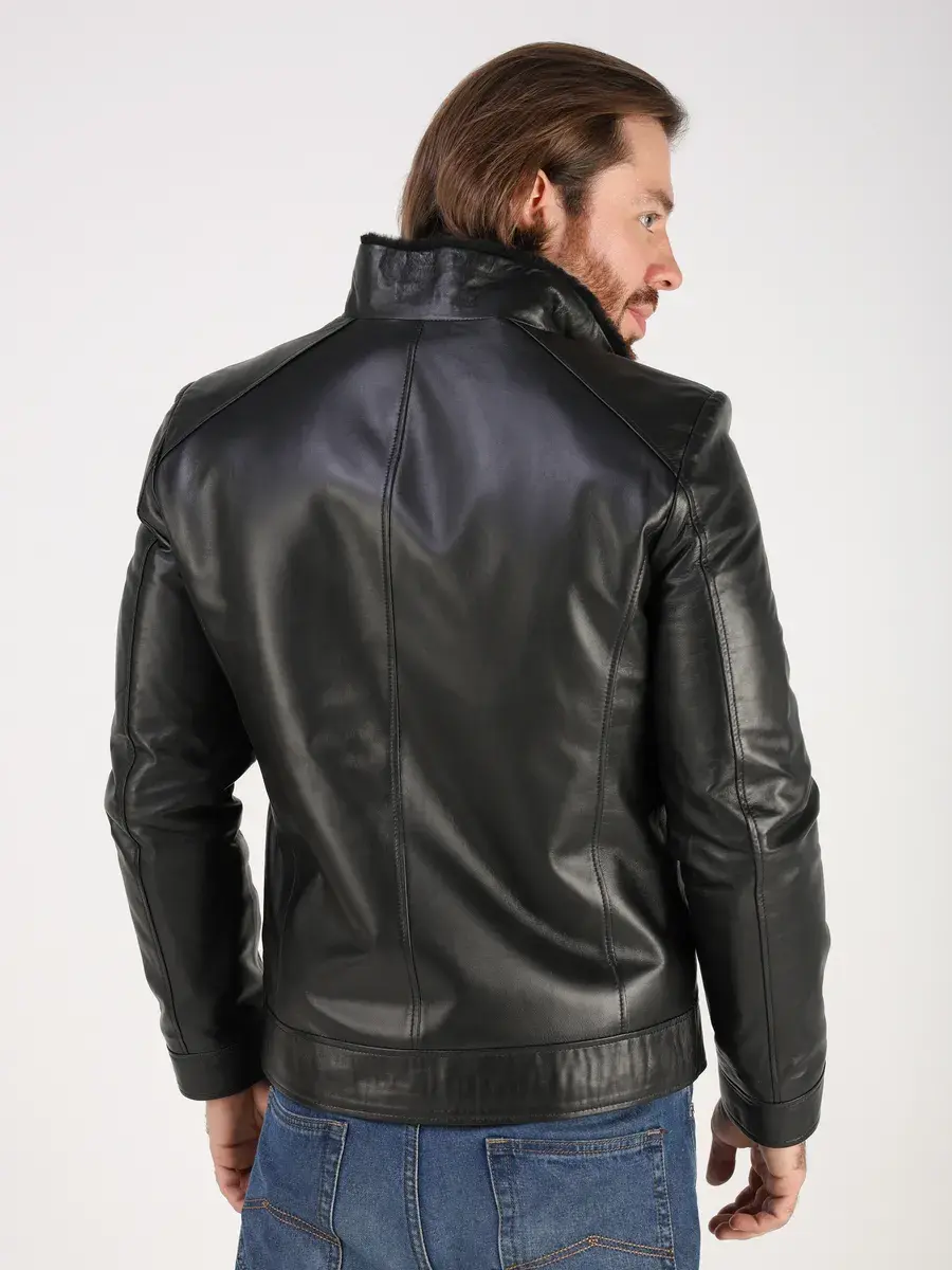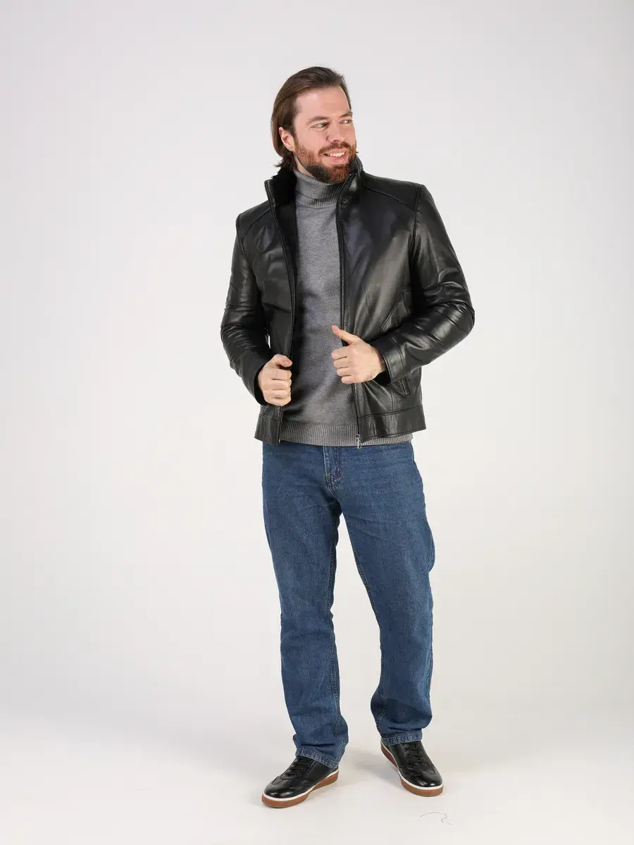Куртка зимняя мужская натуральная овчина кожаная,