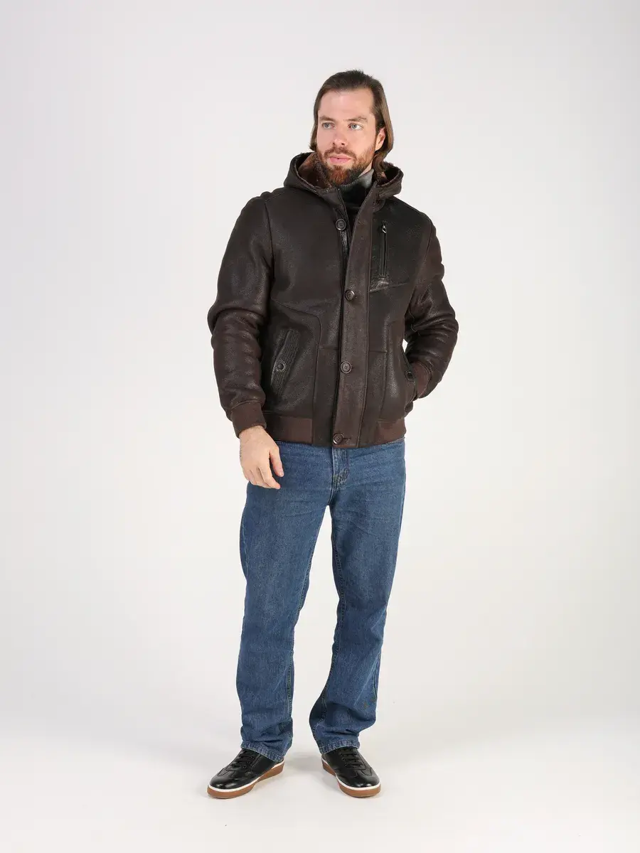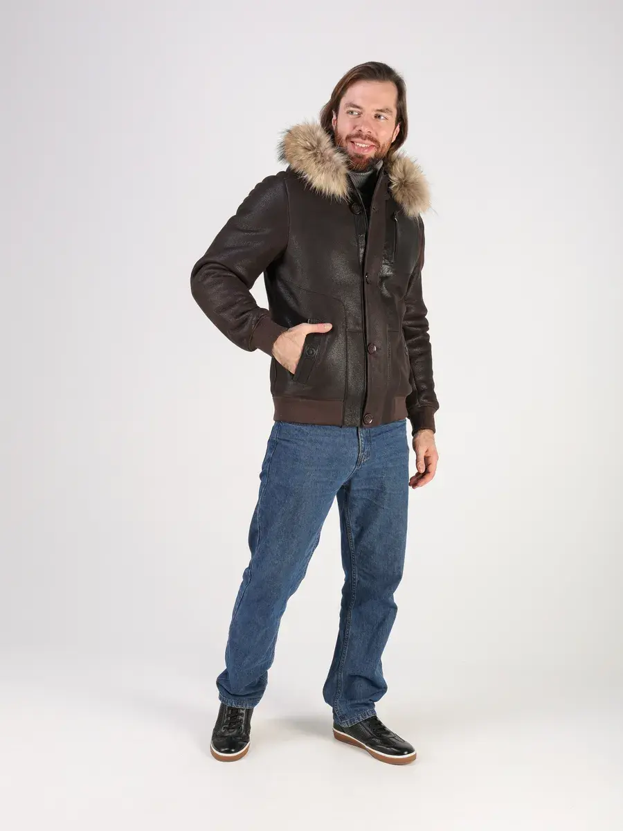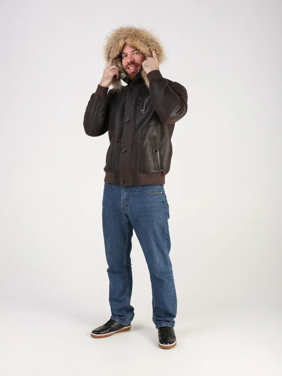 Куртка зимняя мужская натуральная овчина с капюшоном