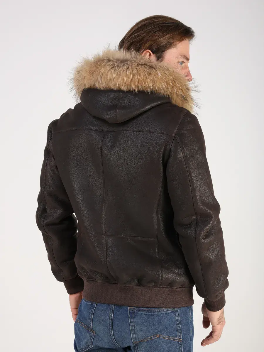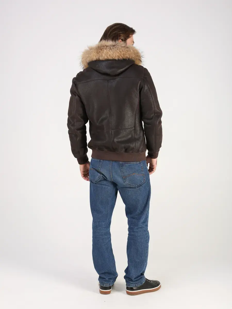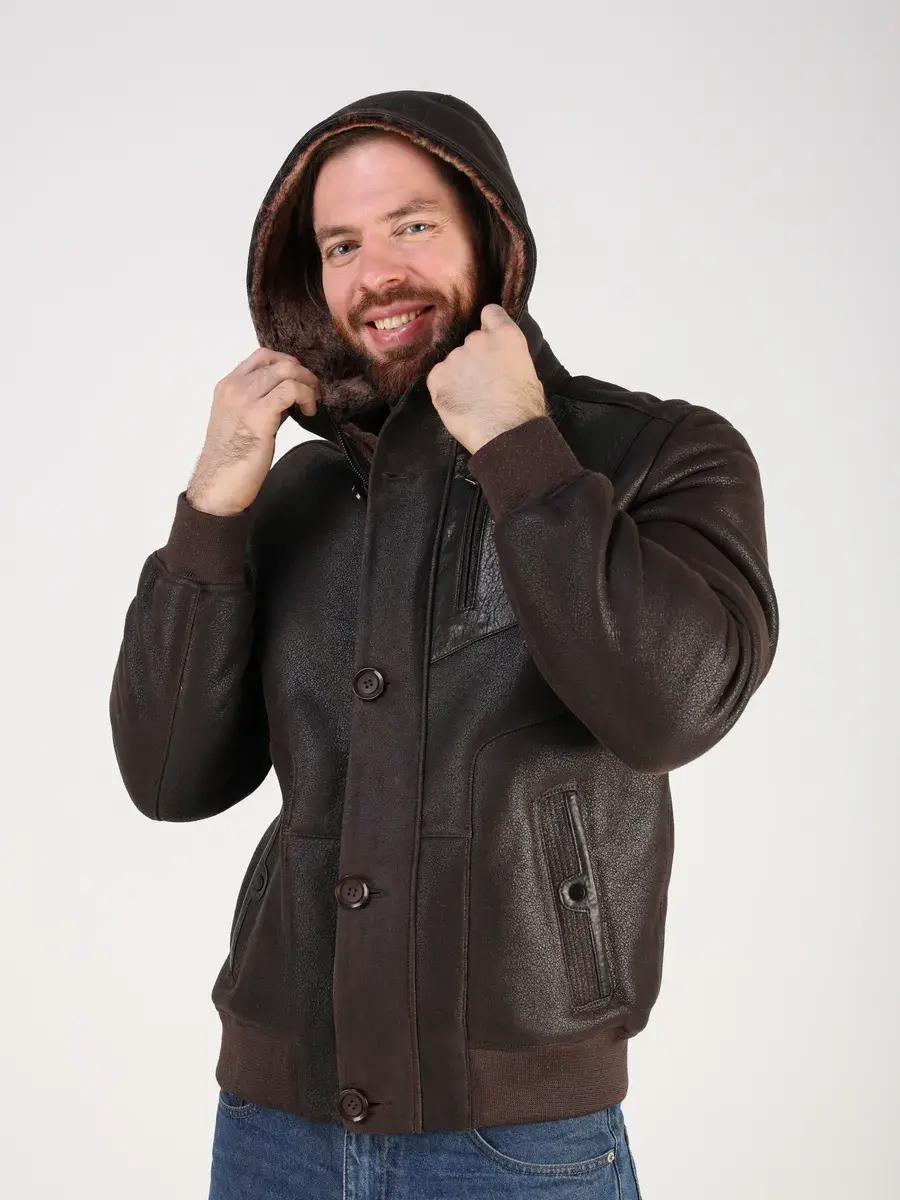 Куртка зимняя мужская натуральная овчина с капюшоном