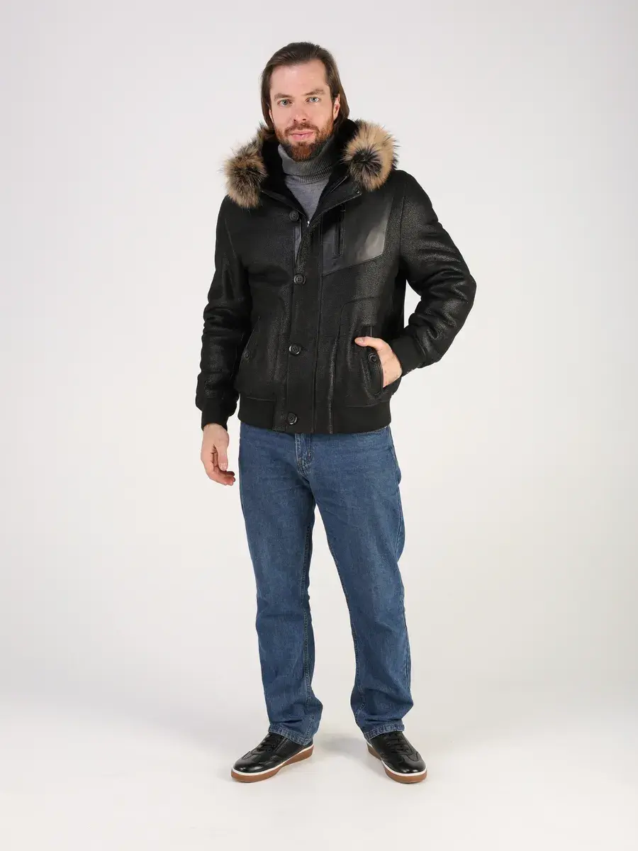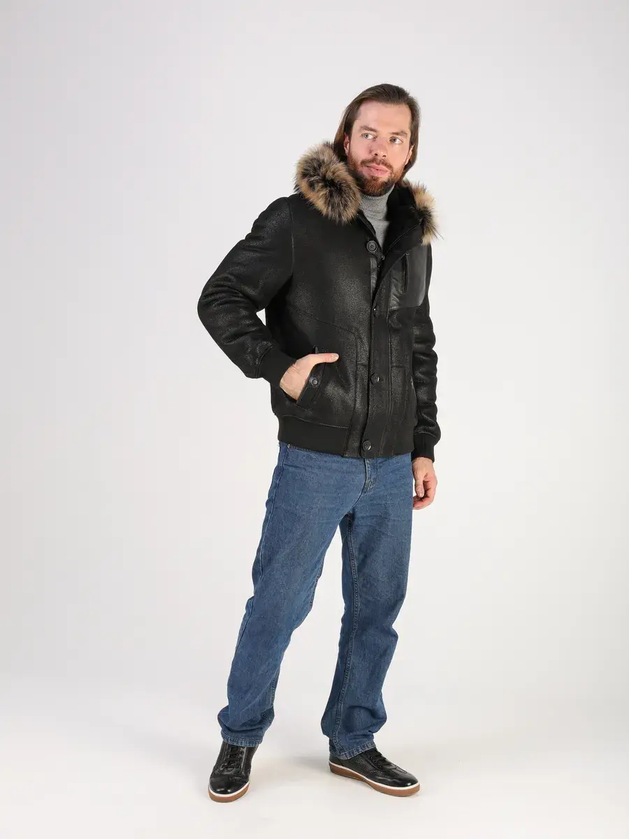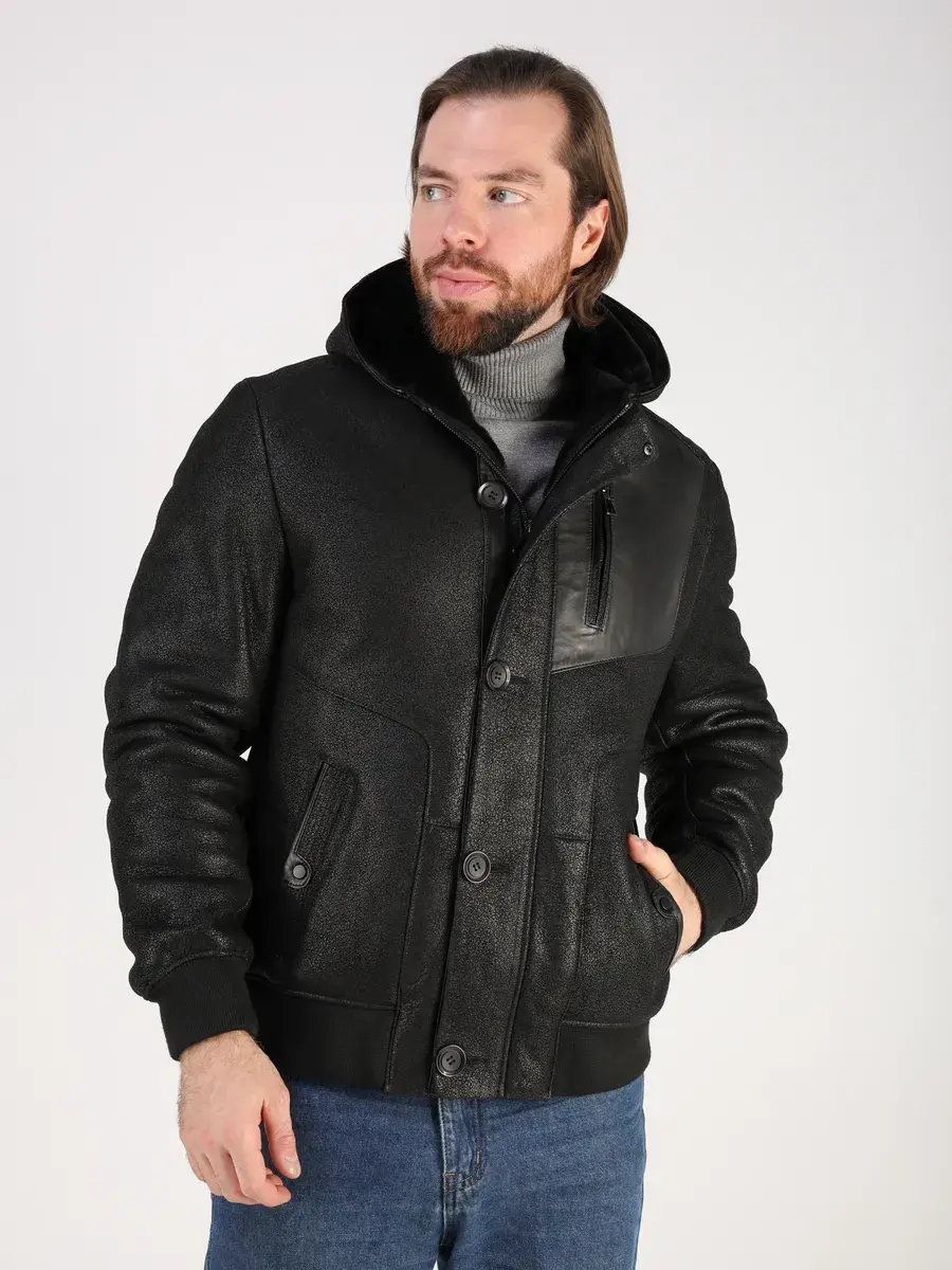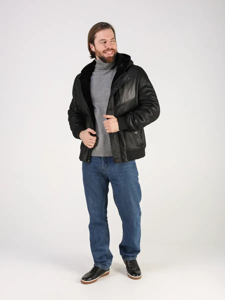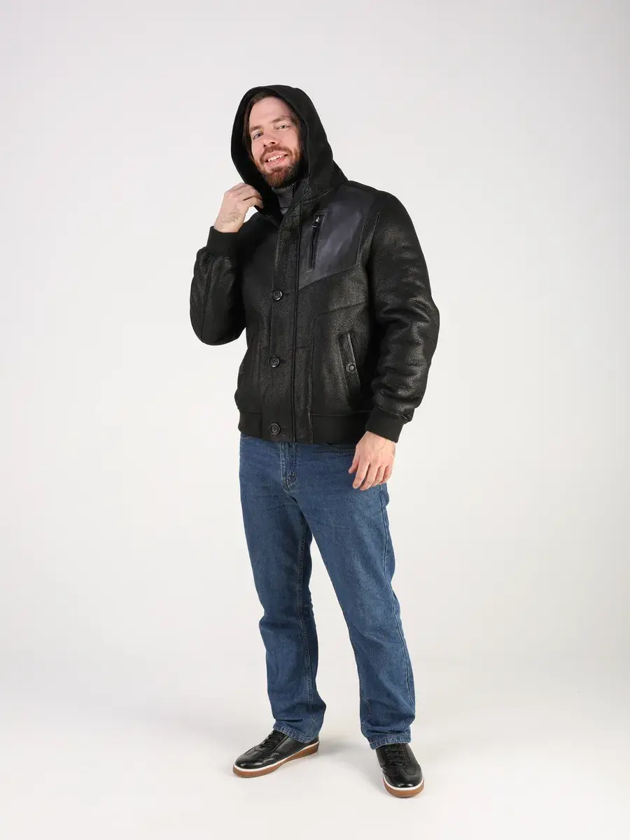 Куртка зимняя мужская натуральная овчина с капюшоном