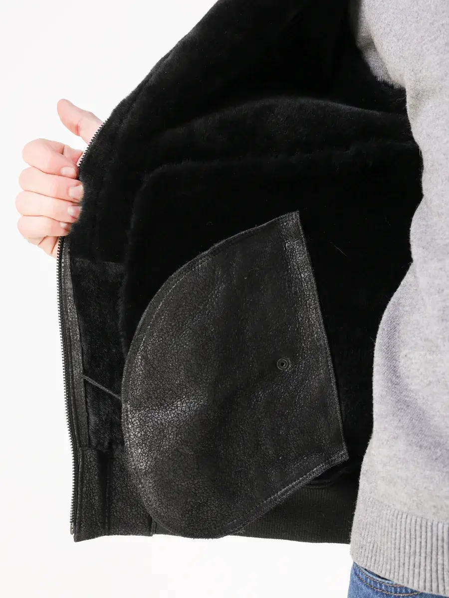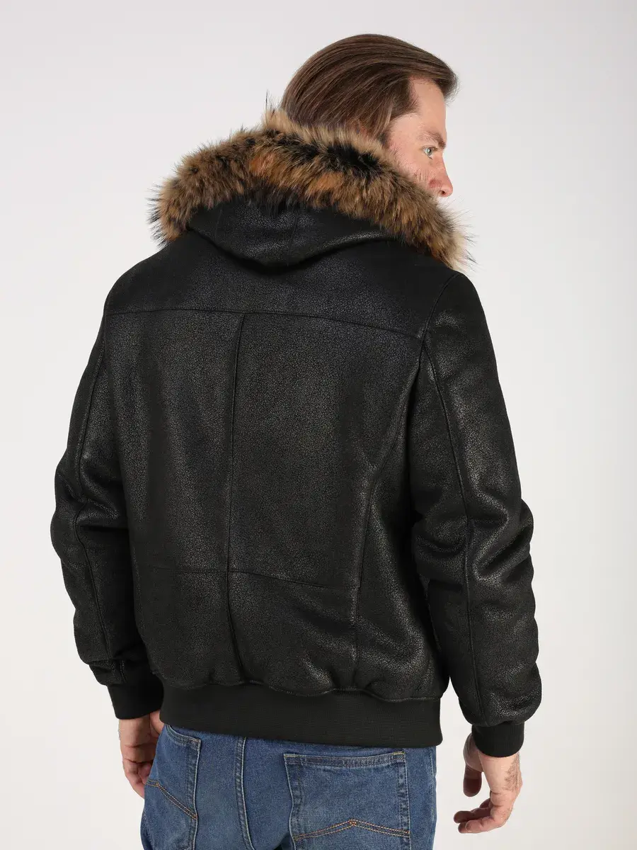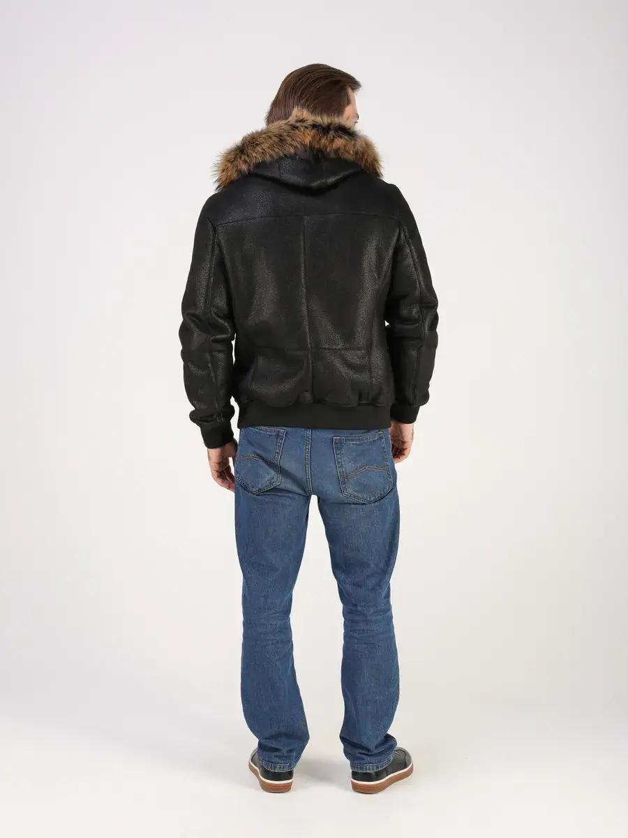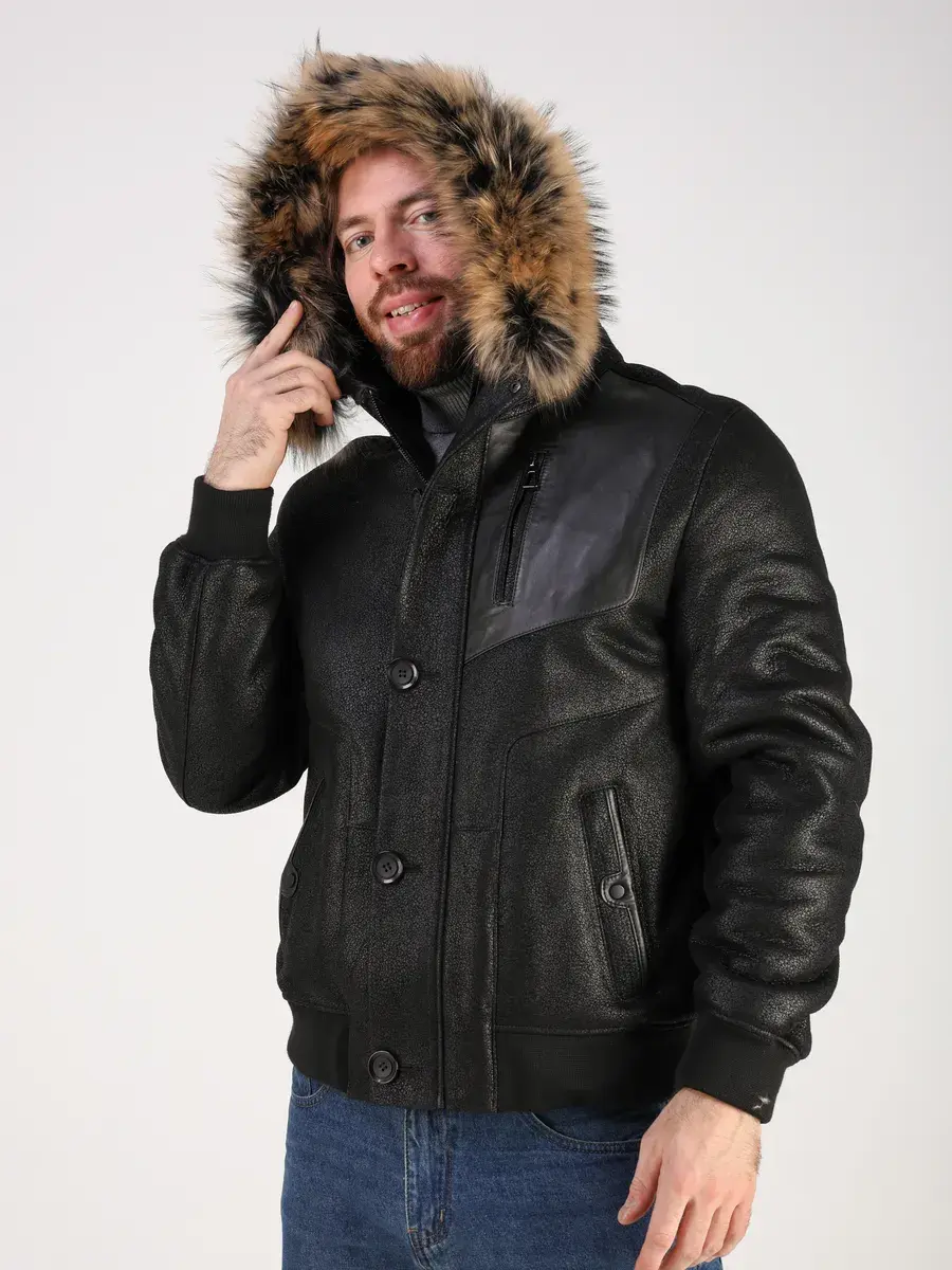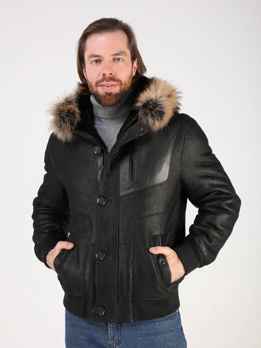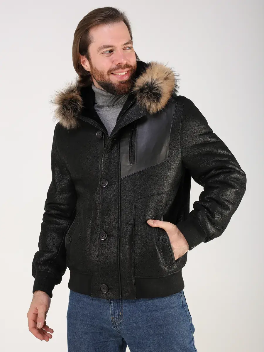 Куртка зимняя мужская натуральная овчина с капюшоном