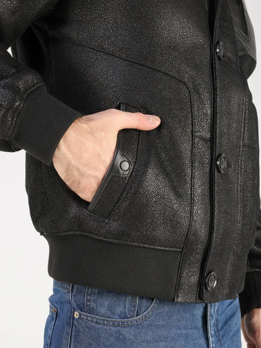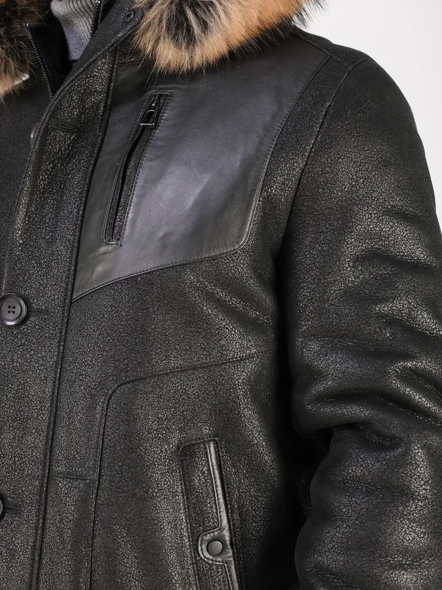 Съемная меховая опушка на капюшоне, прямой крой, фактура "крэк" и кожаные вставки придают куртке - дубленке уникальность и изысканность, идеально впишется в деловой стиль и дополнит солидный образ мужчины или подростка, независимо от возраста. Дубленка мужская натуральная зимняя имеет двойную застежку на молнии и пуговицы и прорезные карманы которые увеличивают функциональность куртки средней длины.