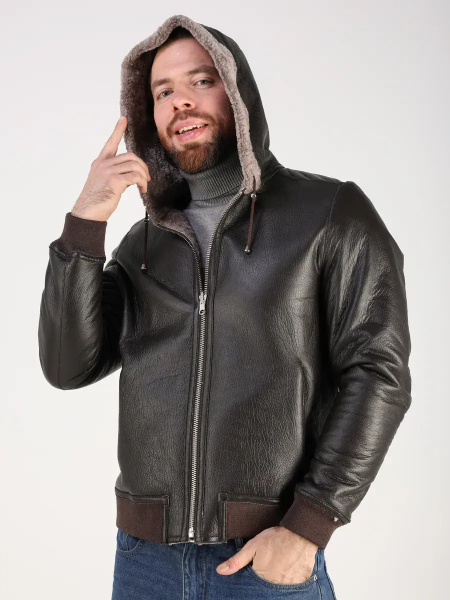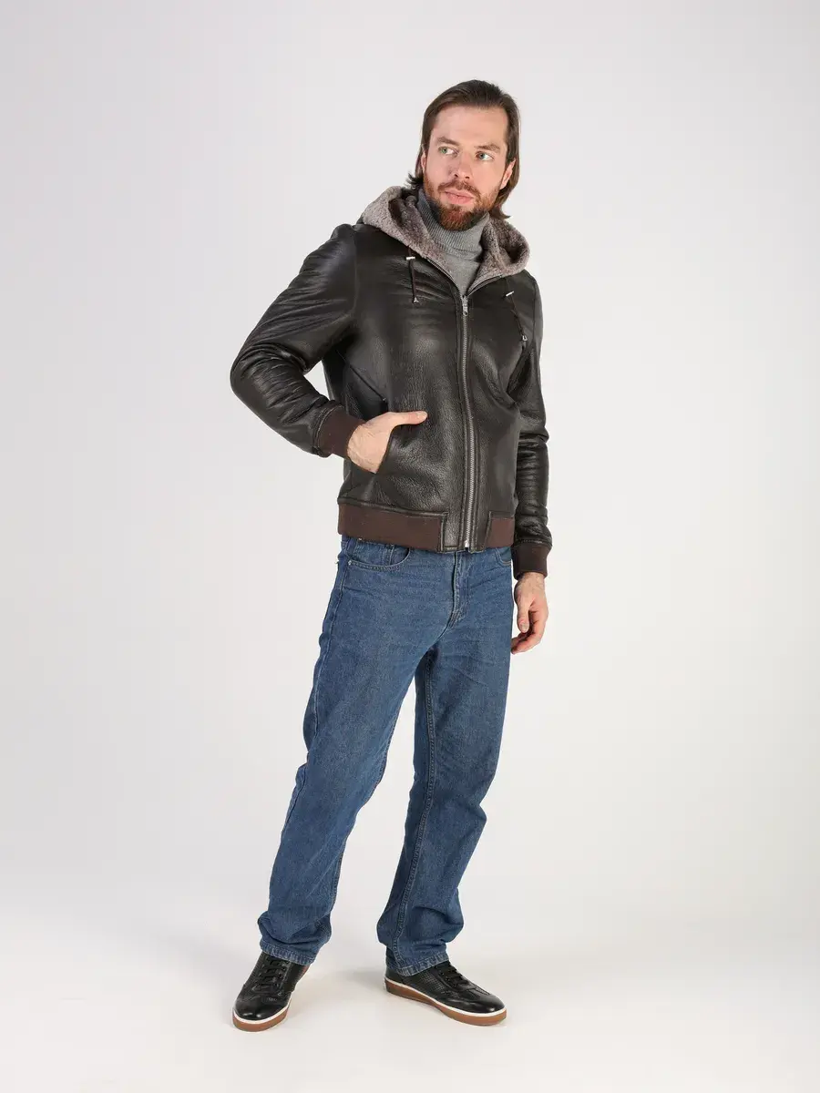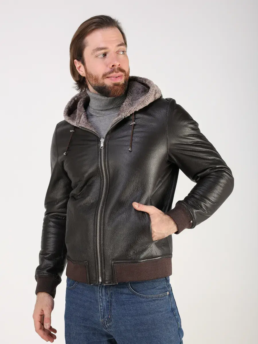 Куртка зимняя мужская с капюшоном натуральная кожаная
