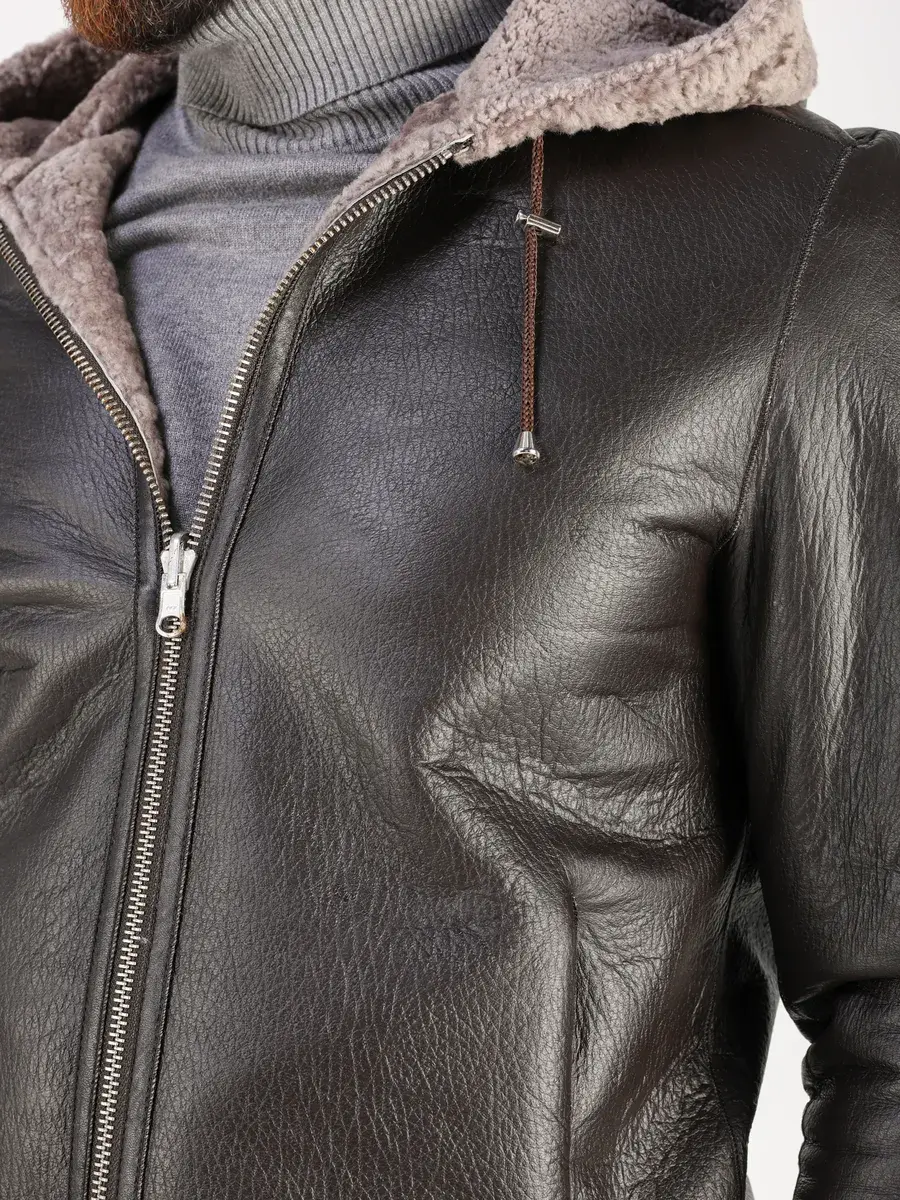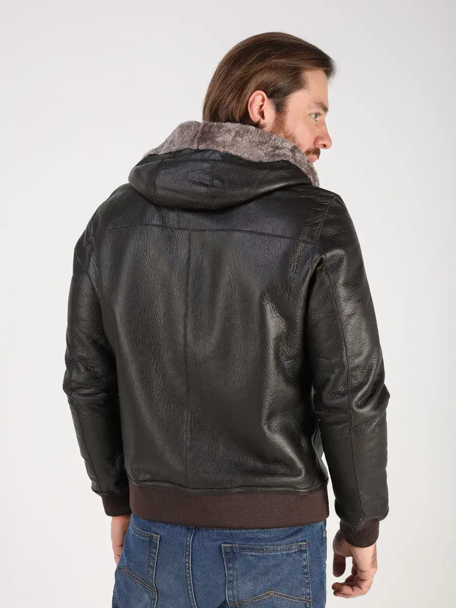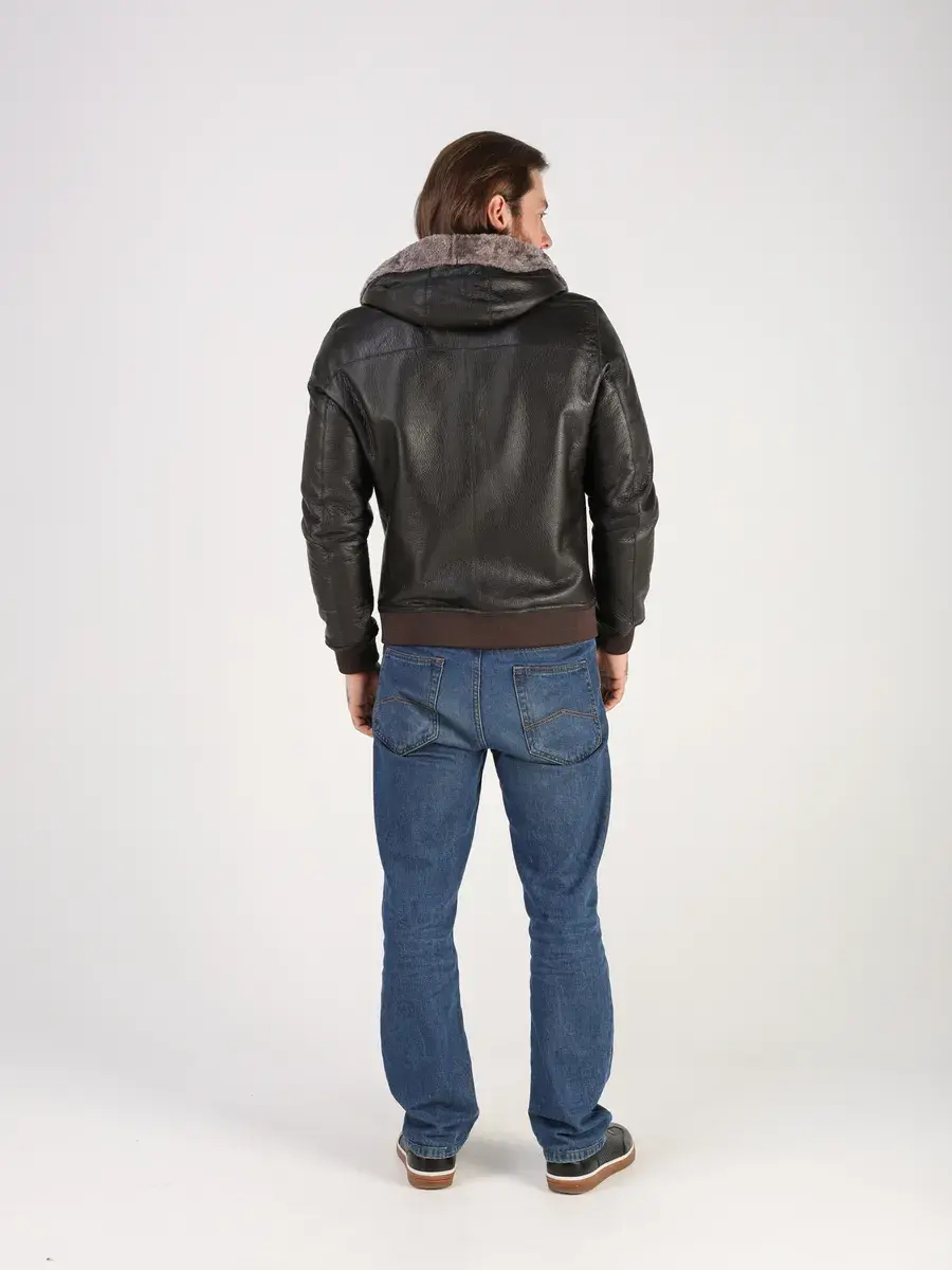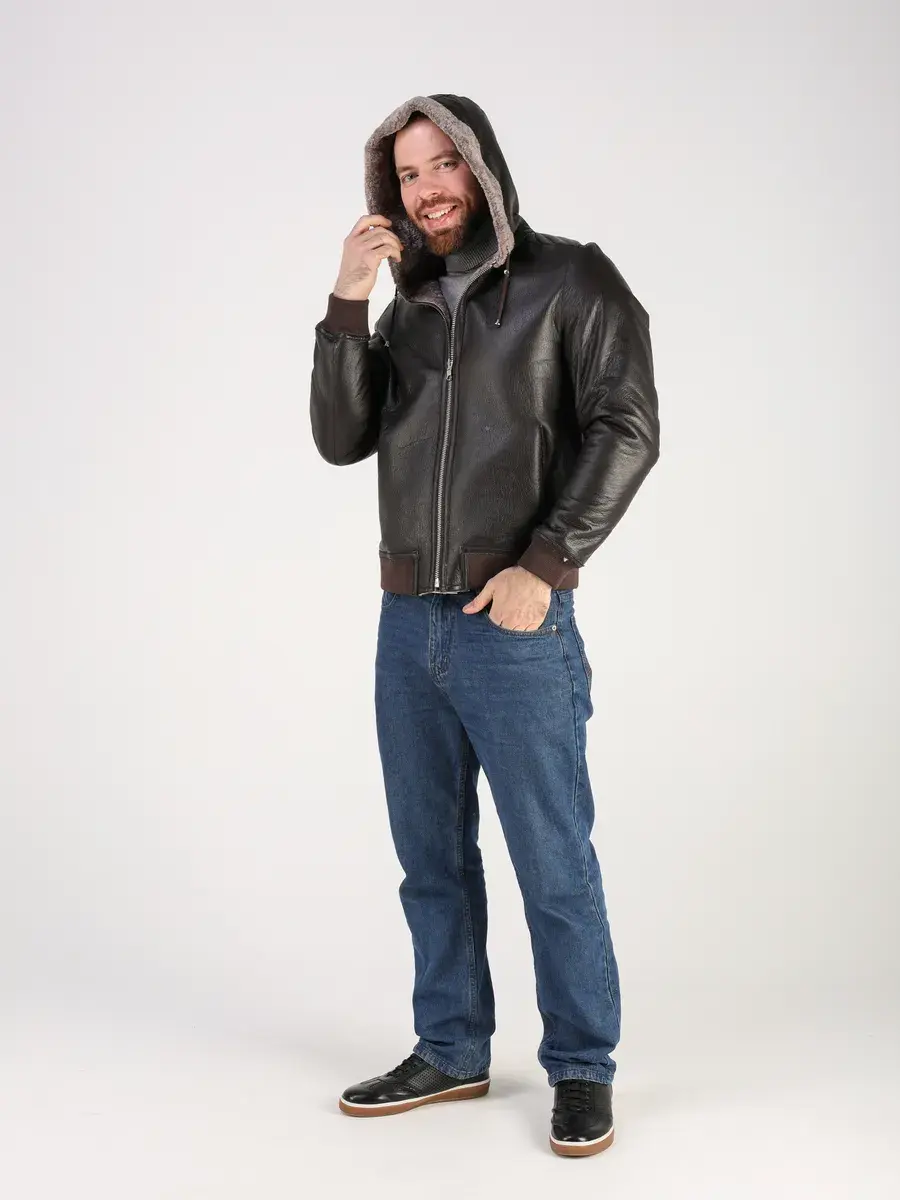 Куртка зимняя мужская с капюшоном натуральная кожаная