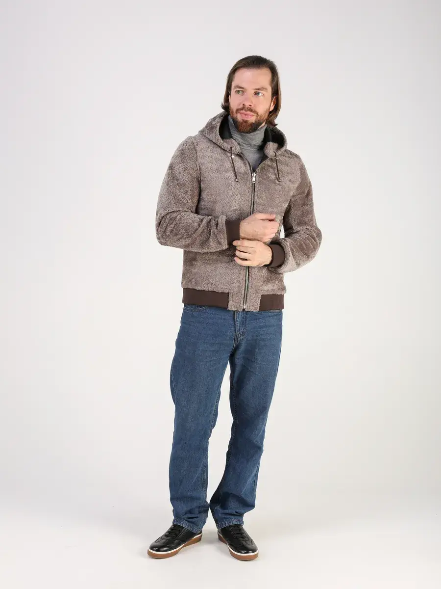 Особое внимание привлекает свободный - прямой крой с трикотажными манжетами, капюшон и фактура меха, которые придают куртке - дубленке уникальность и изысканность, идеально впишется в деловой стиль и дополнит солидный образ мужчины или подростка. Дубленка мужская натуральная зимняя имеет застежку на молнии и прорезные карманы которые увеличивают функциональность куртки - шубки средней длины.