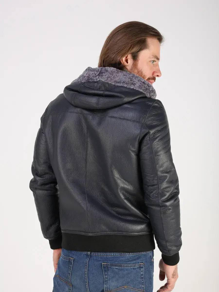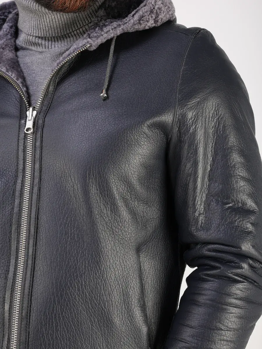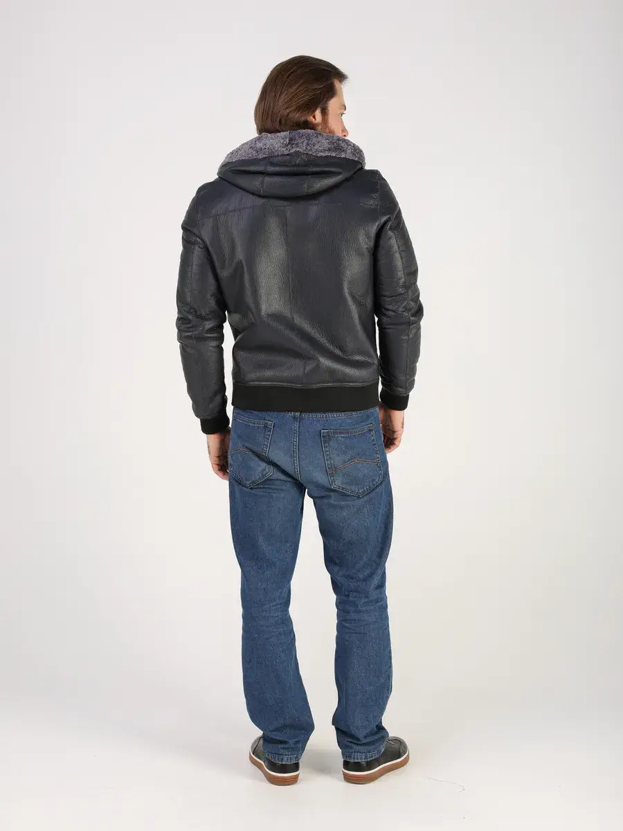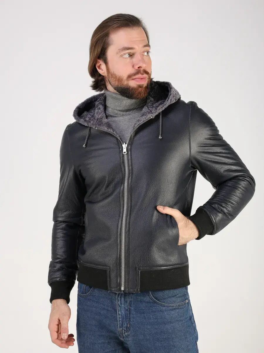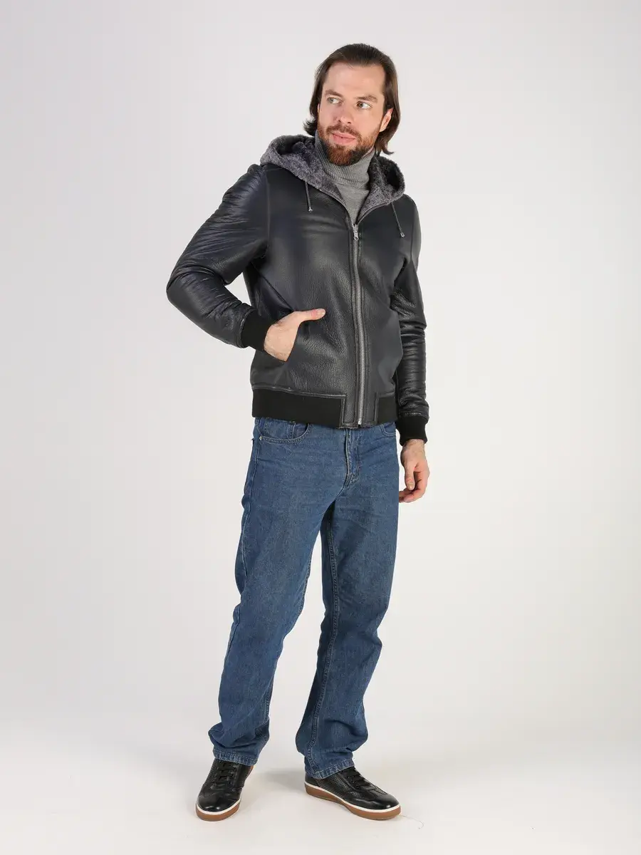 Куртка зимняя мужская с капюшоном натуральная кожаная