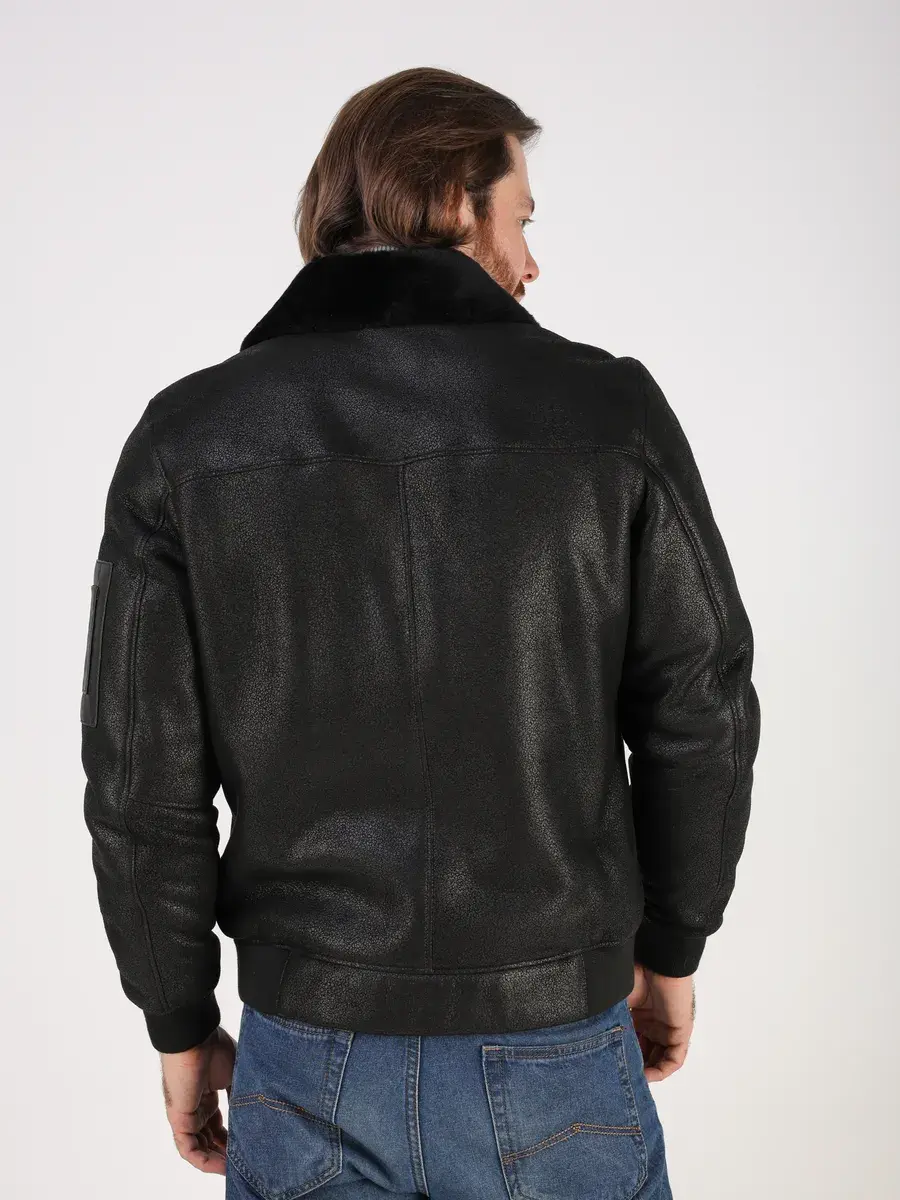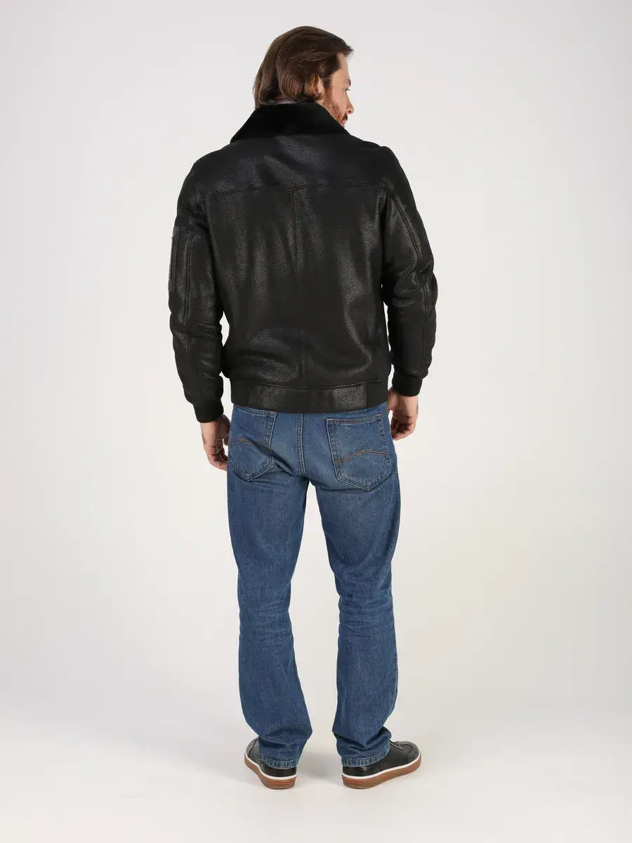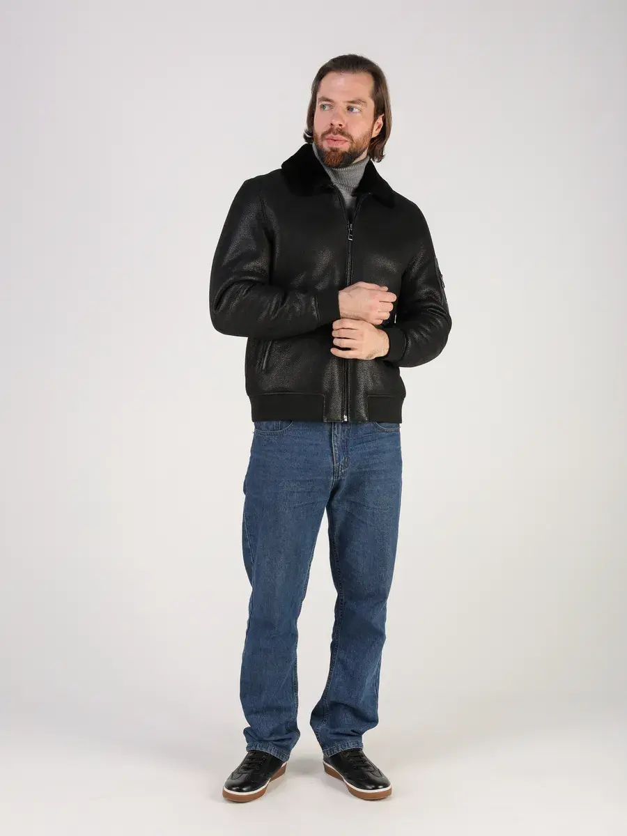 Дубленка мужская зимняя натуральная овчина кожаная,