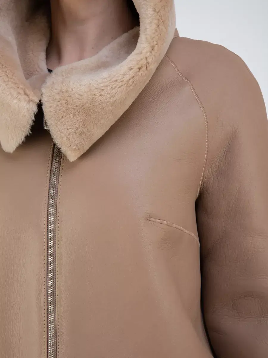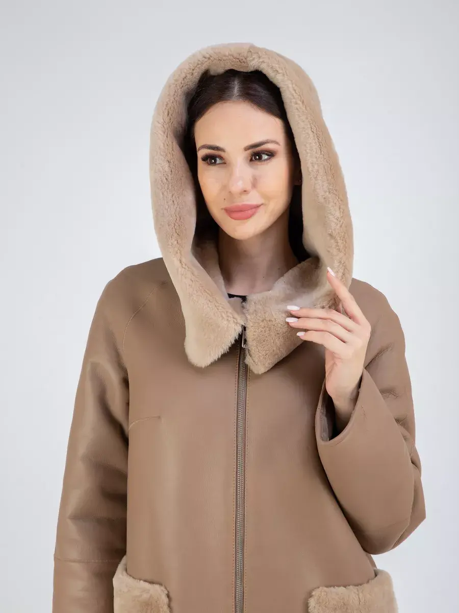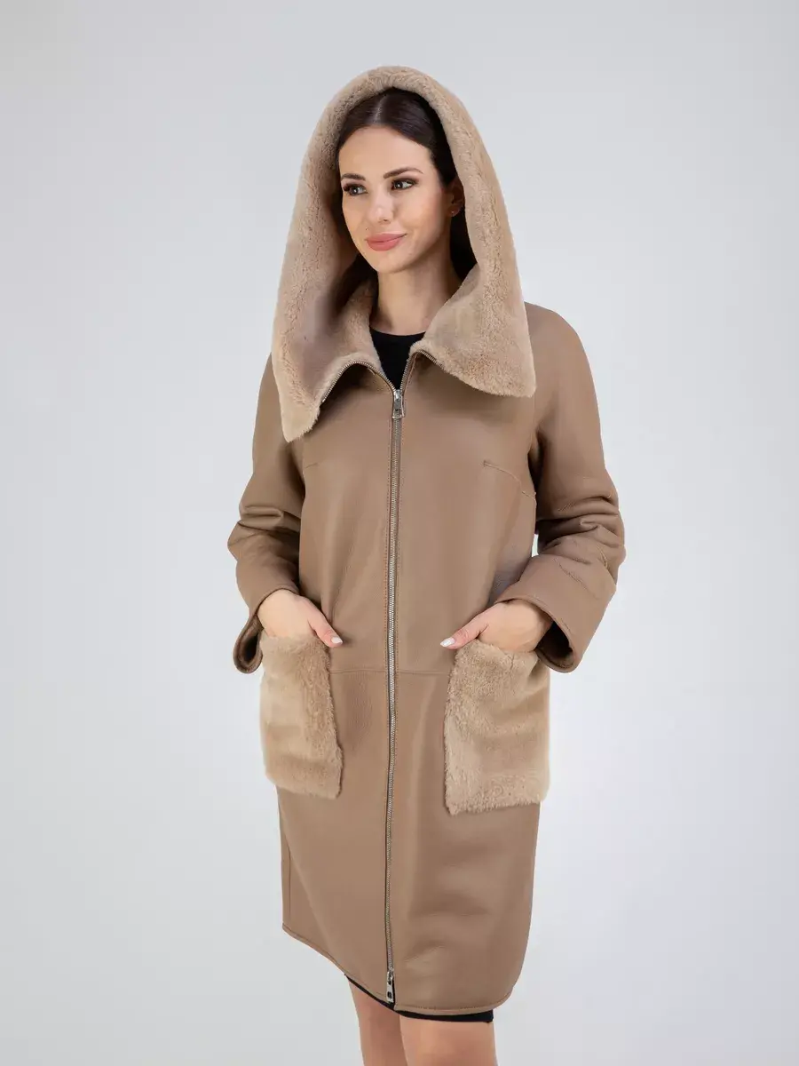 дубленка женская натуральная с капюшоном удлиненная