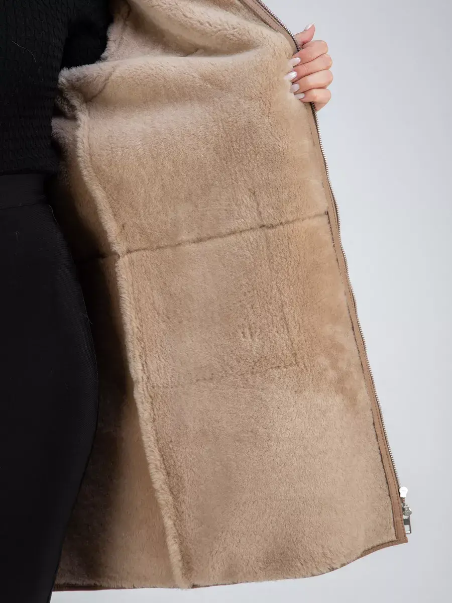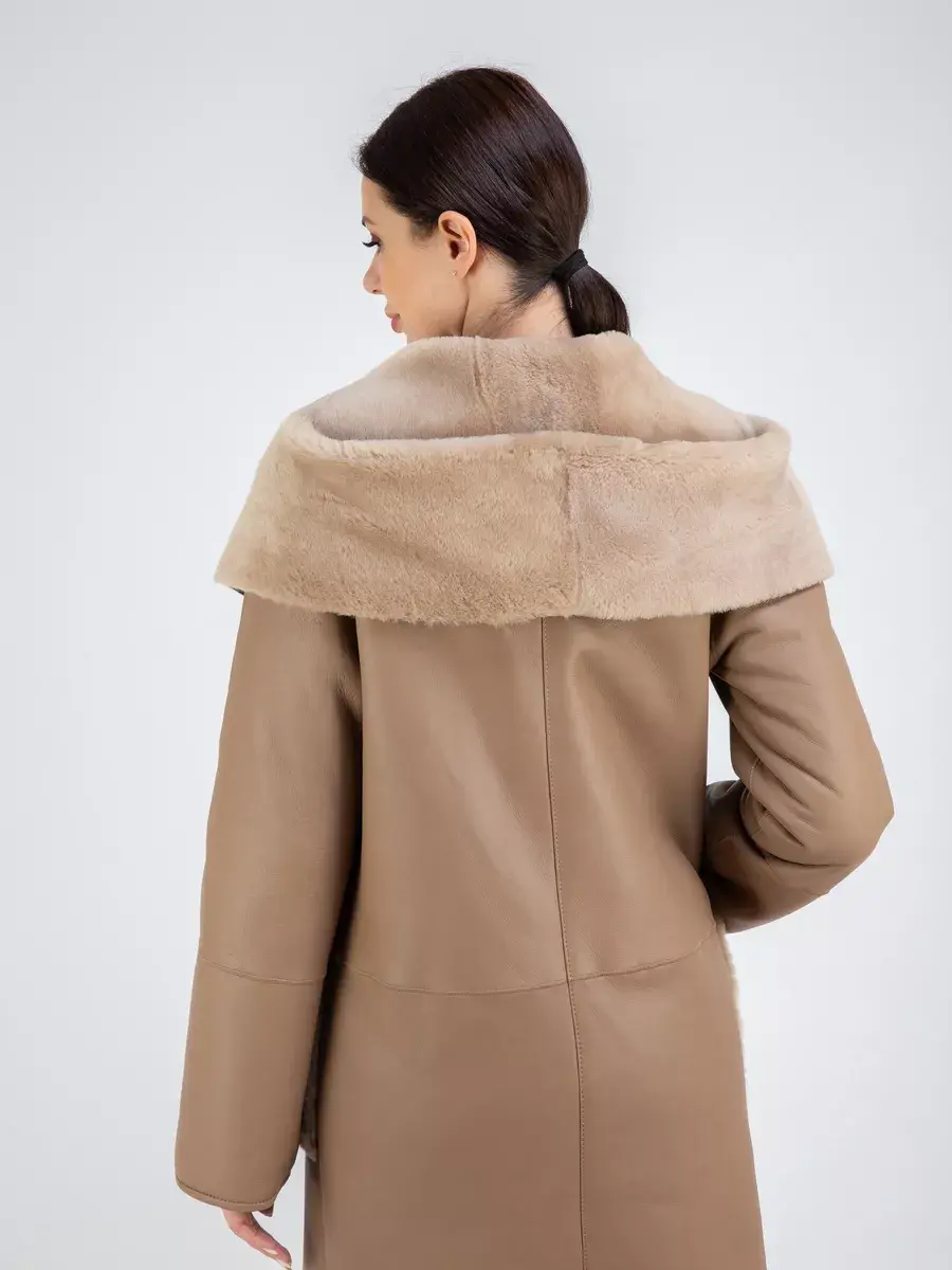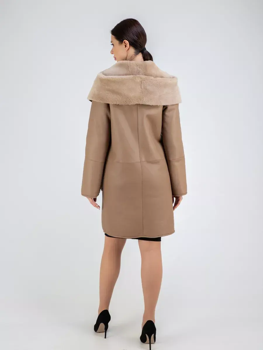 дубленка женская натуральная с капюшоном удлиненная