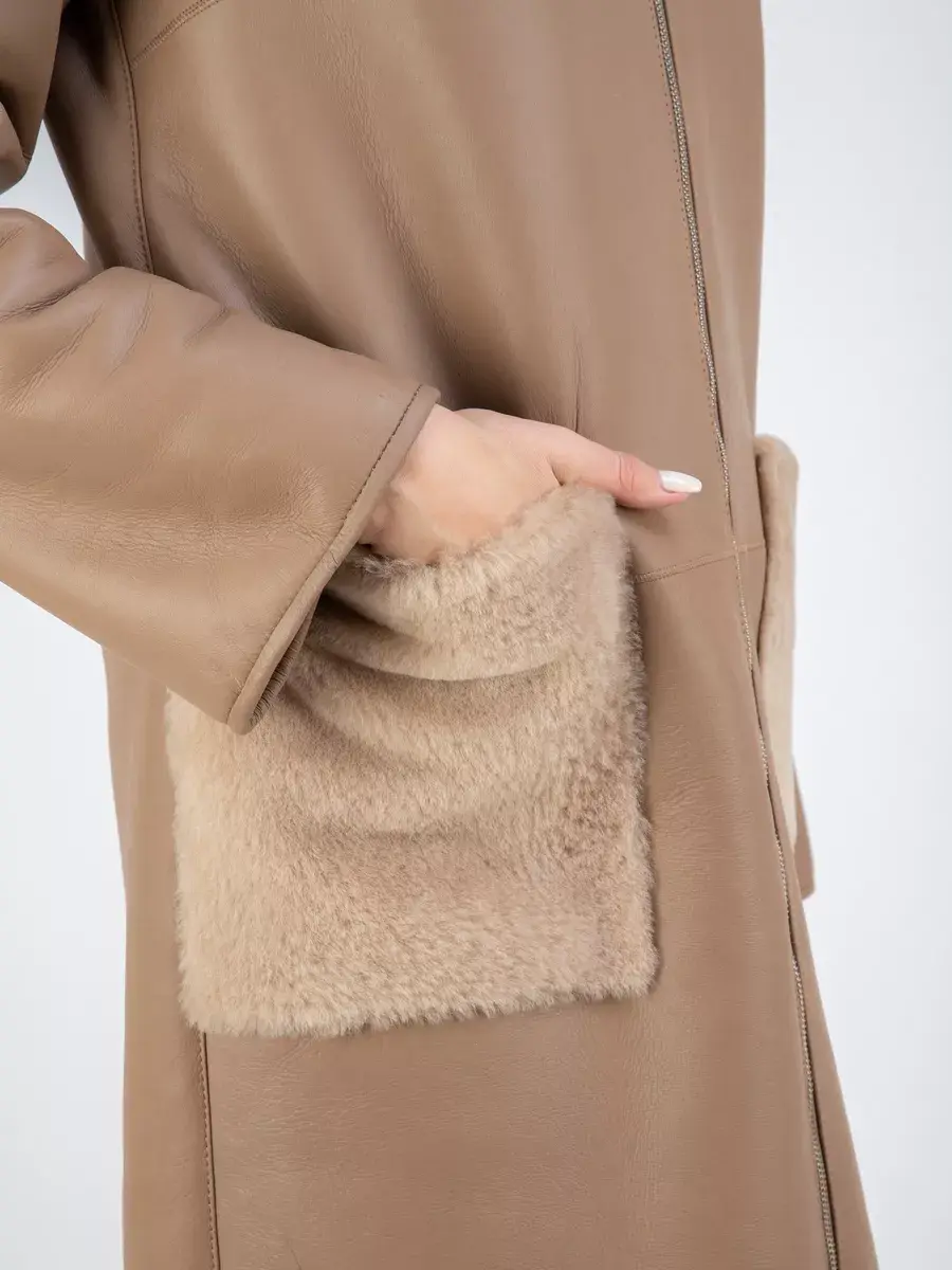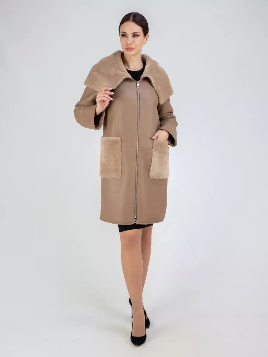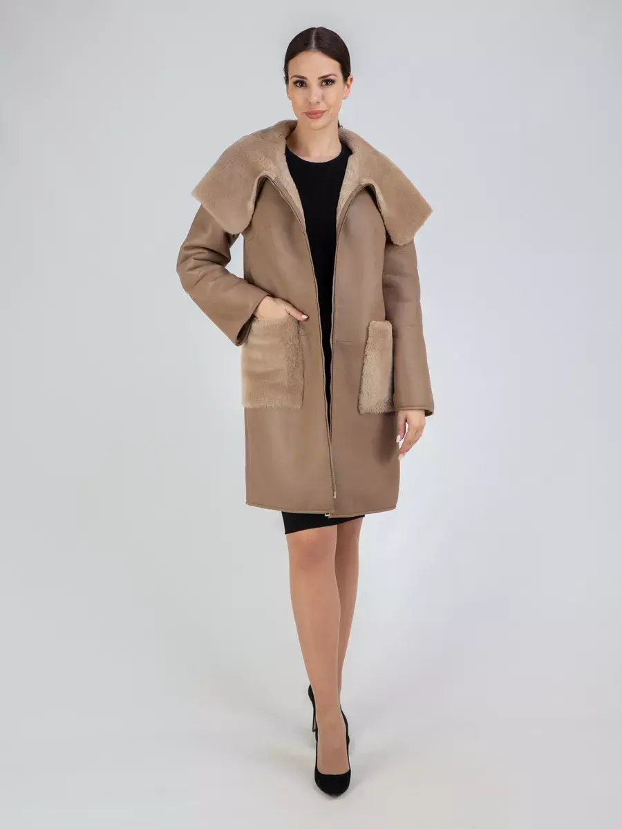 Стильная дубленка женская натуральная с капюшоном - это идеальный выбор для зимнего сезона. Зимняя дубленка сочетает в себе стильные акценты с непревзойденным комфортом. Данная дубленка выполнена из натурального сырья высокого качества, что делает ее не только стильной, но и долговечной. Важно отметить, что натуральная женская дубленка значительно превосходит искусственные аналоги по многим параметрам. Капюшон дубленки несъемный и объемный , что обеспечивает дополнительную защиту от холода и ветра. Благодаря своему объемному дизайну, капюшон подчеркивает элегантность этой модели. Для удобства использования, дубленка женская зимняя оборудована застежкой на молнии. Длина дубленки по спинке составляет 90см. Этот удлиненный дизайн подчеркивает женственность и элегантность. Накладные карманы дубленки украшены отделкой из мягкого меха, что придает модели изысканности и шарма. Прямой, свободный крой дубленки позволяет свободно двигаться и чувствовать себя комфортно в любых ситуациях. Она идеально сочетается как с повседневным, так и с деловым стилем, и может легко быть ярким акцентом в любом образе. Рукава реглан придает исключительную мягкость дубленке и делает линию плеч закругленной. Дубленка женская длинная изготовлена в Турции, известной своим качеством и вниманием к деталям. Вы можете быть уверены, что этот товар будет радовать вас долгое время и станет незаменимым аксессуаром в зимнем гардеробе. В наличии широкая размерная сетка включающая большие размеры, чтобы каждая женщина могла найти свой идеальный вариант. Предлагаем широкий выбор моделей зимней верхней одежды, больших размеров, оверсайз или приталенного кроя в подарок со скидкой на странице бренда MONDIAL