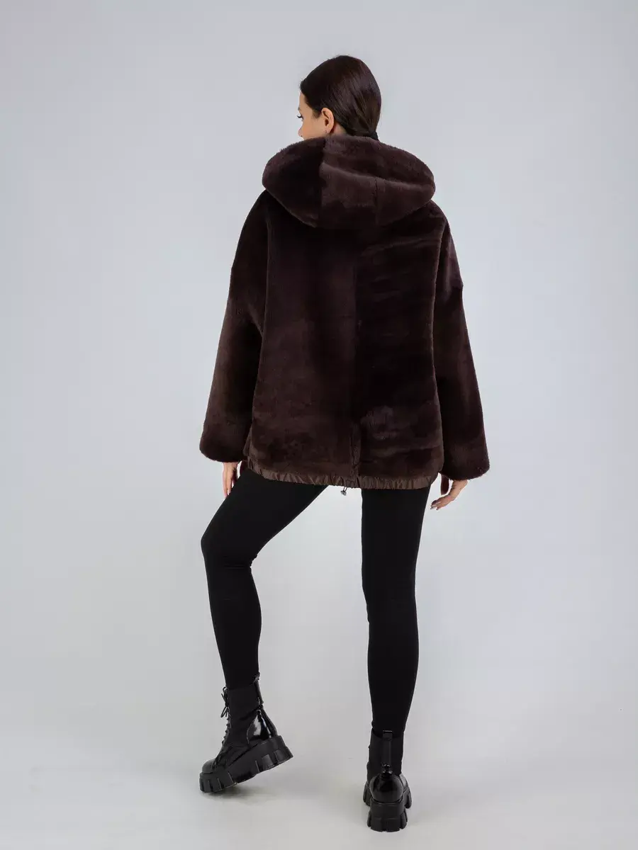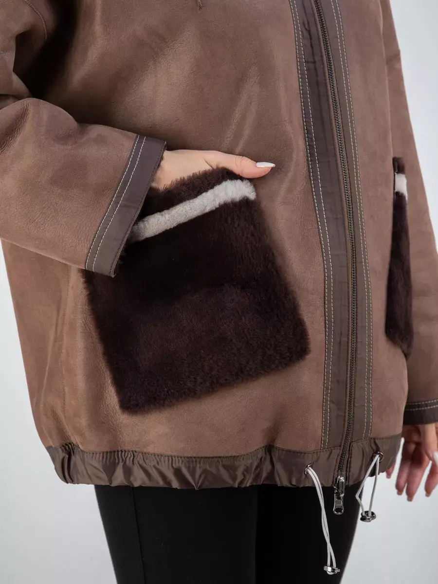 Дубленка женская оверсайз выполнена в двухстороннем варианте, что позволяет менять образ в зависимости от настроения. В одном варианте дубленка женская короткая, в втором варианте шуба женская натуральная.