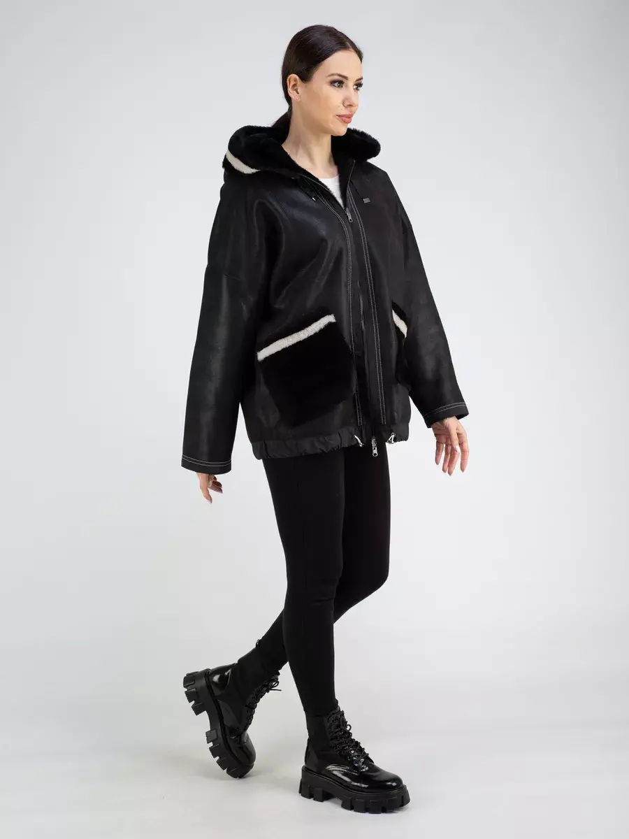 Дубленка женская оверсайз выполнена в двухстороннем варианте, что позволяет менять образ в зависимости от настроения. В одном варианте дубленка женская короткая, в втором варианте шуба женская натуральная.