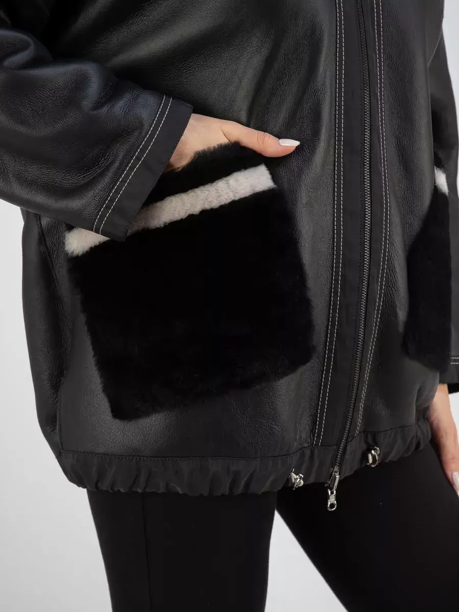 Дубленка женская оверсайз выполнена в двухстороннем варианте, что позволяет менять образ в зависимости от настроения. В одном варианте дубленка женская короткая, в втором варианте шуба женская натуральная. Данная дубленка женская зимняя имеет неповторимый дизайн и надежную застежку на молнии, которая дополнительно обеспечивает защиту от сквозняков и холодного ветра. Капюшон не съемный, объемный, что позволяет сохранять тепло и комфорт даже в самую непогоду. Кулиска на капюшоне и на подоле позволяет регулировать его размер и объем, фиксировать капюш в нужном положении.