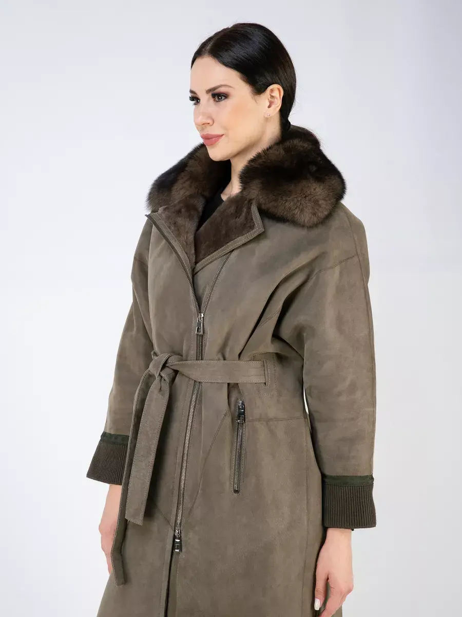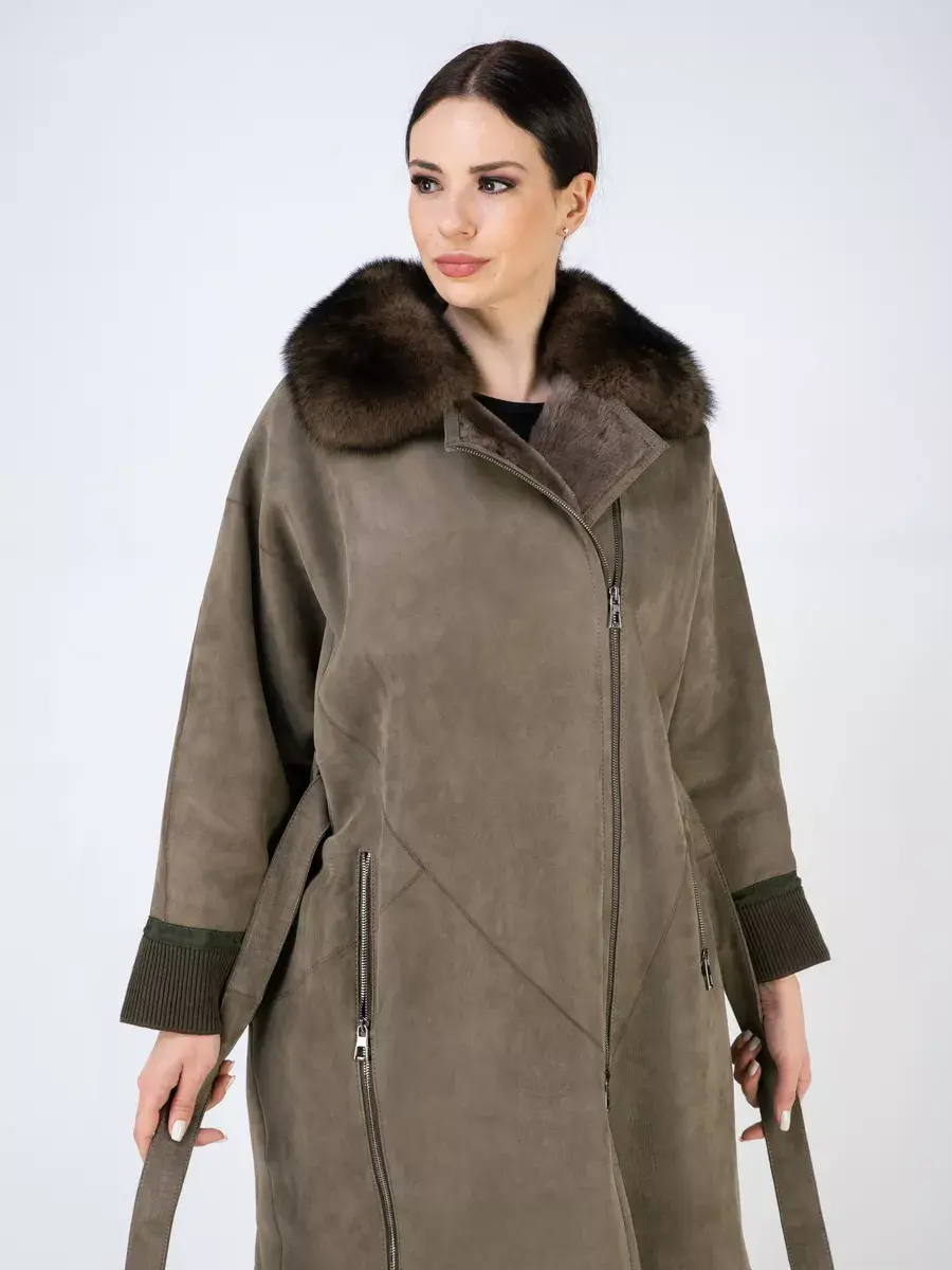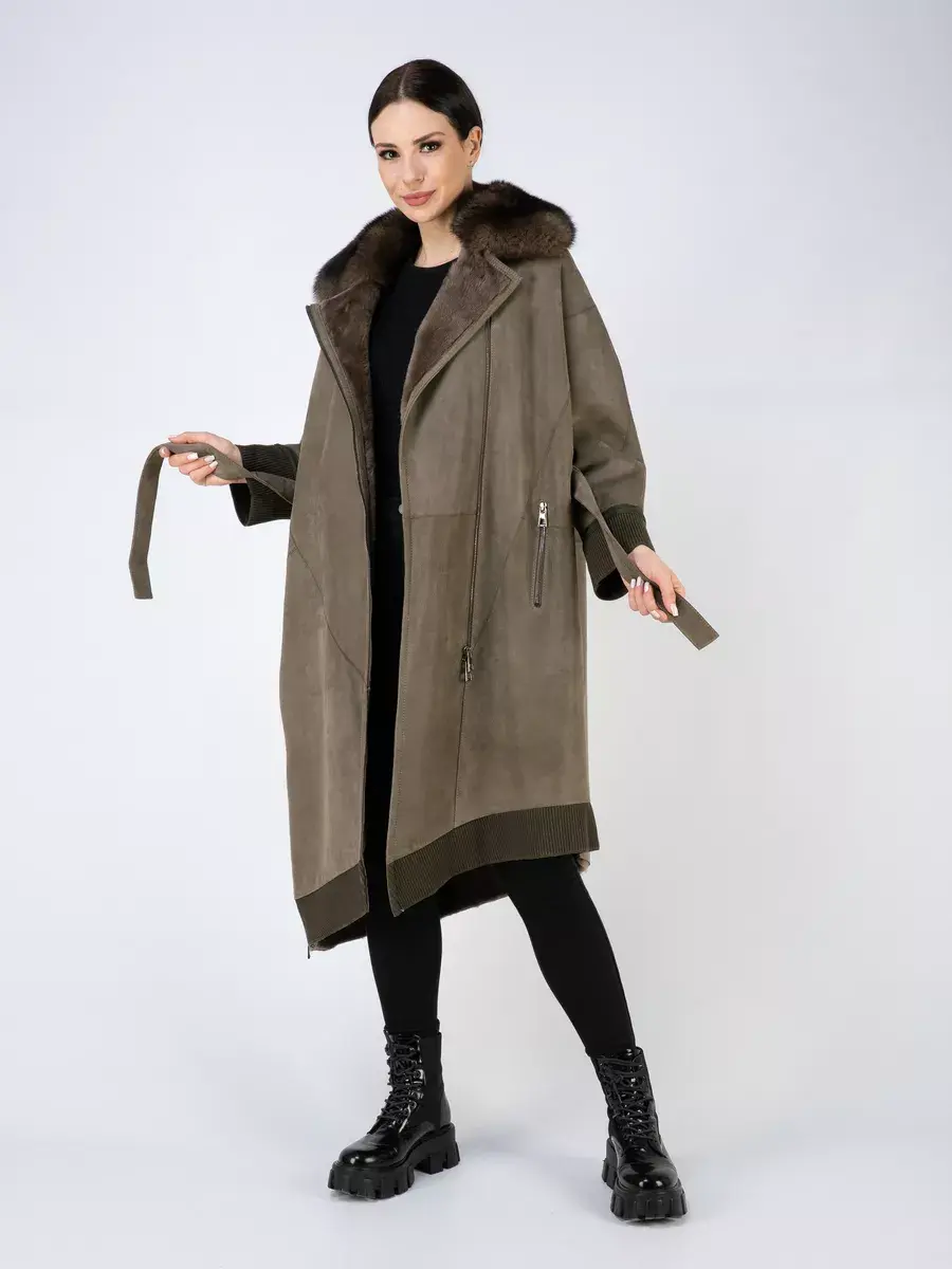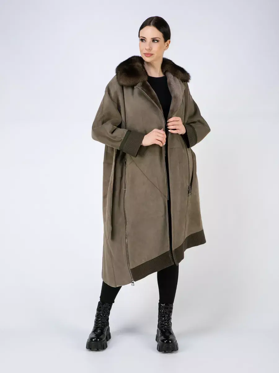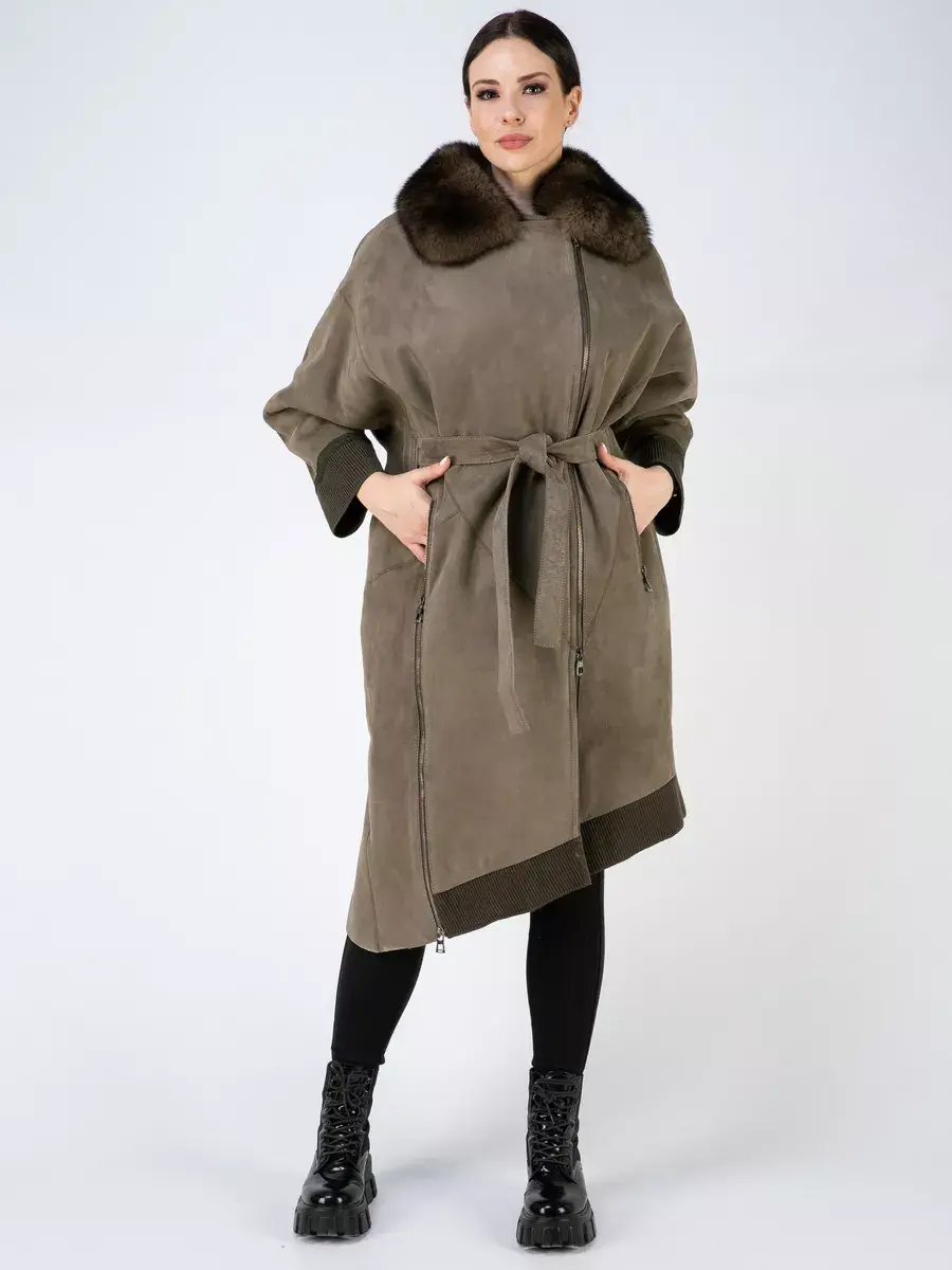Дубленка женская зимняя имеет спущенную линию плеча и свободный крой, создавая эффект свободности и легкости движений. Ассиметричный подол и декоративная шлица придает этой дубленке стильный и модный вид. Одной из преимуществ этой дубленки является застежка на молнию. Также в дубленке предусмотрены прорезные карманы на молниях, в которые можно удобно положить все необходимые мелочи. Длина по спинке 110 см делает эту дубленку великолепным выбором для всех модниц. В комплекте идет пояс для регулировки подходящей посадки. А трикотажные манжеты дают возможность комфортного ношения и защищают от холода. Стильная дубленка натуральная зимняя будет отлично сочетаться как с юбками, джинсами, так и с брючными костюмами.