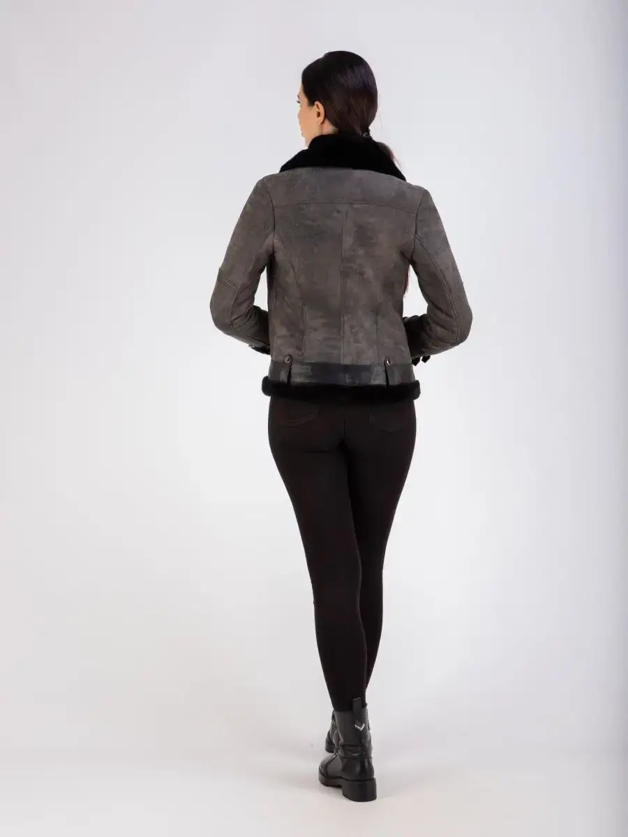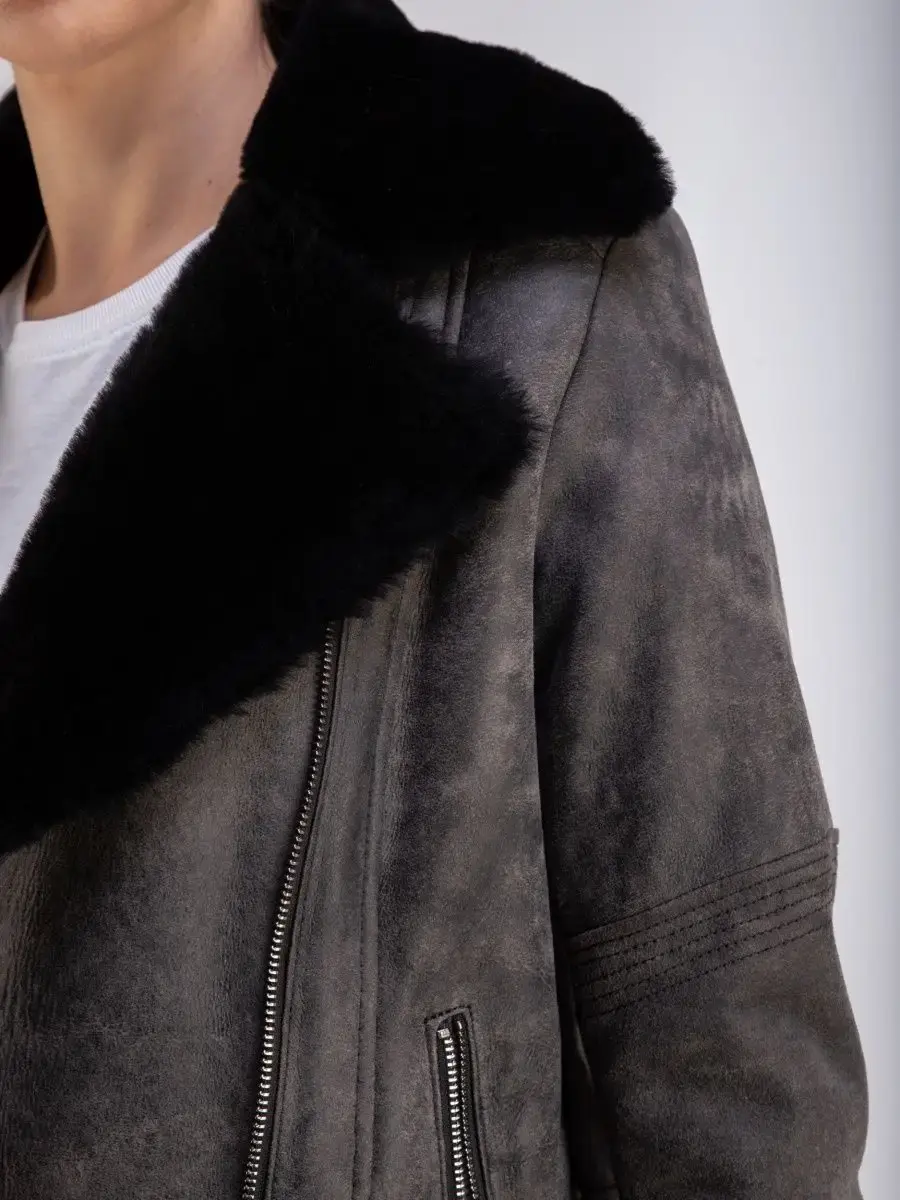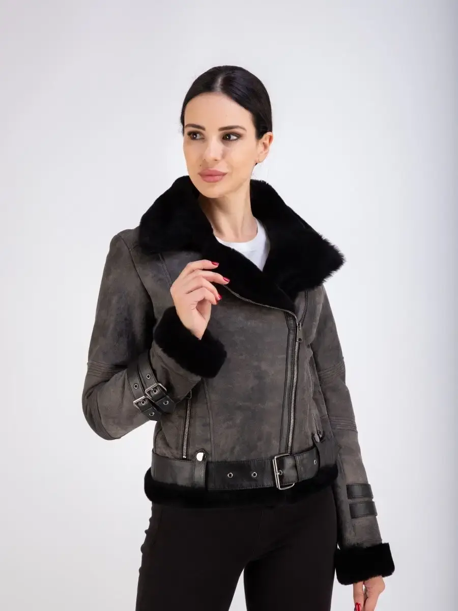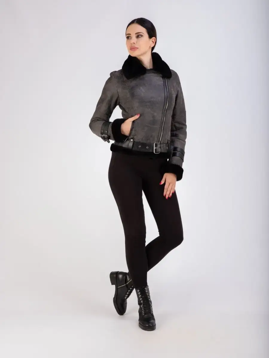 натуральный мех и кожа дубленка женская авиатор