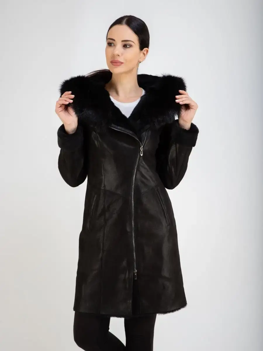 дубленка женская из овчины с капюшоном