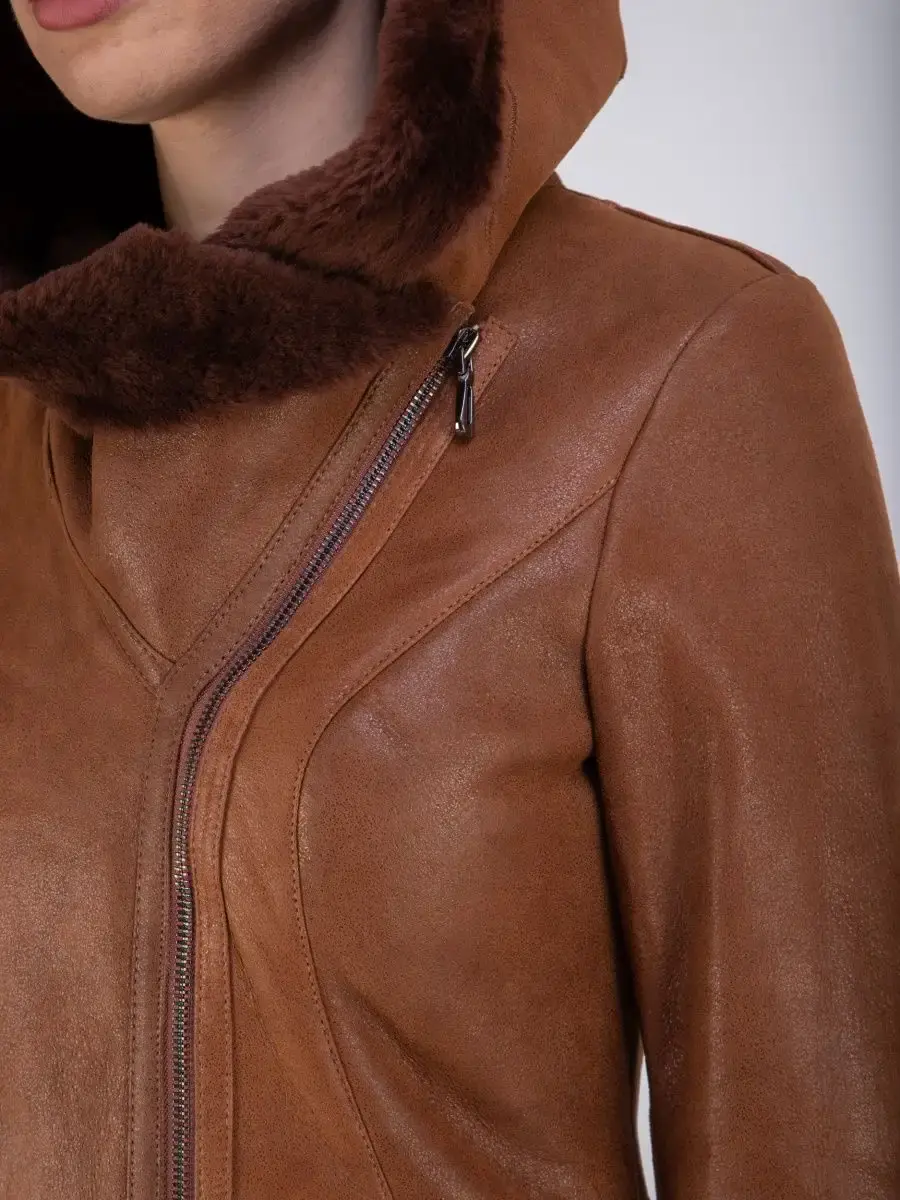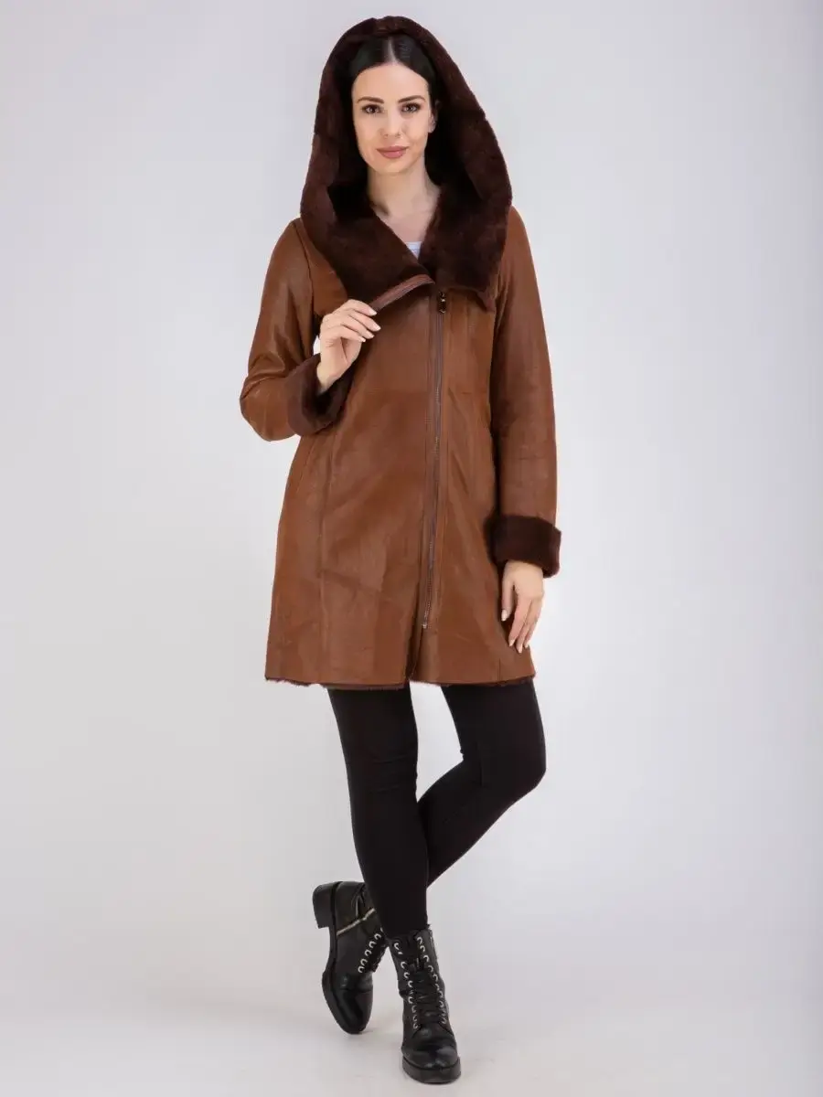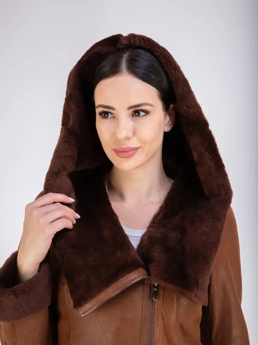 дубленка женская из овчины с капюшоном