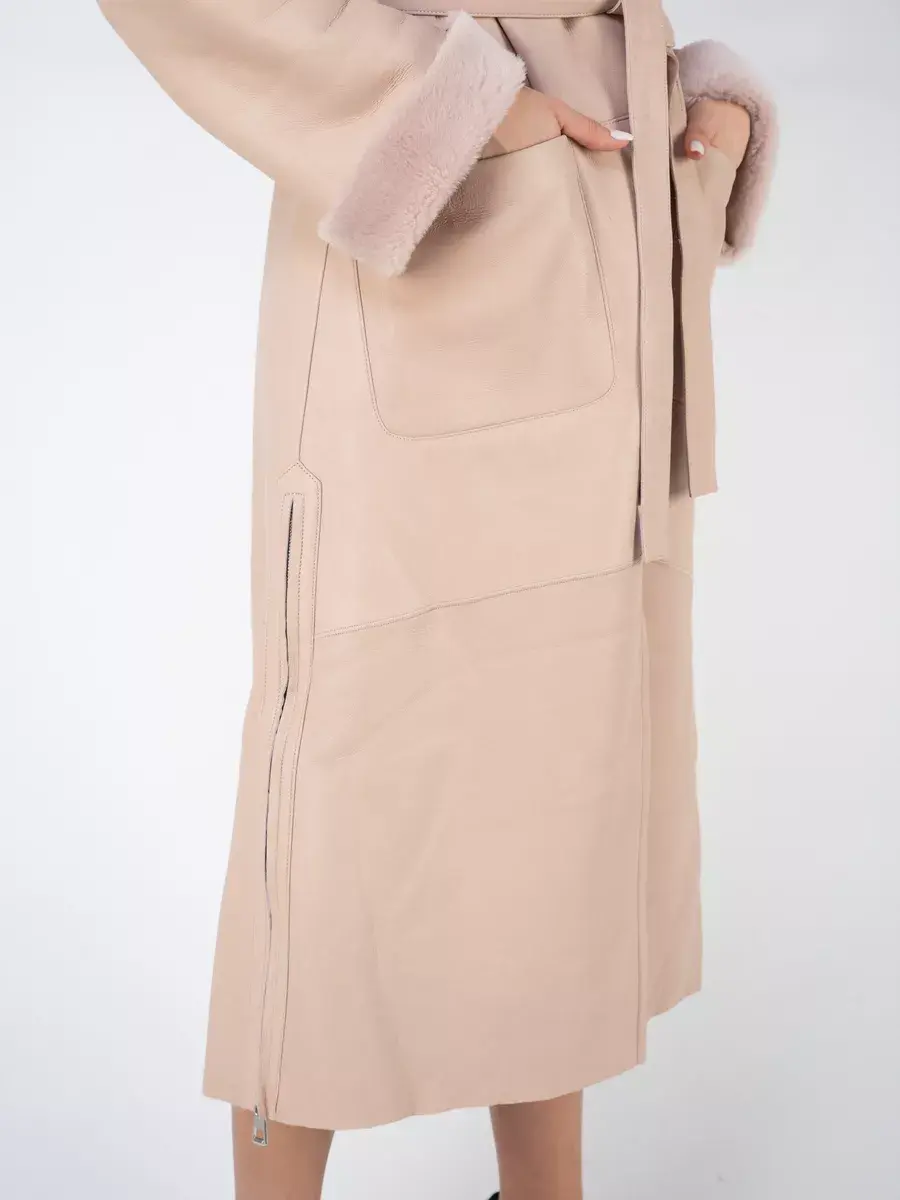 женская дубленка ниже колена зимняя осенняя весенняя демисезонная,