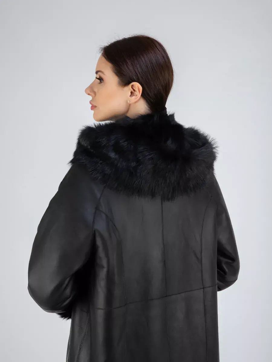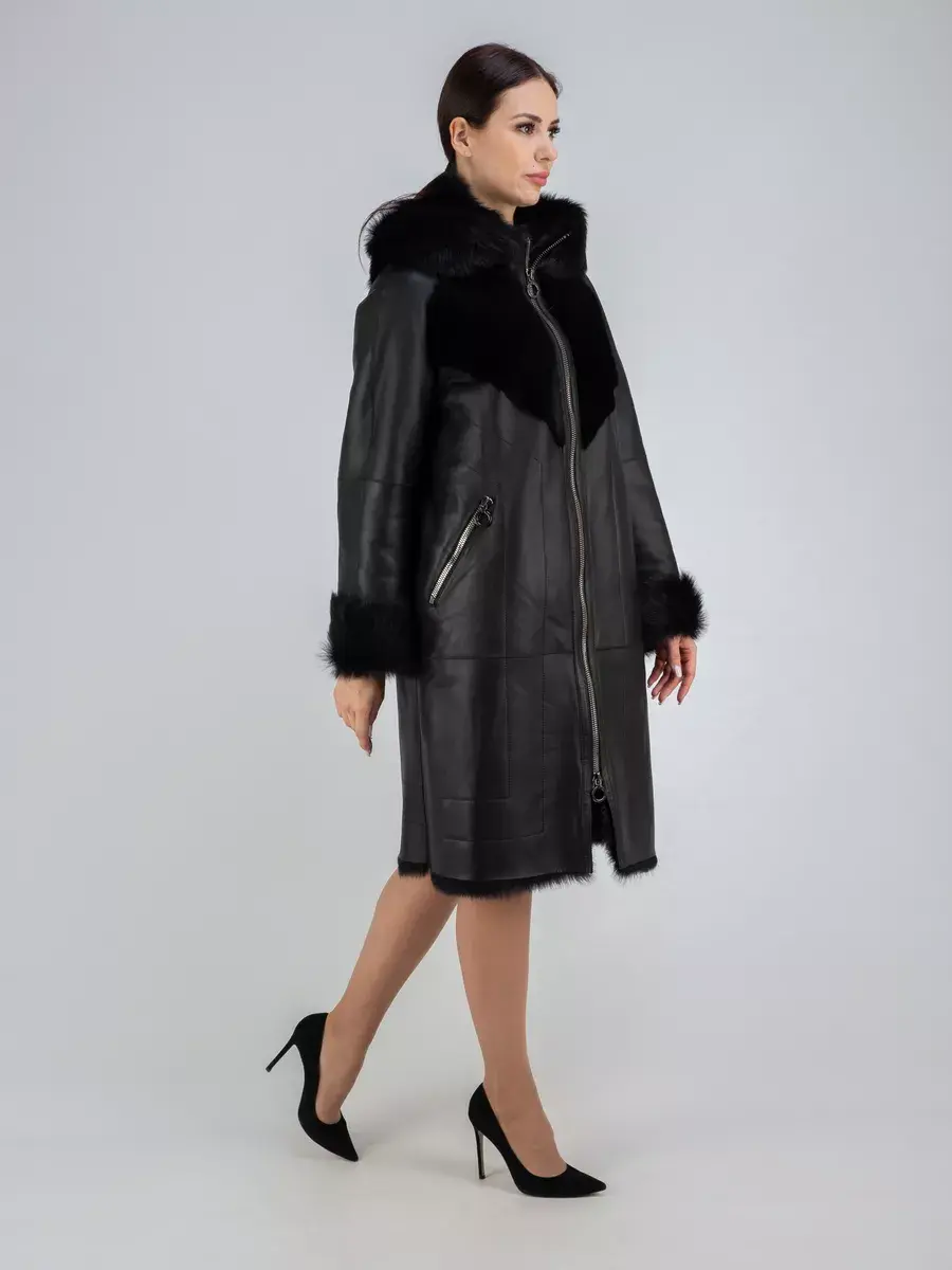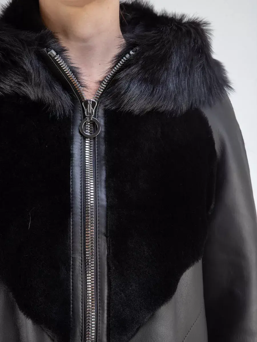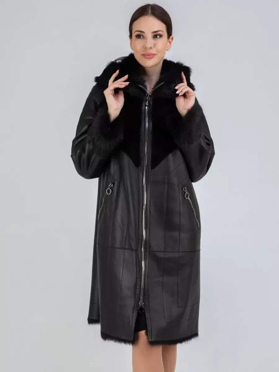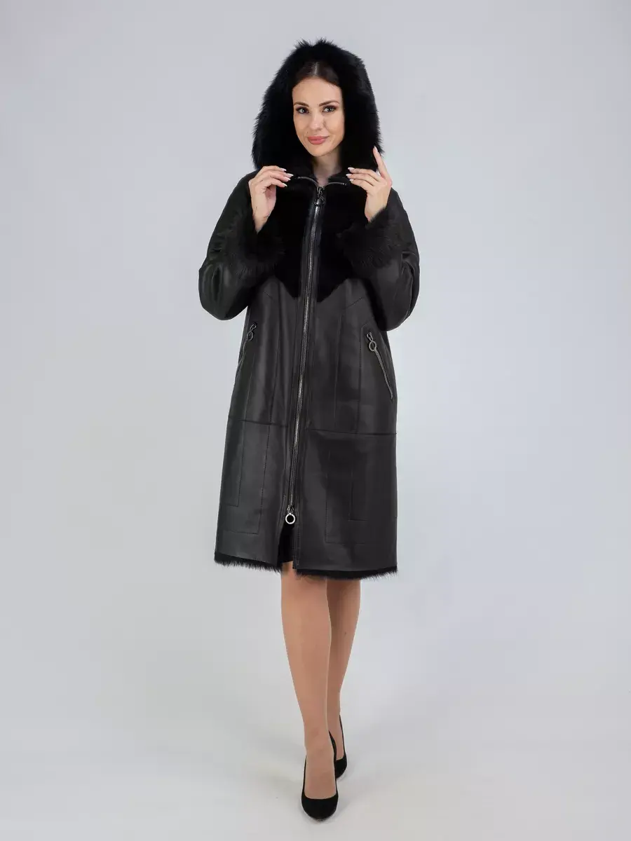 Дубленка женская натуральная с капюшоном - это стильная и качественная дубленка, которая станет незаменимым элементом гардероба в зимний период. Её длина по спинке составляет 100 см, что делает её идеальным вариантом для прохладной погоды. Капюшон дубленки несъемный и отлично защитит от ветра и снега, а меховая опушка придаст ей особый шик.Для удобства использования, дубленка женская зимняя оснащена застежкой на молнию. Это позволяет легко и быстро одевать и снимать дубленку. Благодаря прорезным карманам на молнии, у вас всегда будут под рукой необходимые мелочи и ключи. Особенностью этой дубленки является декоративная вставка из меха на груди, которая придаёт особый шарм этой модели. Кроме того, реглан рукава и прямой, свободный крой обеспечивают комфорт и свободу движений.