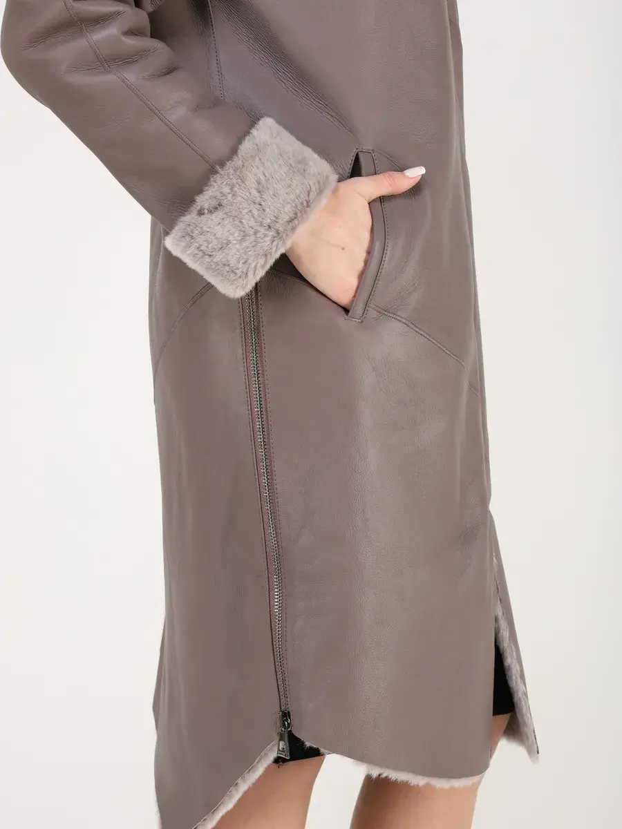 Утепленное кожаное пальто зимнее женское с эстетичной отделкой в виде опушки из овечьего меха - это отличный выбор для каждой современной девушки! Легкая, мягкая и красивая дубленка зимняя женская средней длины интересная модель, дизайн которой продуман до мелочей! Она прекрасно подойдет и для делового и офисного образа, и для трендового кэжуал - лука, прекрасно будет смотреться как с брюками и с юбками, так и с джинсами. Удлиненная куртка зимняя женская - дубленка это классика зимней верхней одежды, которую можно носить как с свитерами и с блузками, так и с платьями.
