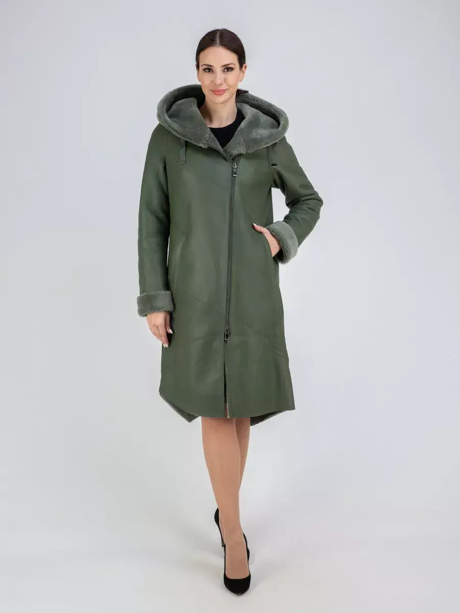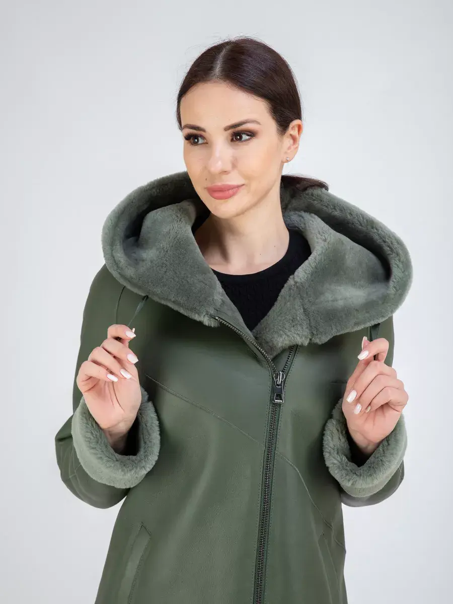 дубленка женская натуральная зимняя длинная с капюшоном