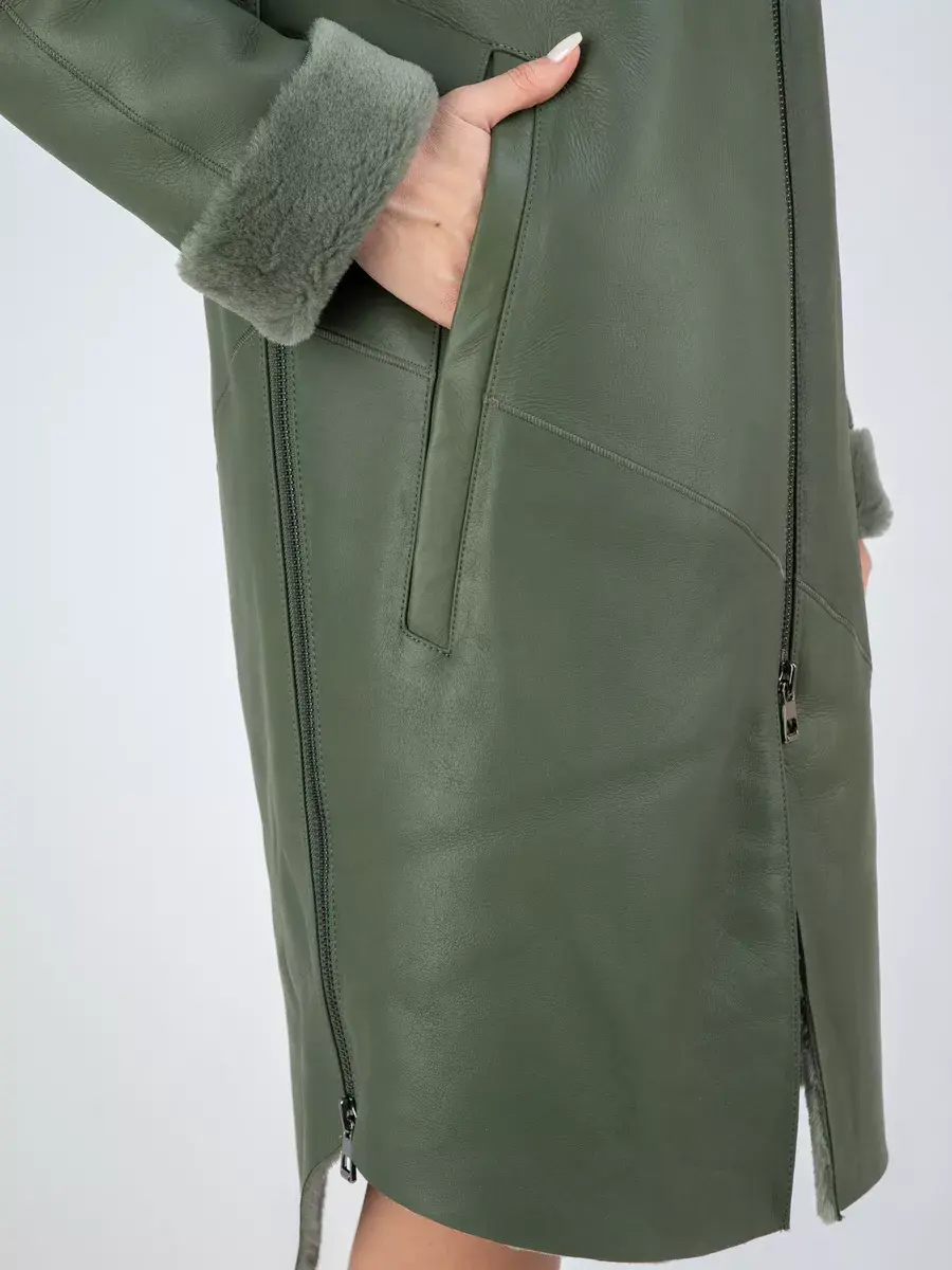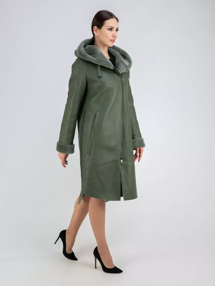 Утепленное кожаное пальто зимнее женское с эстетичной отделкой в виде опушки из овечьего меха - это отличный выбор для каждой современной девушки! Легкая, мягкая и красивая дубленка зимняя женская средней длины интересная модель, дизайн которой продуман до мелочей! Она прекрасно подойдет и для делового и офисного образа, и для трендового кэжуал - лука, прекрасно будет смотреться как с брюками и с юбками, так и с джинсами. Удлиненная куртка зимняя женская - дубленка это классика зимней верхней одежды, которую можно носить как с свитерами и с блузками, так и с платьями.