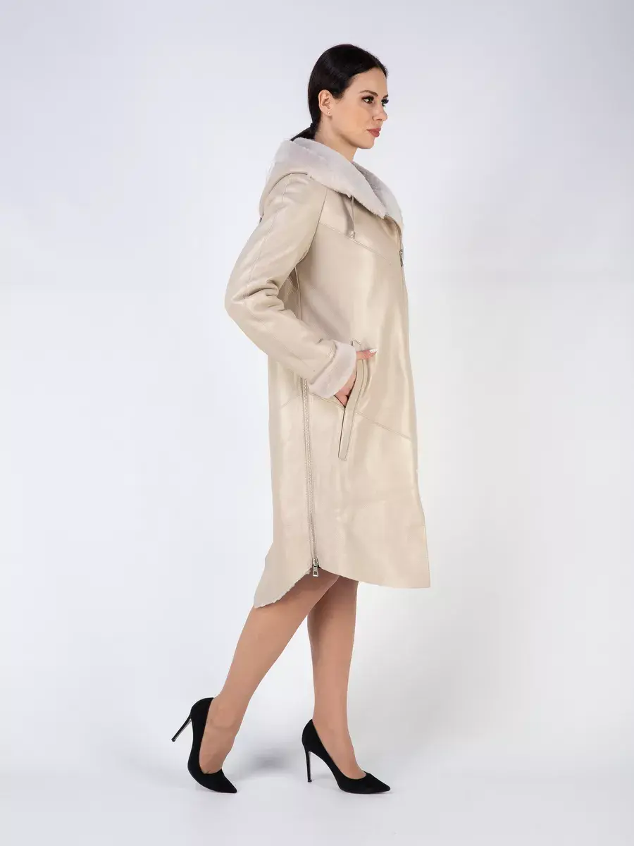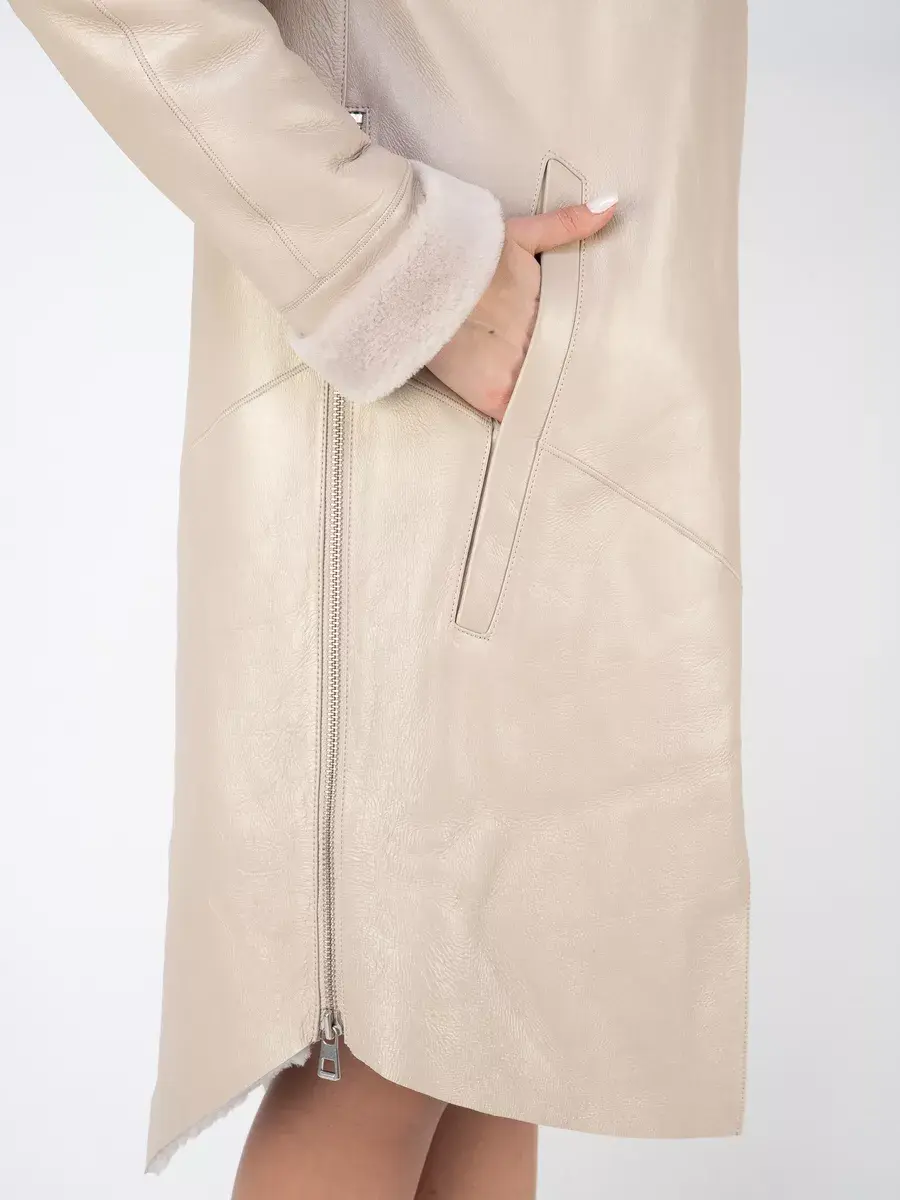 Утепленное кожаное пальто зимнее женское с эстетичной отделкой в виде опушки из овечьего меха - это отличный выбор для каждой современной девушки! Легкая, мягкая и красивая дубленка зимняя женская средней длины интересная модель, дизайн которой продуман до мелочей! Она прекрасно подойдет и для делового и офисного образа, и для трендового кэжуал - лука, прекрасно будет смотреться как с брюками и с юбками, так и с джинсами. Удлиненная куртка зимняя женская - дубленка это классика зимней верхней одежды, которую можно носить как с свитерами и с блузками, так и с платьями.