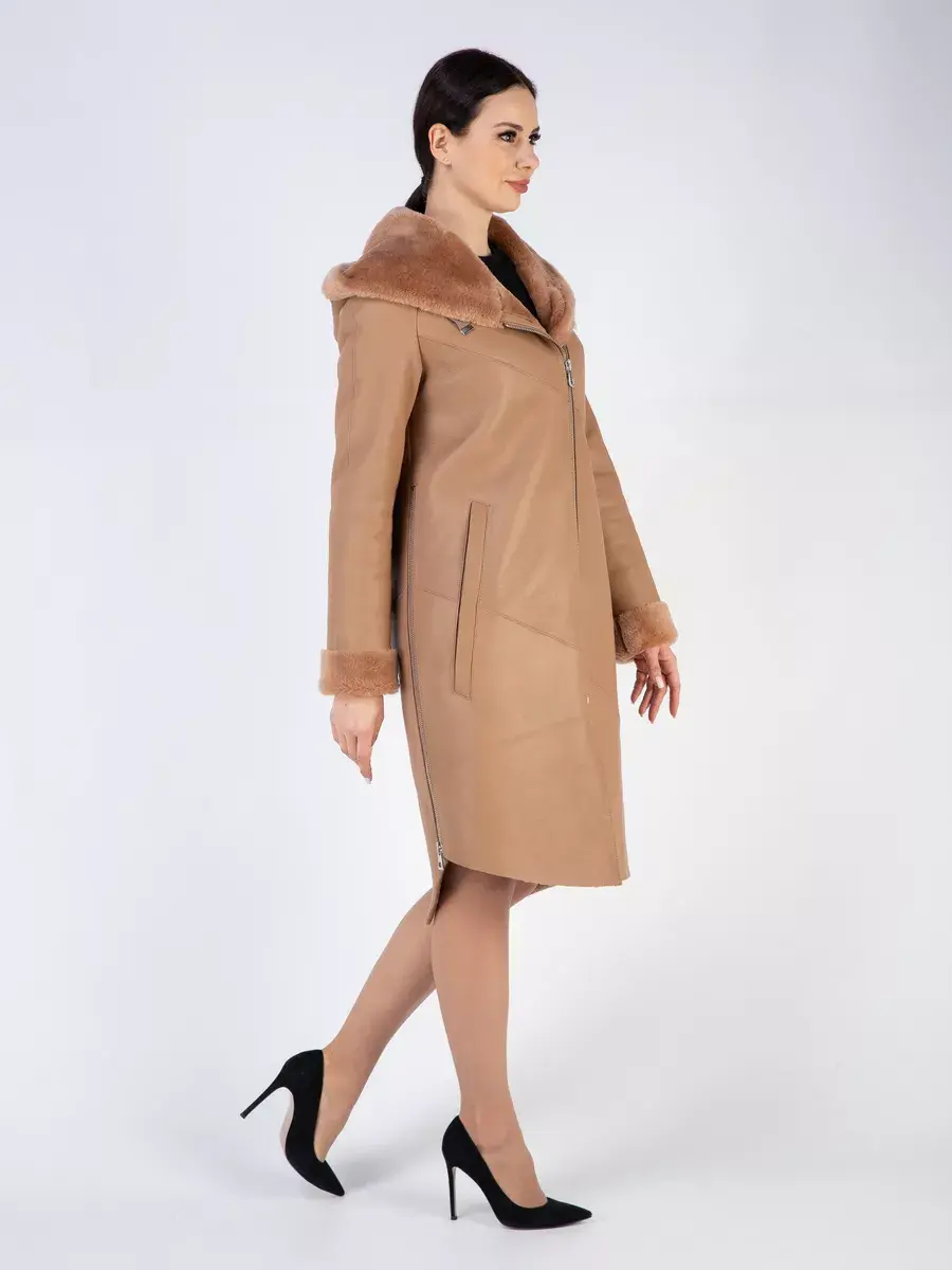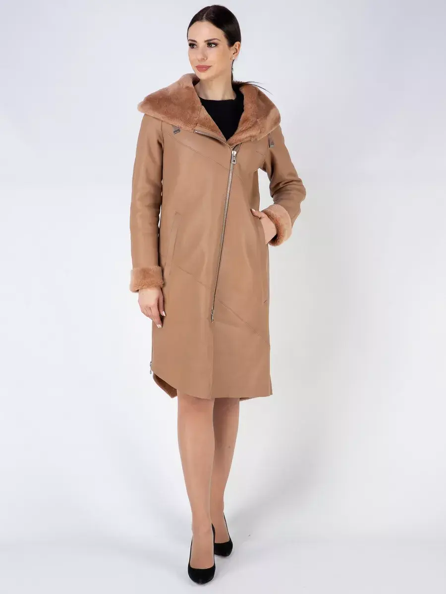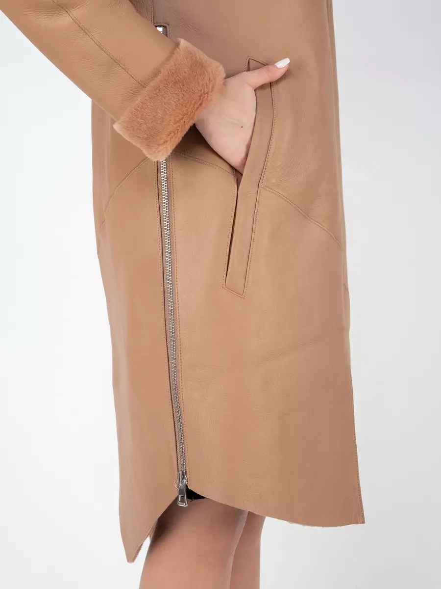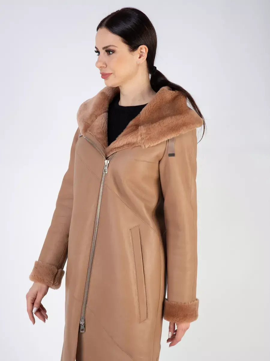Утепленное кожаное пальто зимнее женское с эстетичной отделкой в виде опушки из овечьего меха - это отличный выбор для каждой современной девушки! Легкая, мягкая и красивая дубленка зимняя женская средней длины интересная модель, дизайн которой продуман до мелочей! Она прекрасно подойдет и для делового и офисного образа, и для трендового кэжуал - лука, прекрасно будет смотреться как с брюками и с юбками, так и с джинсами. Удлиненная куртка зимняя женская - дубленка это классика зимней верхней одежды, которую можно носить как с свитерами и с блузками, так и с платьями.