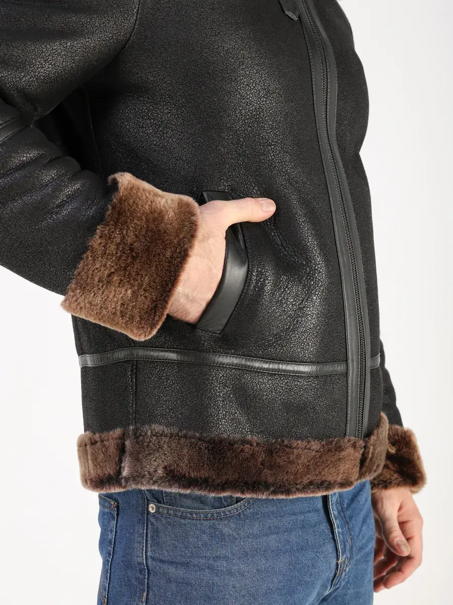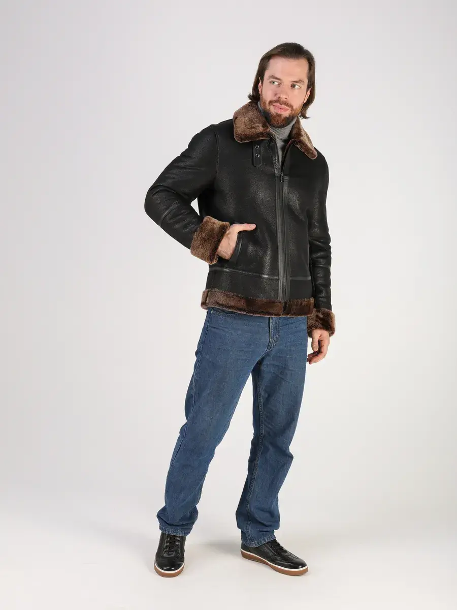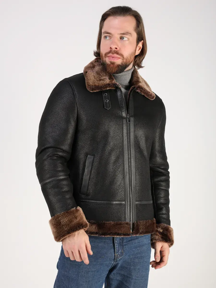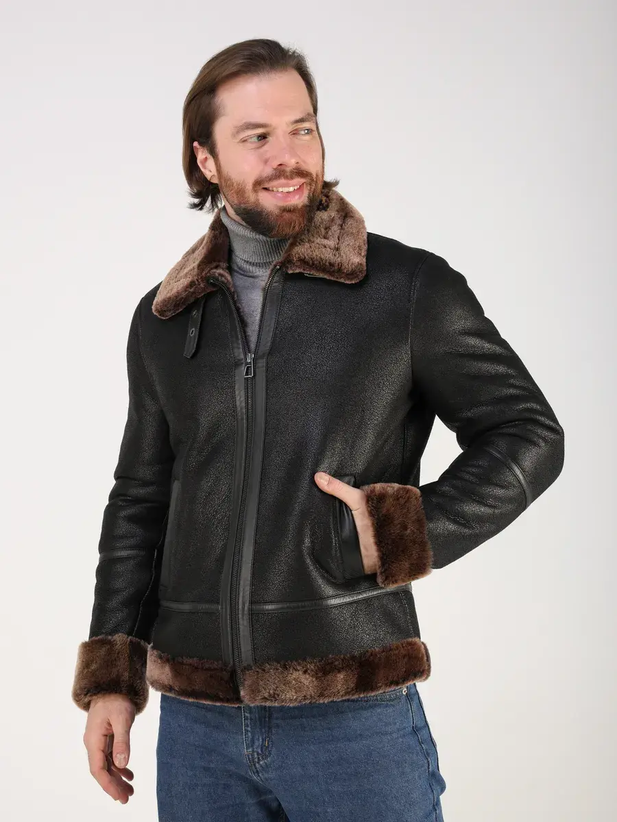 Меховой отложной воротник с хлястиком, прямой крой, фактура "крэк" и меховые манжеты придают куртке - дубленке уникальность и изысканность, идеально впишется в деловой стиль и дополнит солидный образ мужчины или подростка, независимо от возраста. Дубленка мужская натуральная зимняя имеет застежку на молнии и прорезные карманы которые дополнительно увеличивают функциональность и практичность куртки - пилот средней длины.