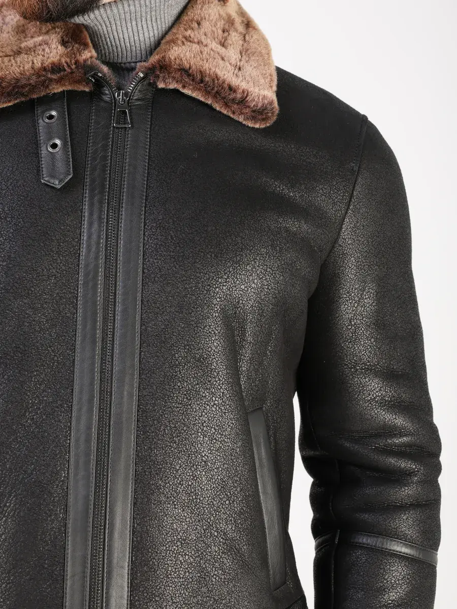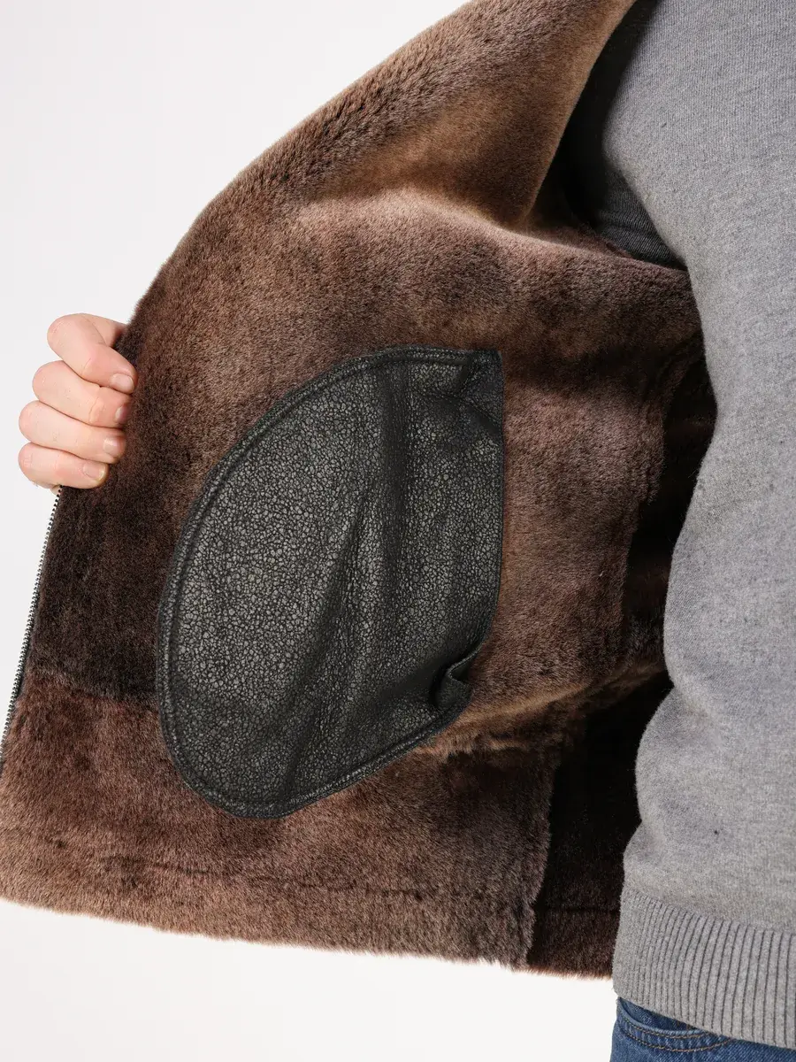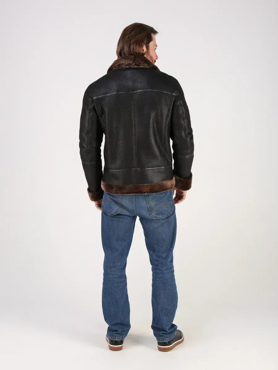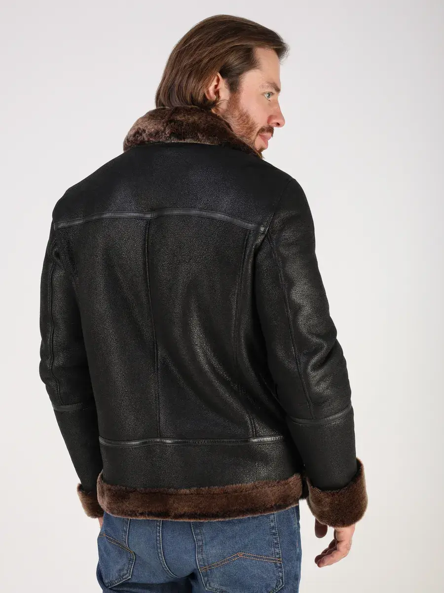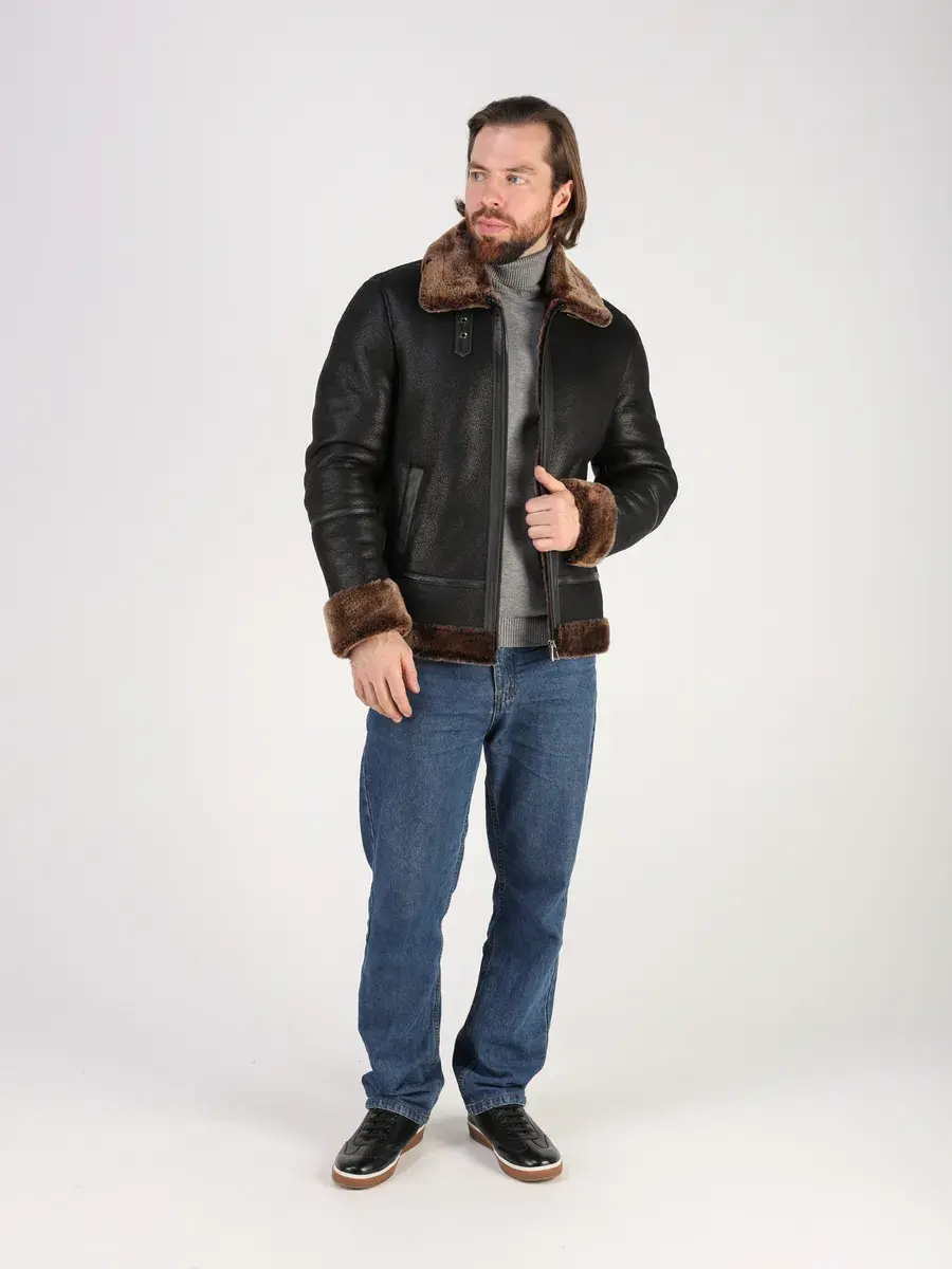Меховой отложной воротник с хлястиком, прямой крой, фактура "крэк" и меховые манжеты придают куртке - дубленке уникальность и изысканность, идеально впишется в деловой стиль и дополнит солидный образ мужчины или подростка, независимо от возраста. Дубленка мужская натуральная зимняя имеет застежку на молнии и прорезные карманы которые дополнительно увеличивают функциональность и практичность куртки - пилот средней длины.