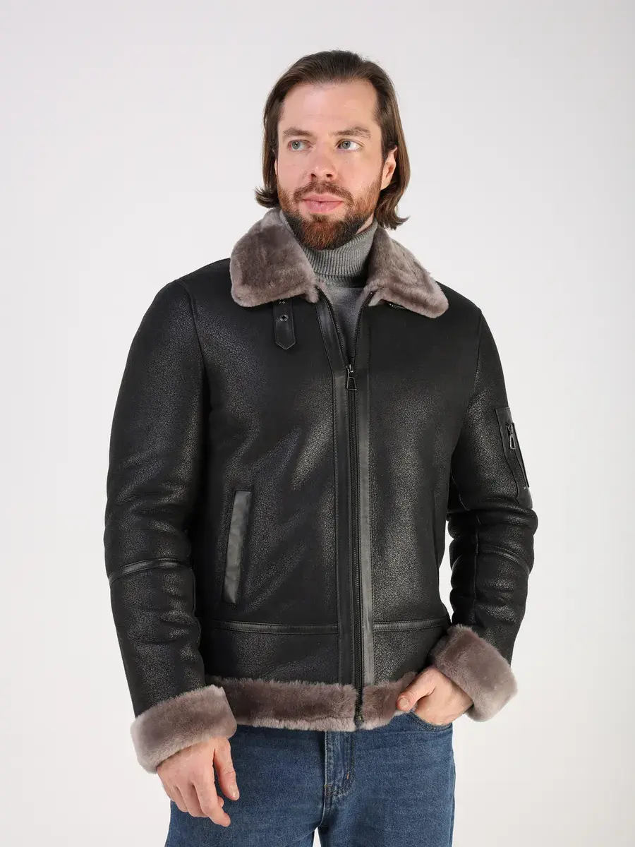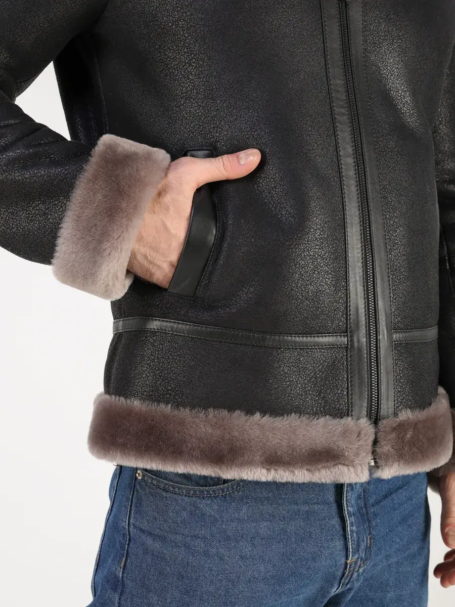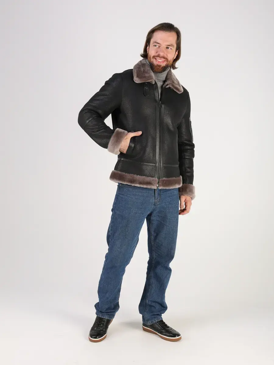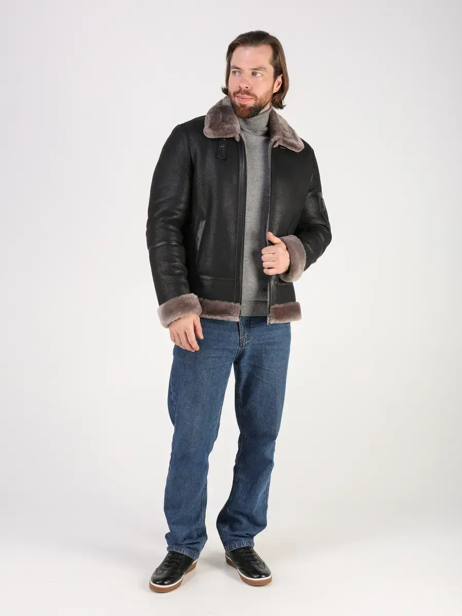 Меховой отложной воротник с хлястиком, прямой крой, фактура "крэк" и меховые манжеты придают куртке - дубленке уникальность и изысканность, идеально впишется в деловой стиль и дополнит солидный образ мужчины или подростка, независимо от возраста. Дубленка мужская натуральная зимняя имеет застежку на молнии и прорезные карманы которые дополнительно увеличивают функциональность и практичность куртки - пилот средней длины.