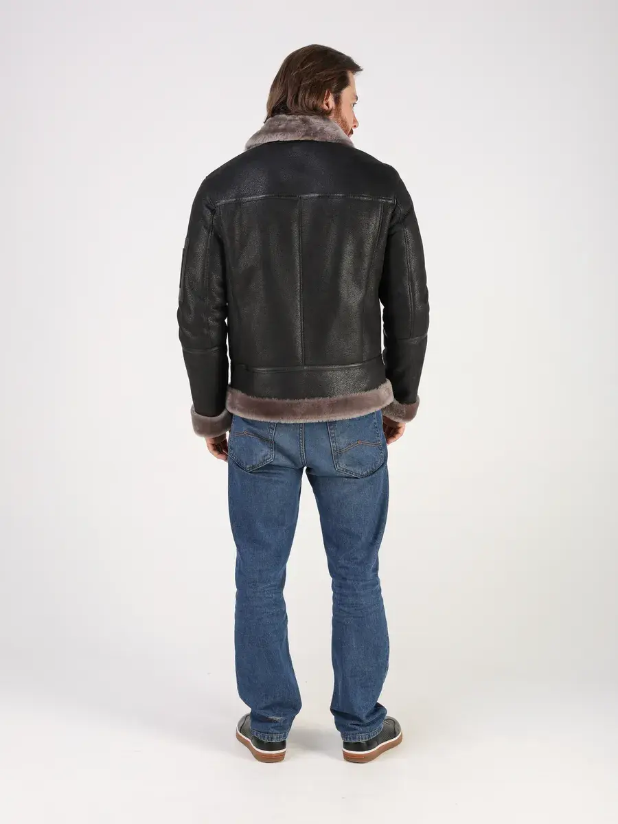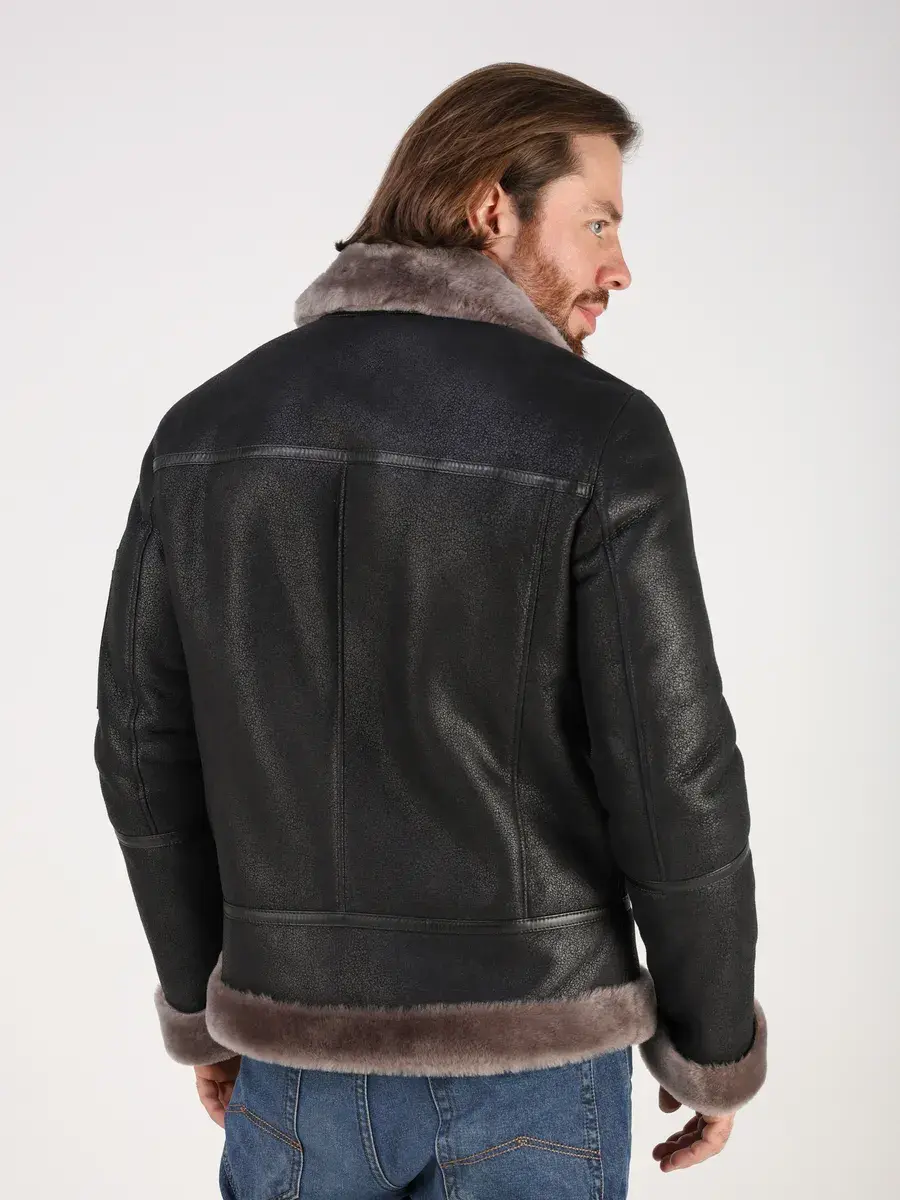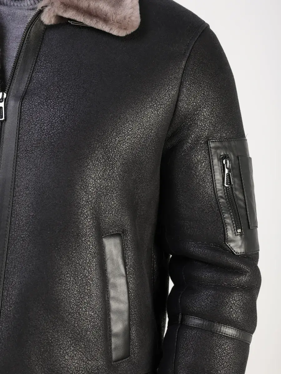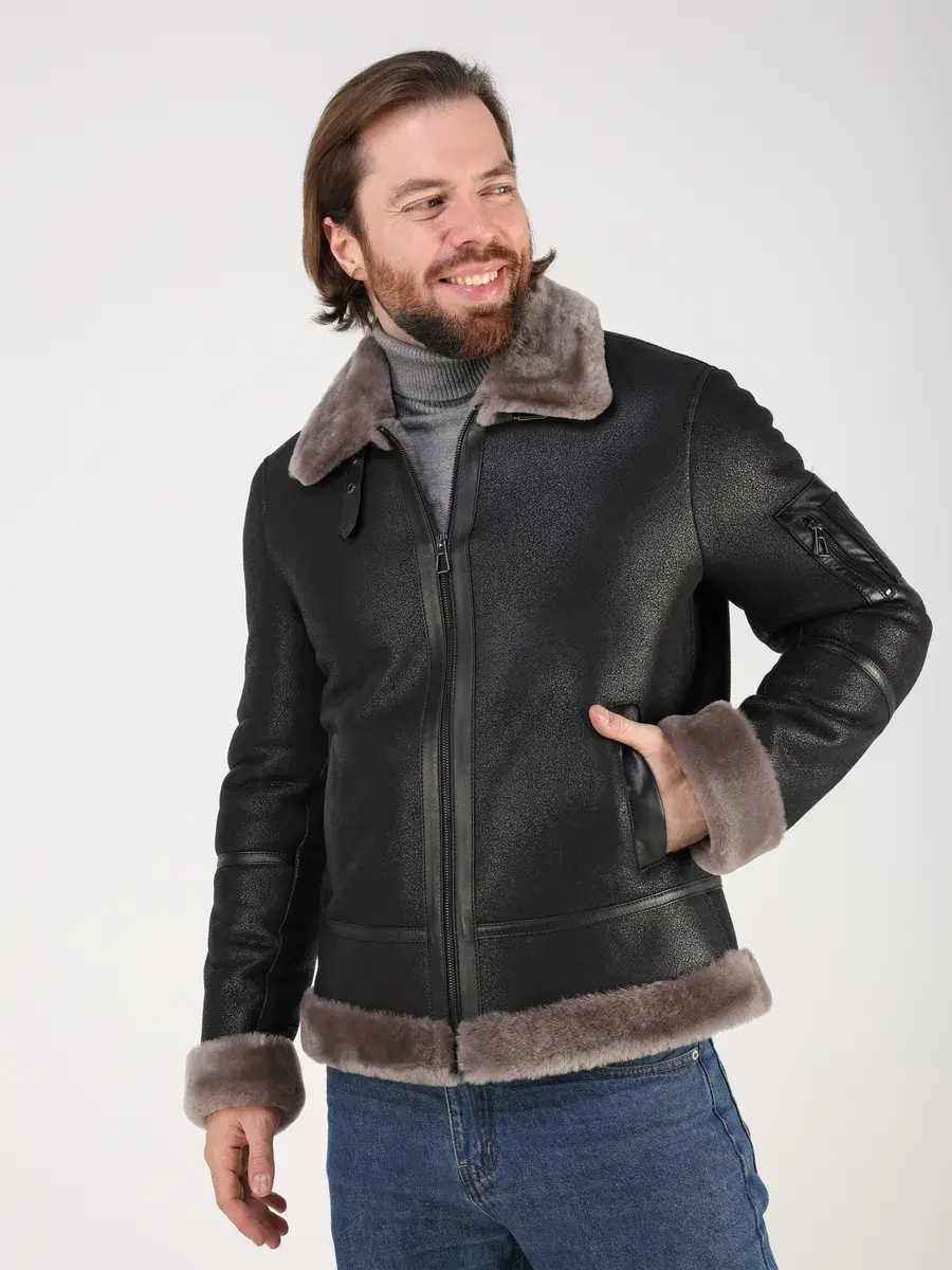 Меховой отложной воротник с хлястиком, прямой крой, фактура "крэк" и меховые манжеты придают куртке - дубленке уникальность и изысканность, идеально впишется в деловой стиль и дополнит солидный образ мужчины или подростка, независимо от возраста. Дубленка мужская натуральная зимняя имеет застежку на молнии и прорезные карманы которые дополнительно увеличивают функциональность и практичность куртки - пилот средней длины.