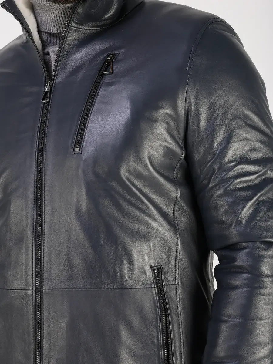 Стильный воротник стойка, прямой крой, дорогая гладкая кожа - плонже, карман на груди придают куртке - дубленке уникальность и изысканность, идеально впишется в деловой стиль и дополнит солидный образ мужчины или парня подростка, независимо от возраста. Дубленка мужская натуральная зимняя имеет застежку на молнии и прорезные карманы которые дополнительно увеличивают функциональность и практичность куртки средней длины. Рукава куртки утеплены синтепоном, на рукавах трикотажный манжет.